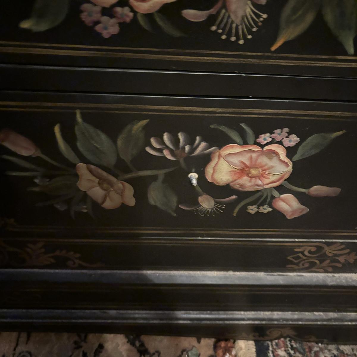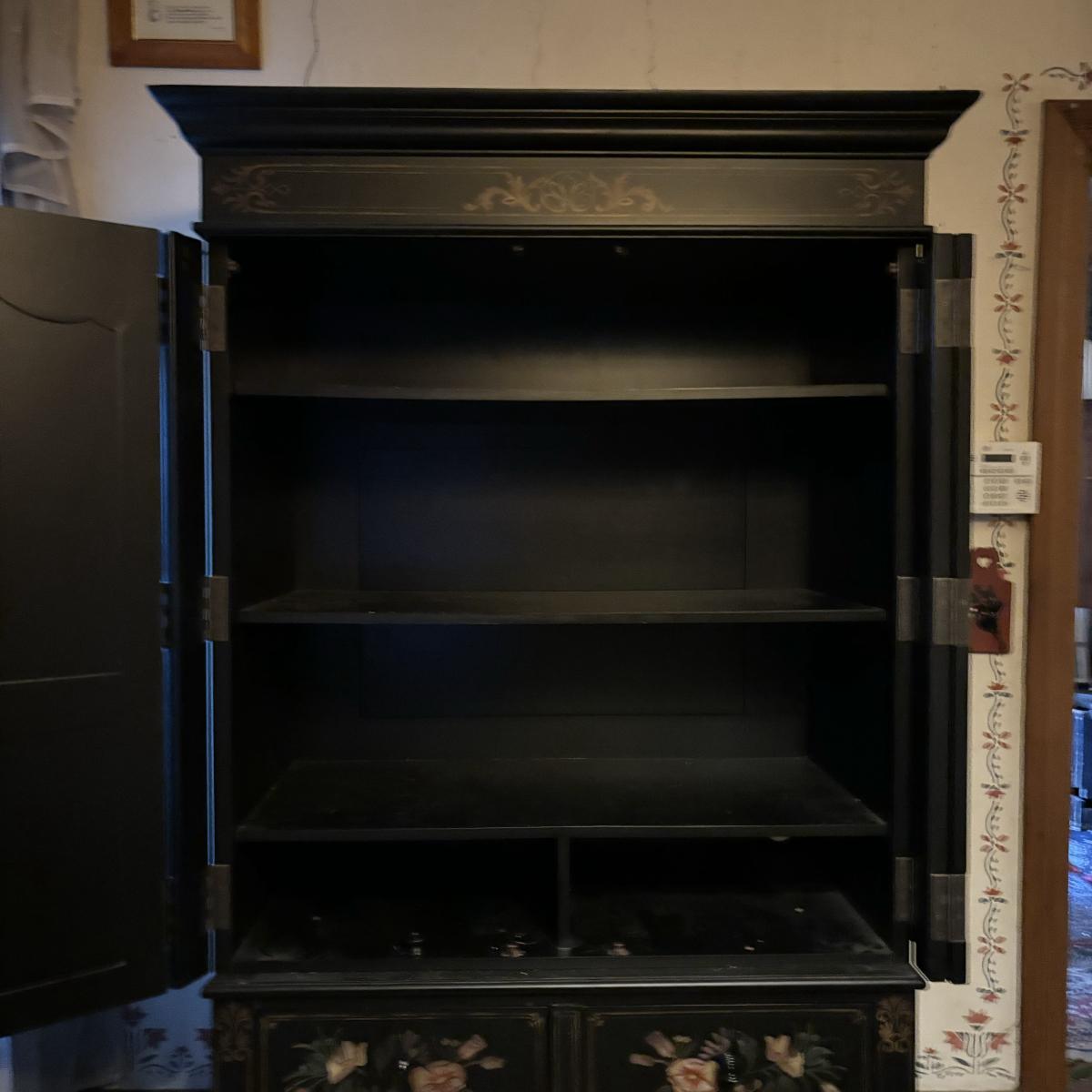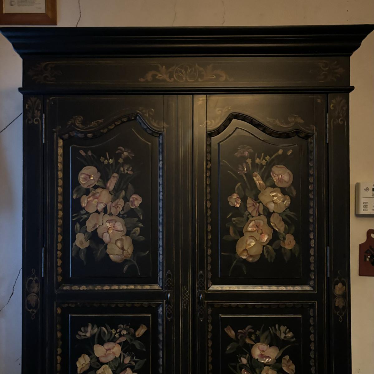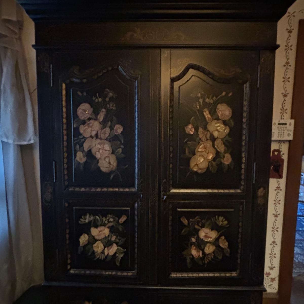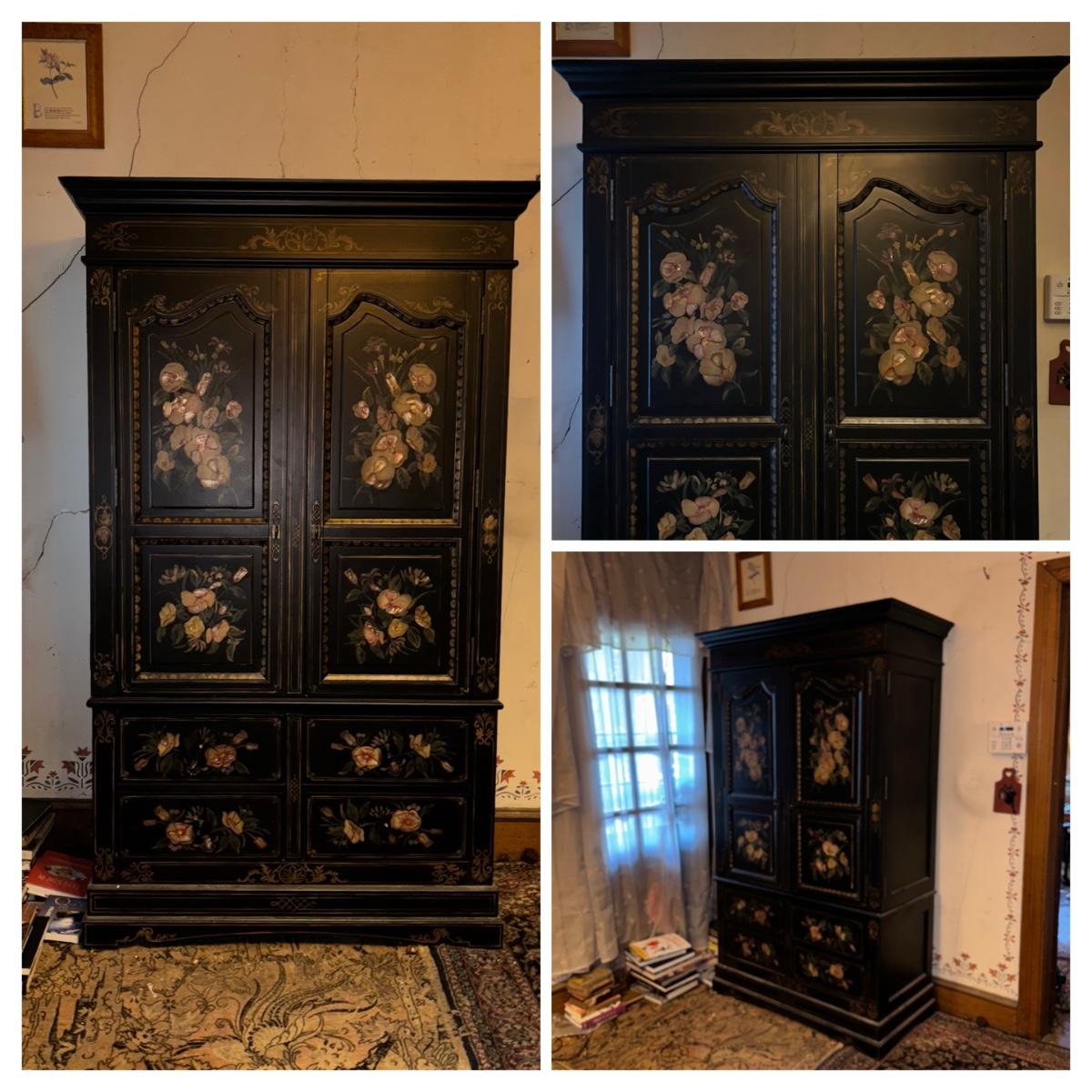 LOT 148: Black & Floral Painted Armoire