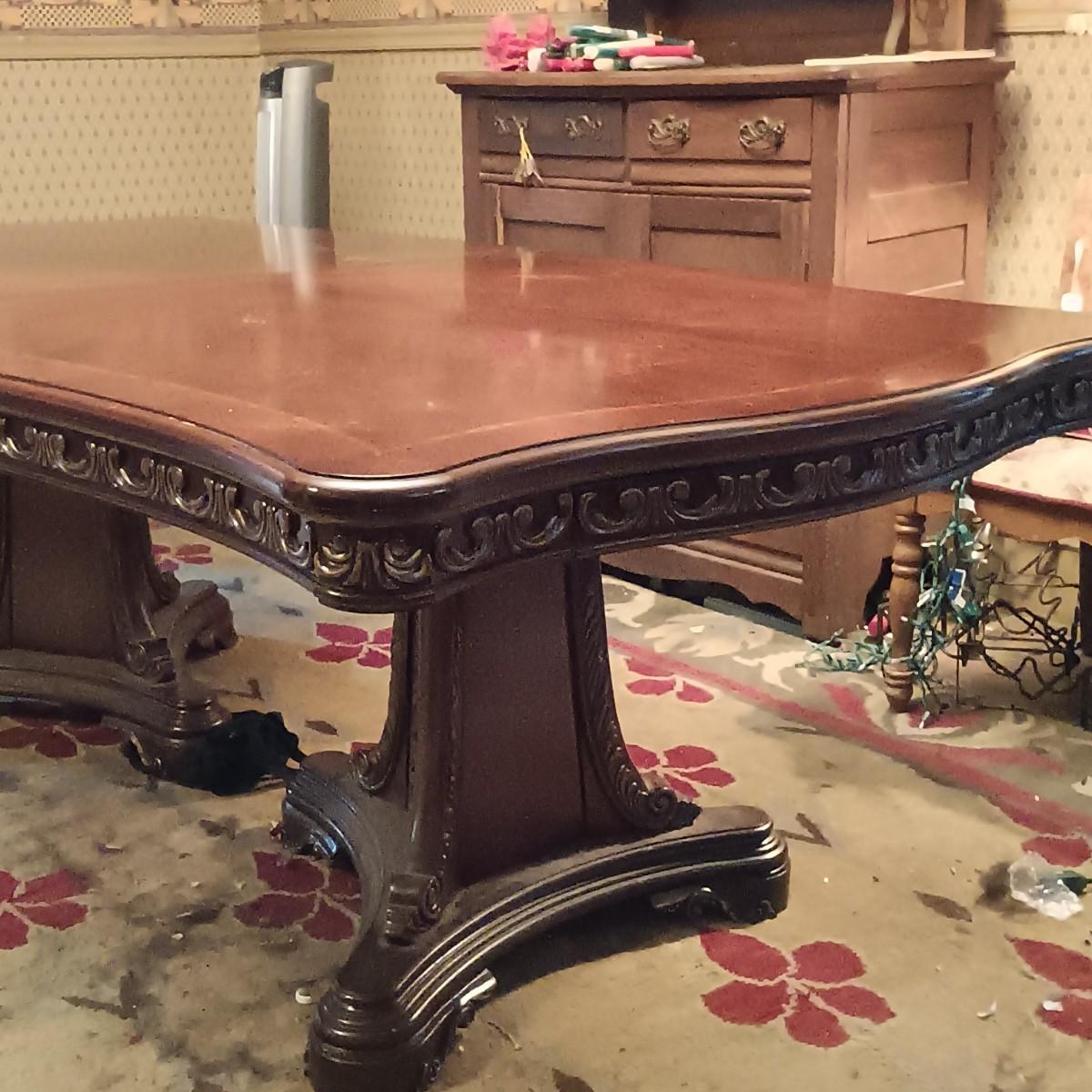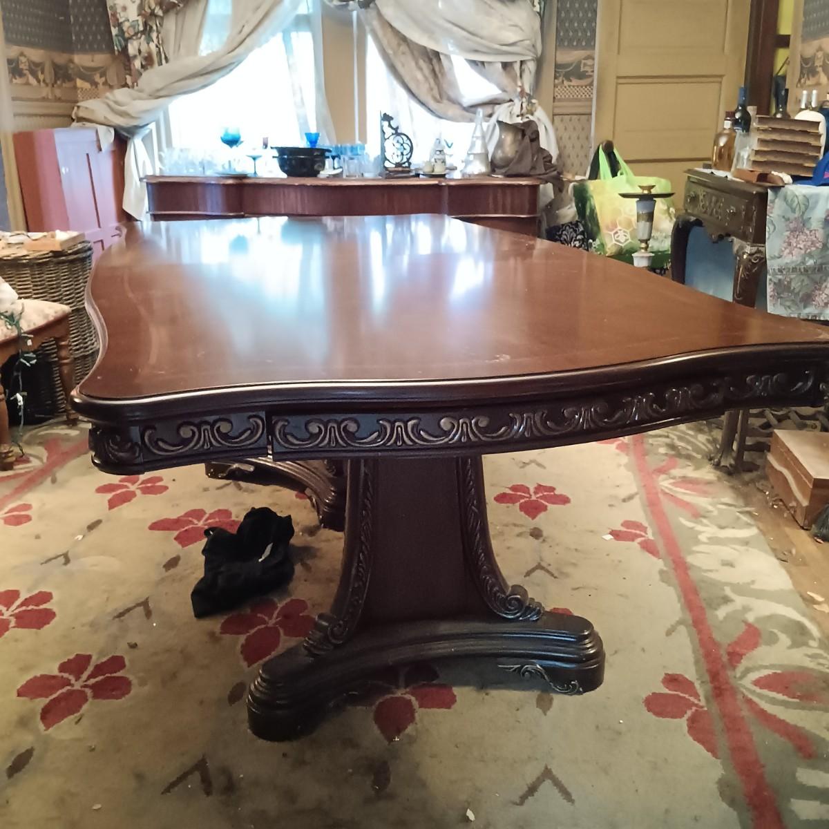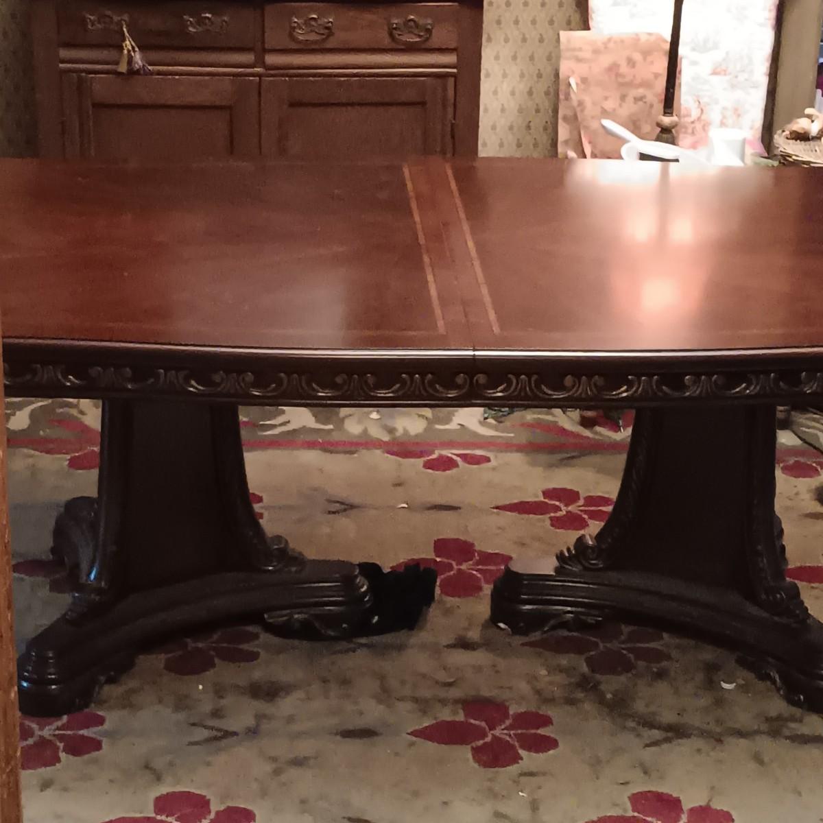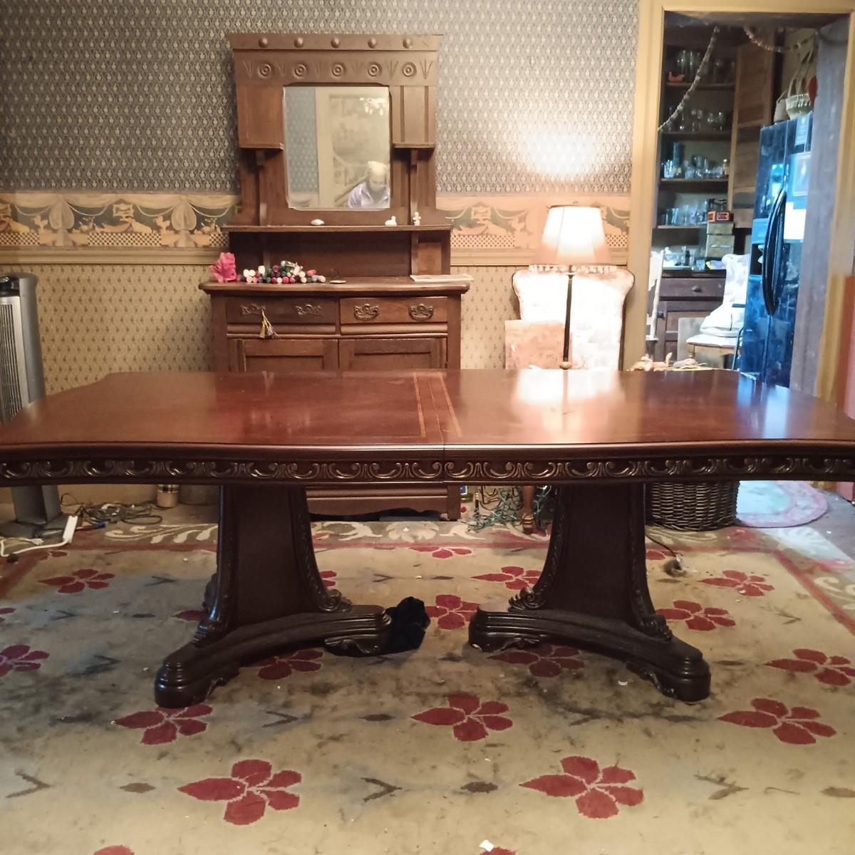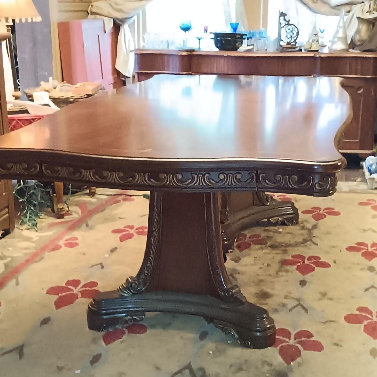 LOT 154: Solid Wood Double Pedestal Dining Room Table with 2 Leafs