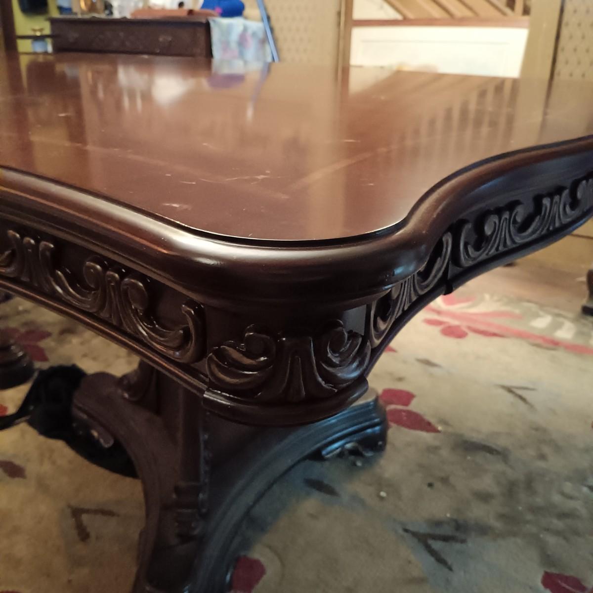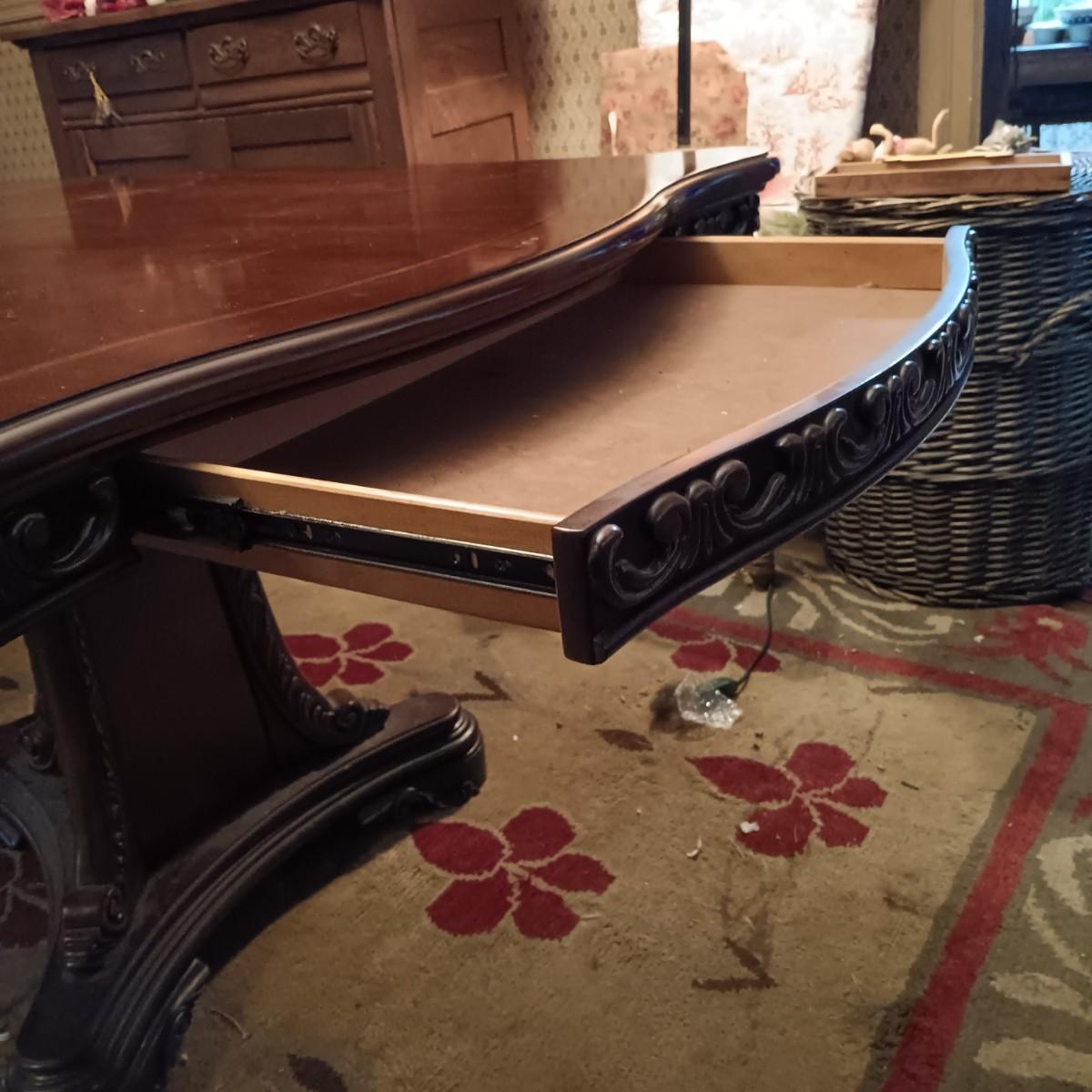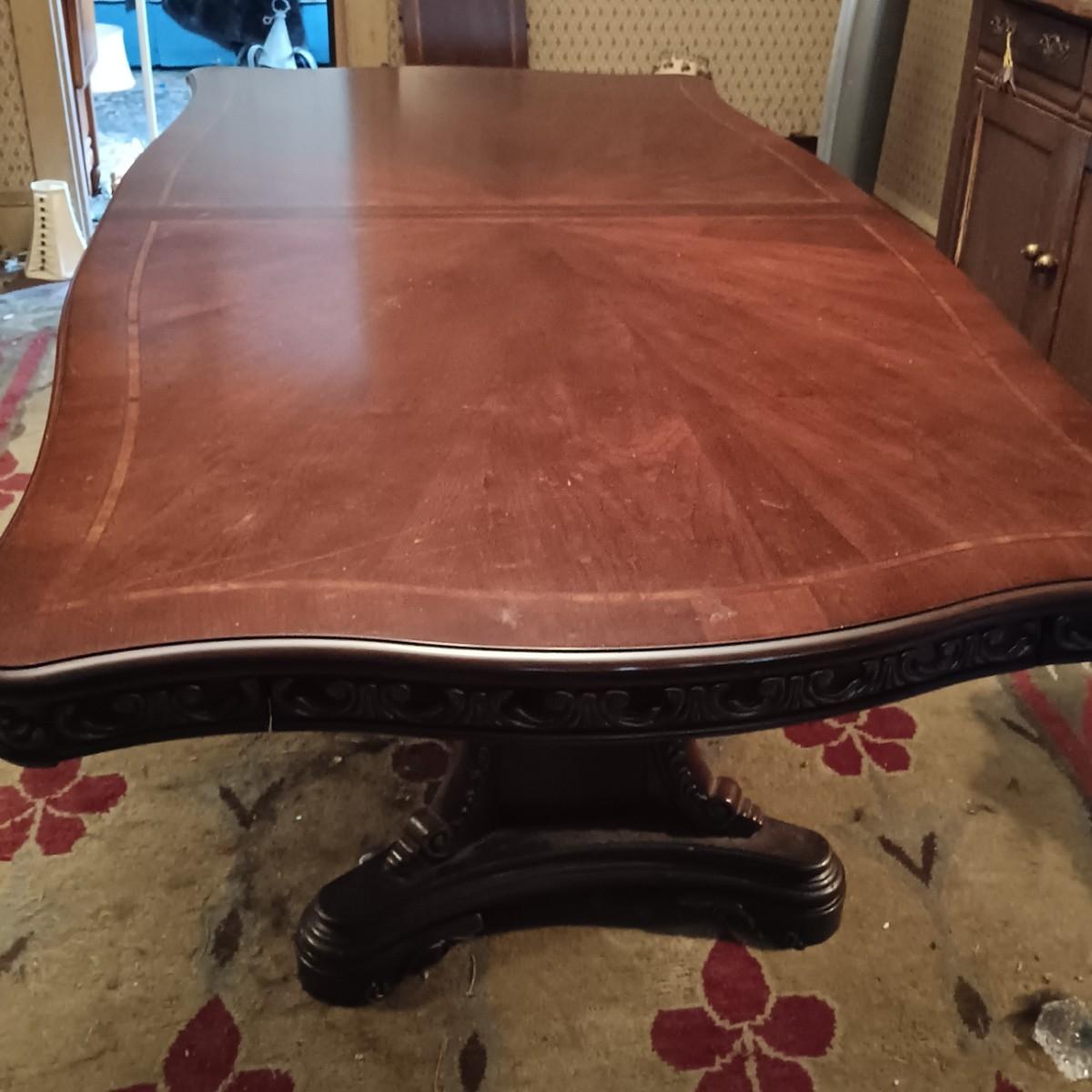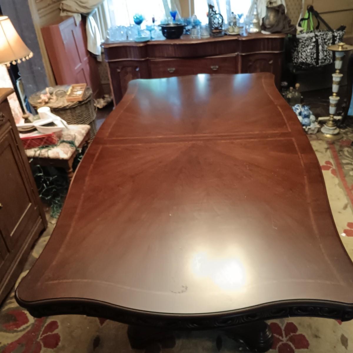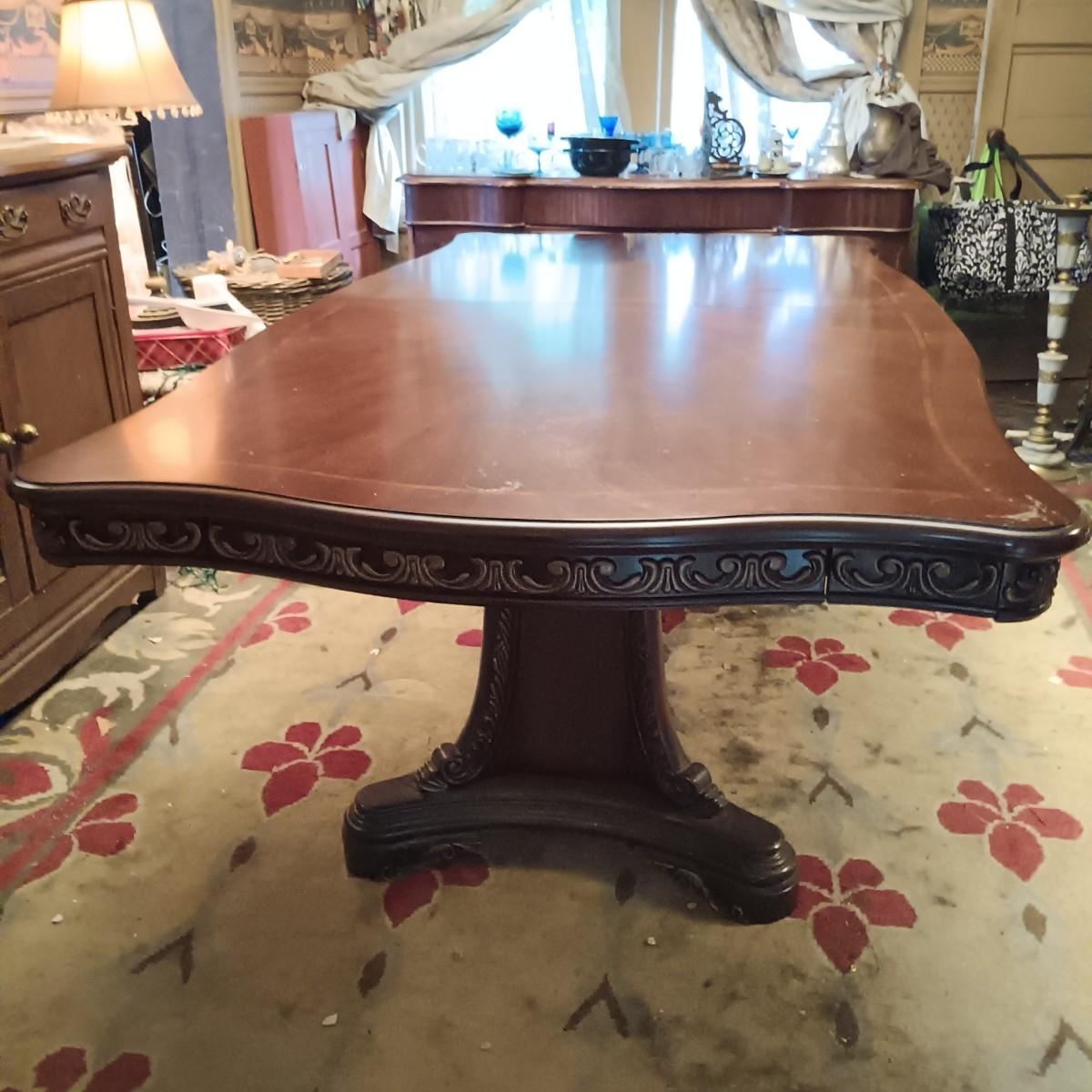 LOT 154: Solid Wood Double Pedestal Dining Room Table with 2 Leafs