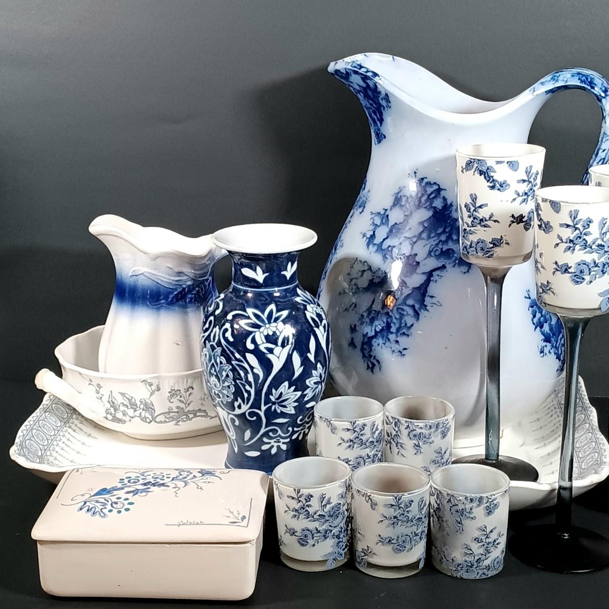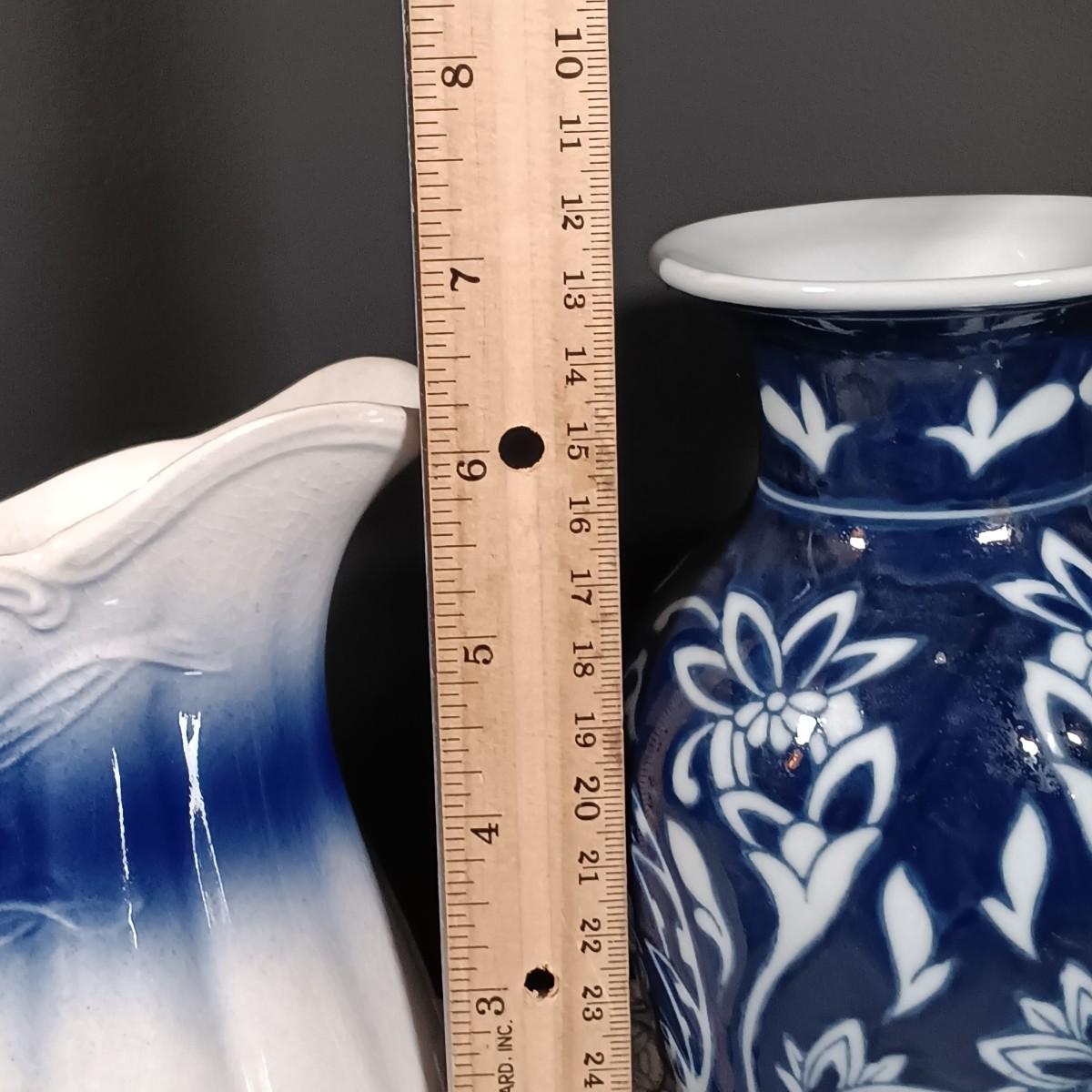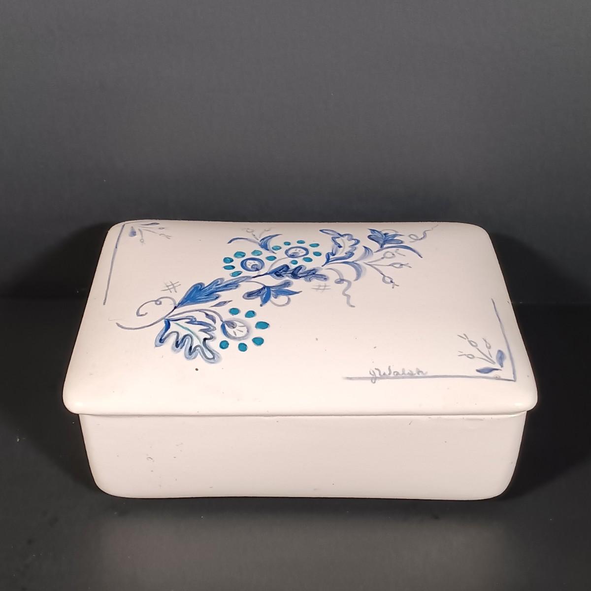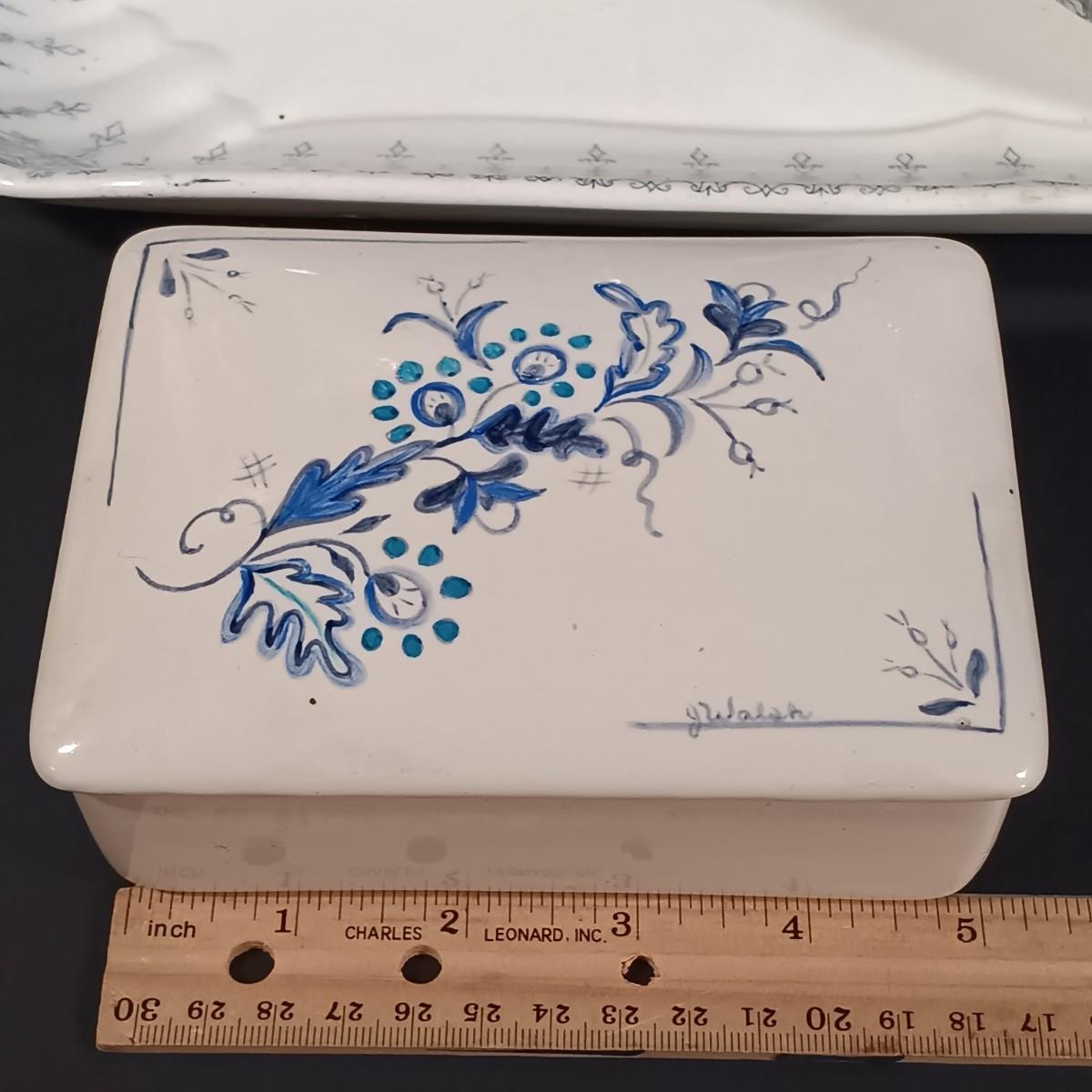 LOT 157: Porcelain Pitchers, Signed Trinket Box (J. Walsh), Garden Ridge Vase & More