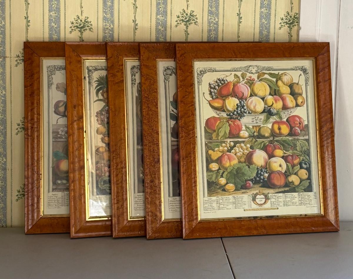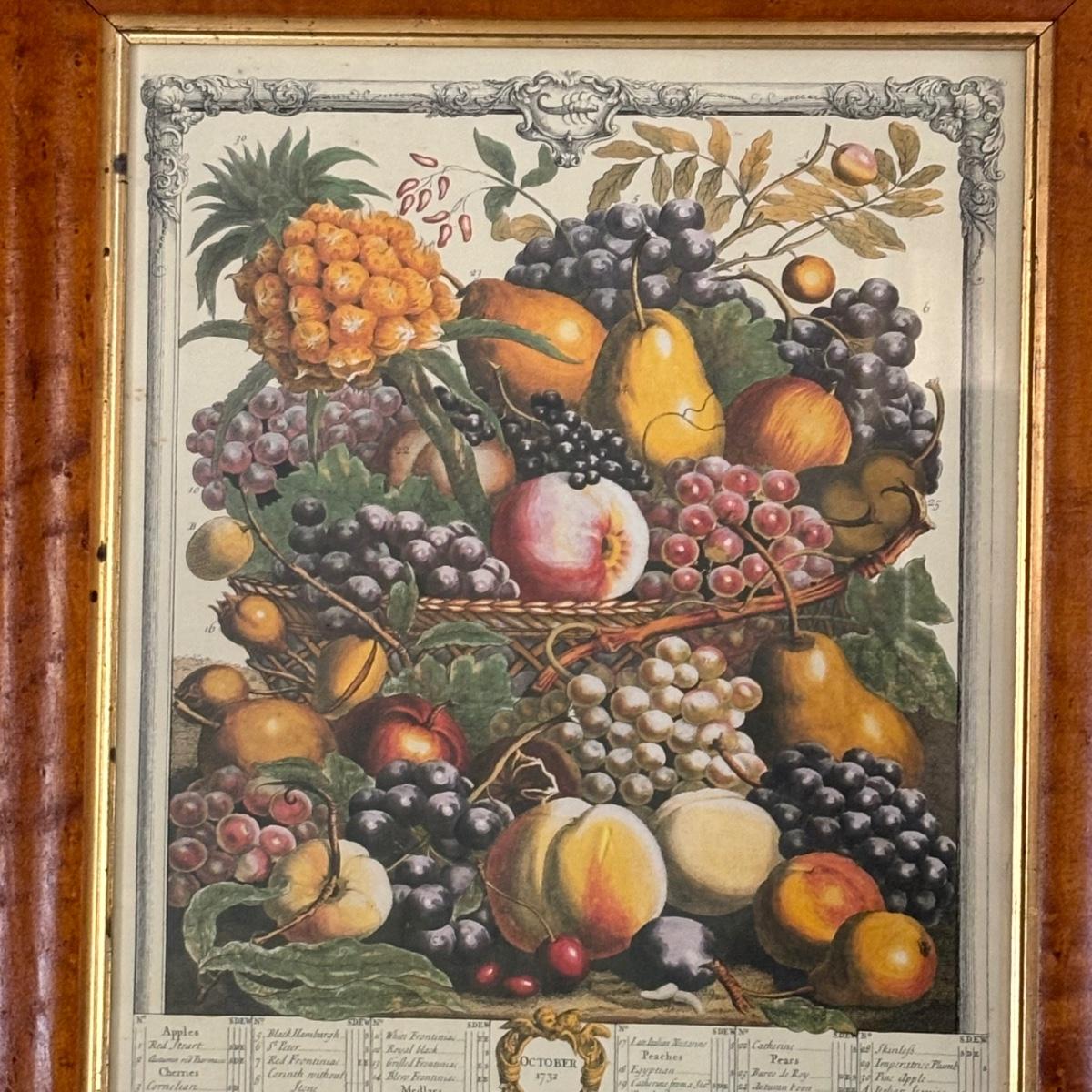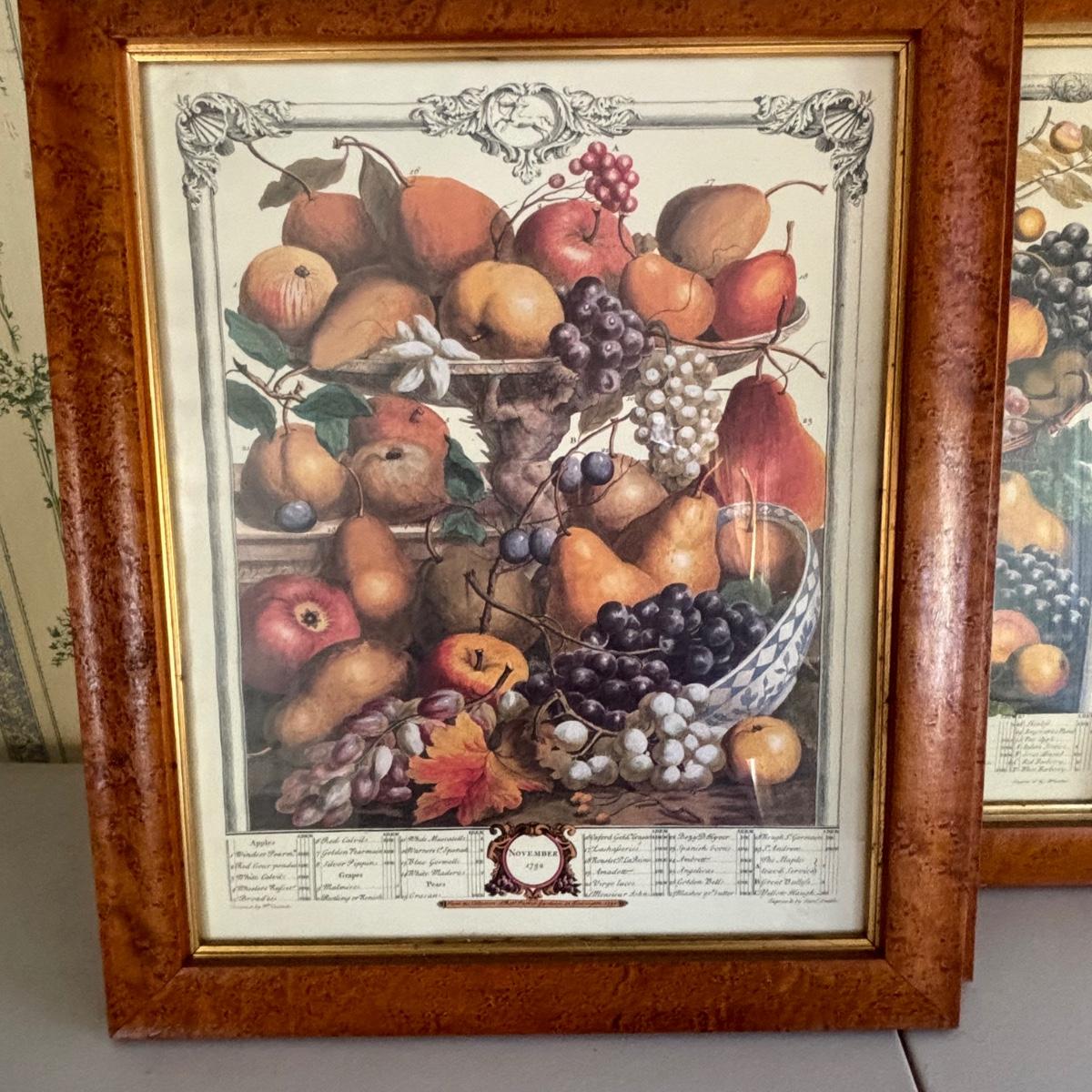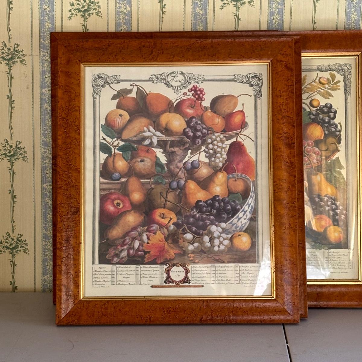 LOT 170: Vintage Framed 12 Months of Fruit Prints: Set of 5 September, November, August, October, March