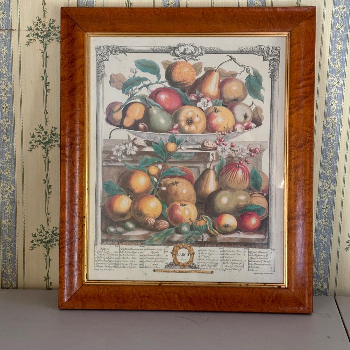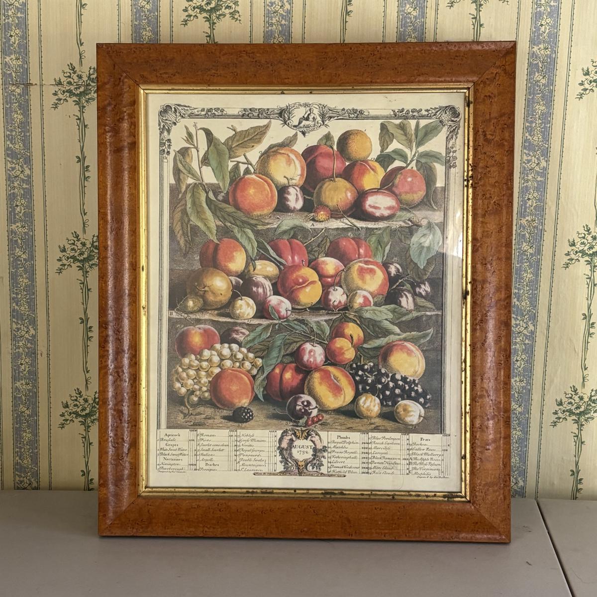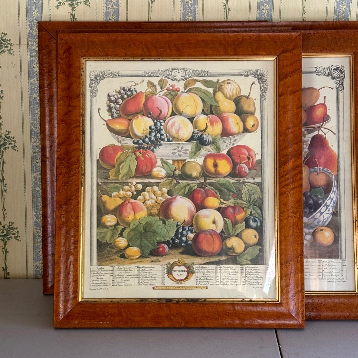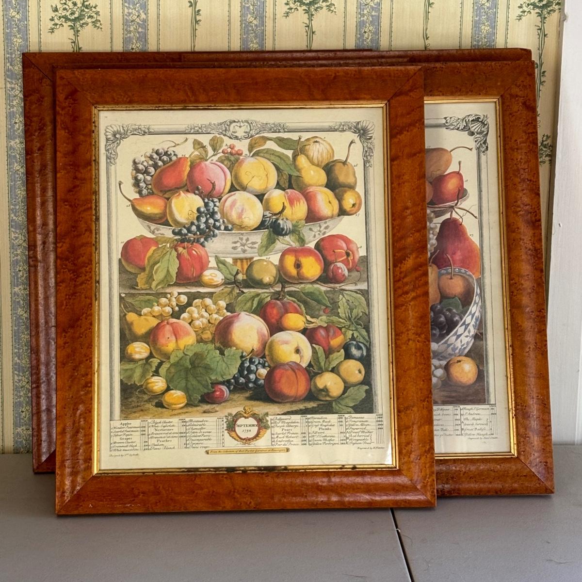 LOT 170: Vintage Framed 12 Months of Fruit Prints: Set of 5 September, November, August, October, March