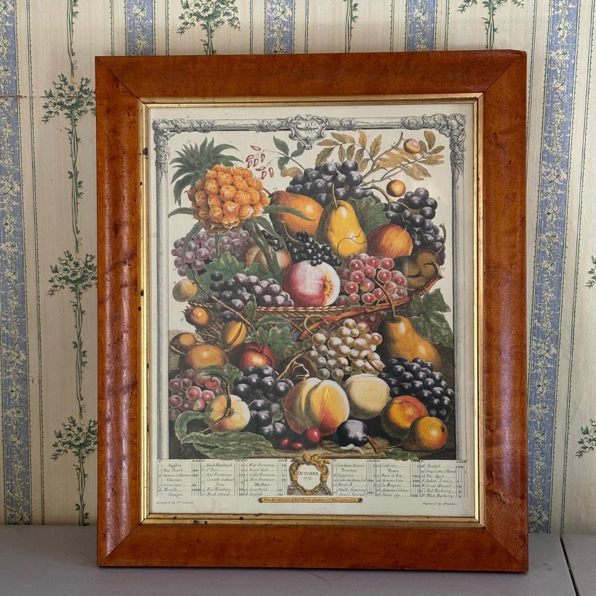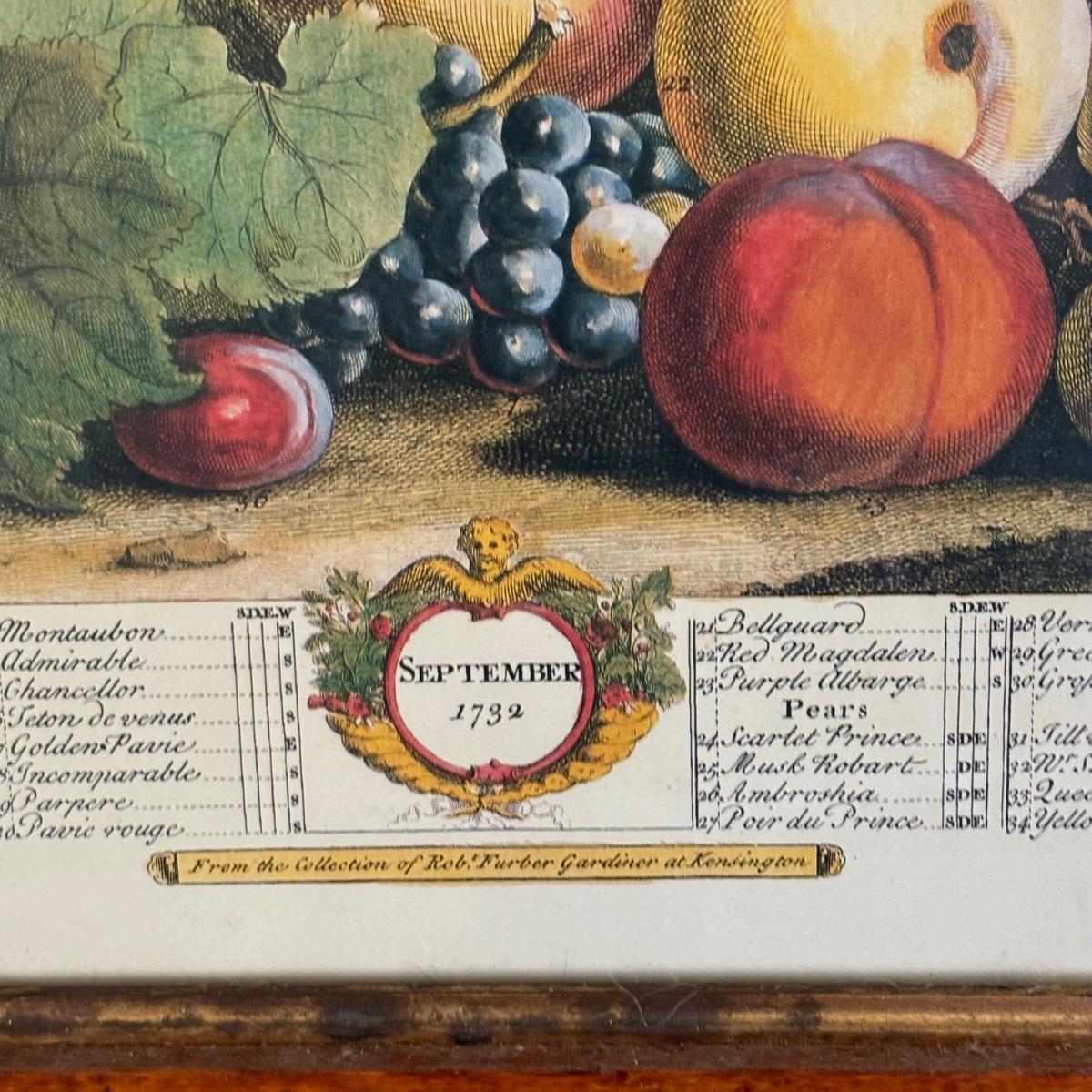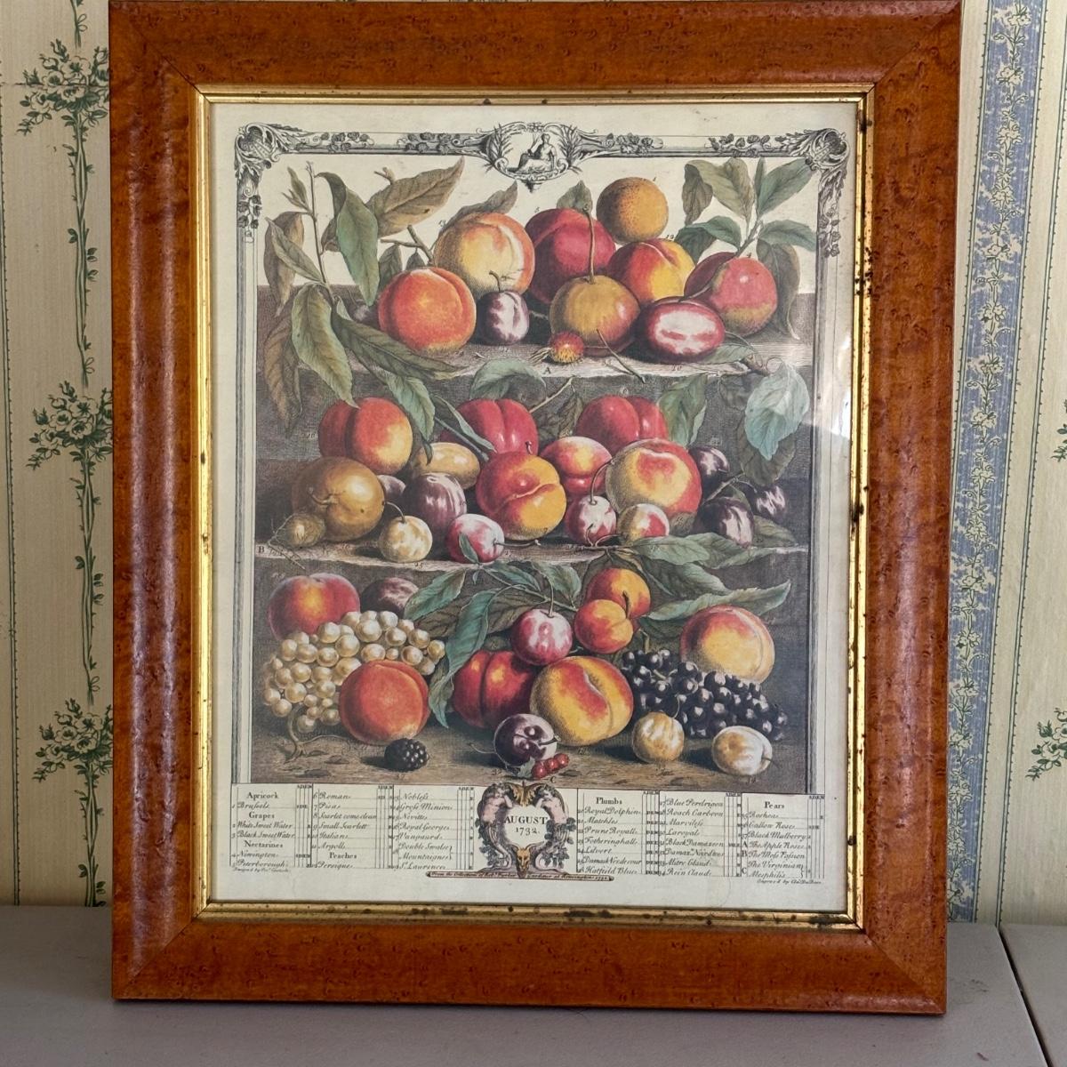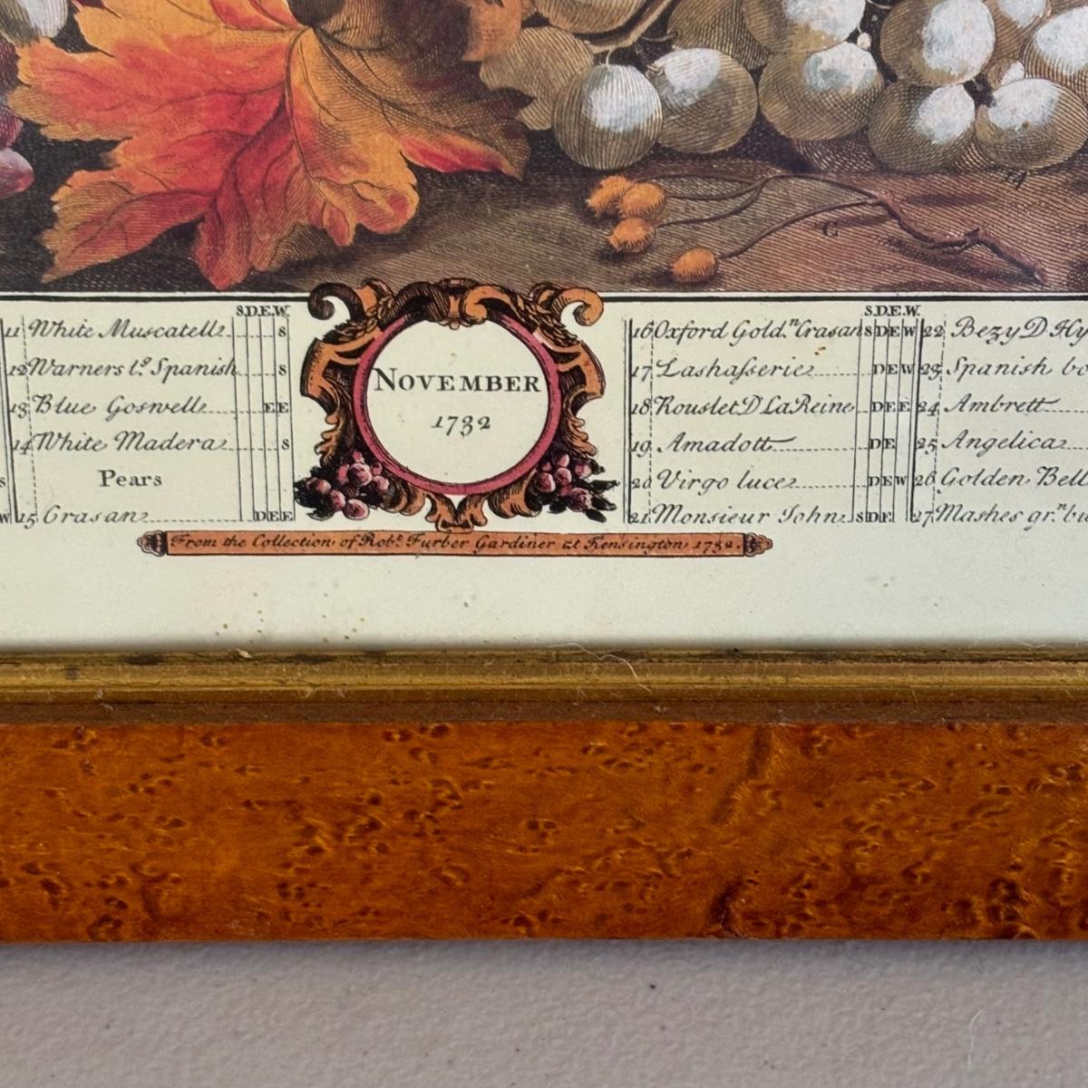 LOT 170: Vintage Framed 12 Months of Fruit Prints: Set of 5 September, November, August, October, March