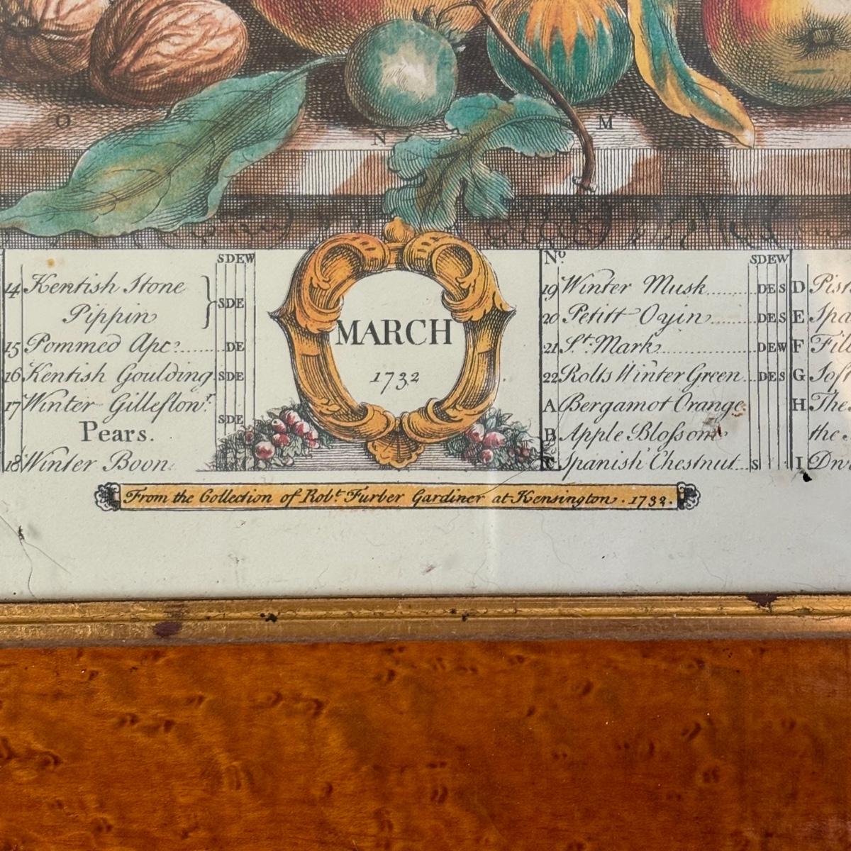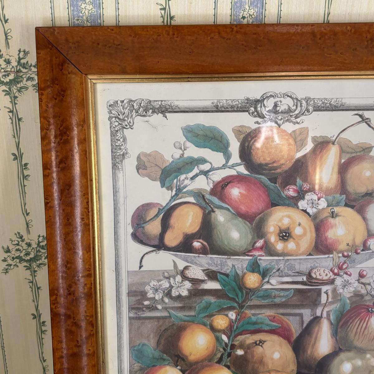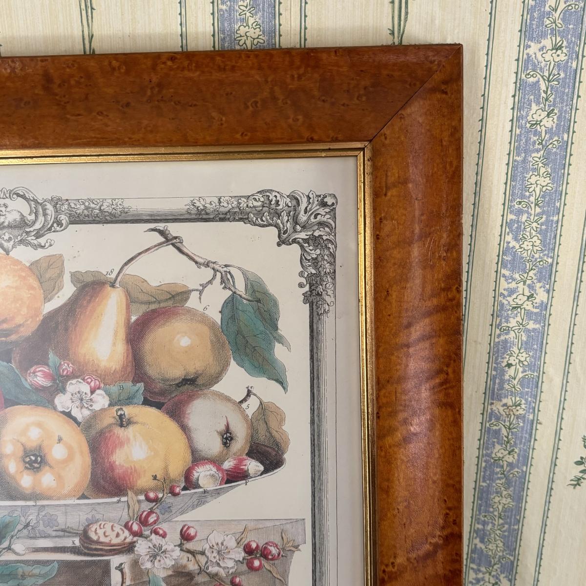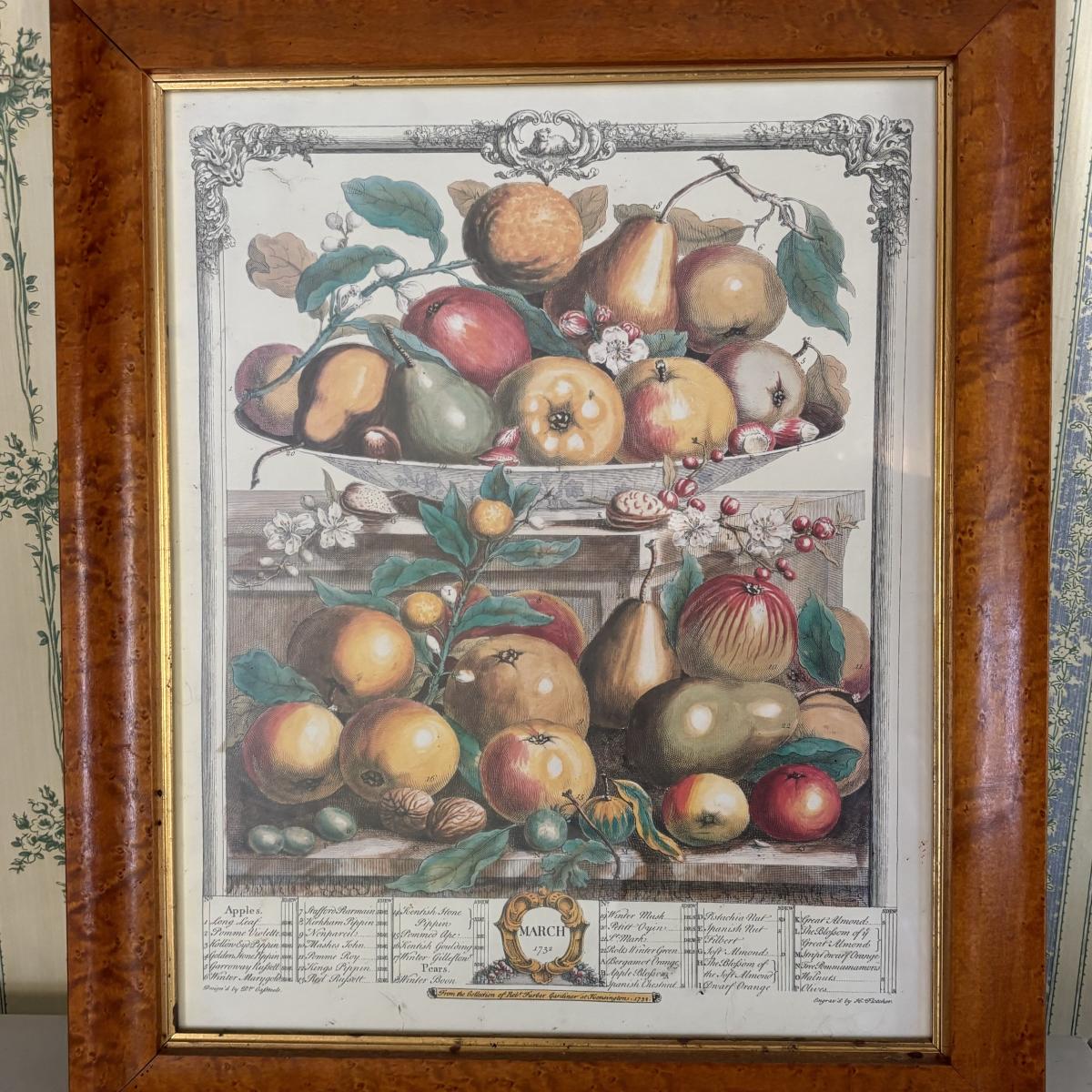 LOT 170: Vintage Framed 12 Months of Fruit Prints: Set of 5 September, November, August, October, March
