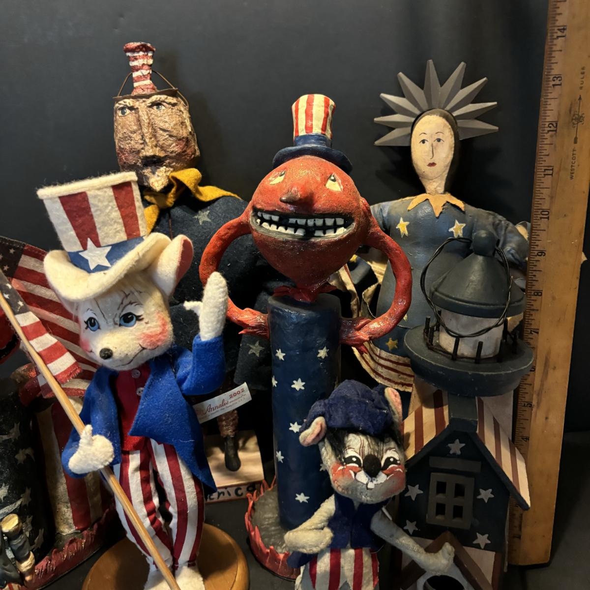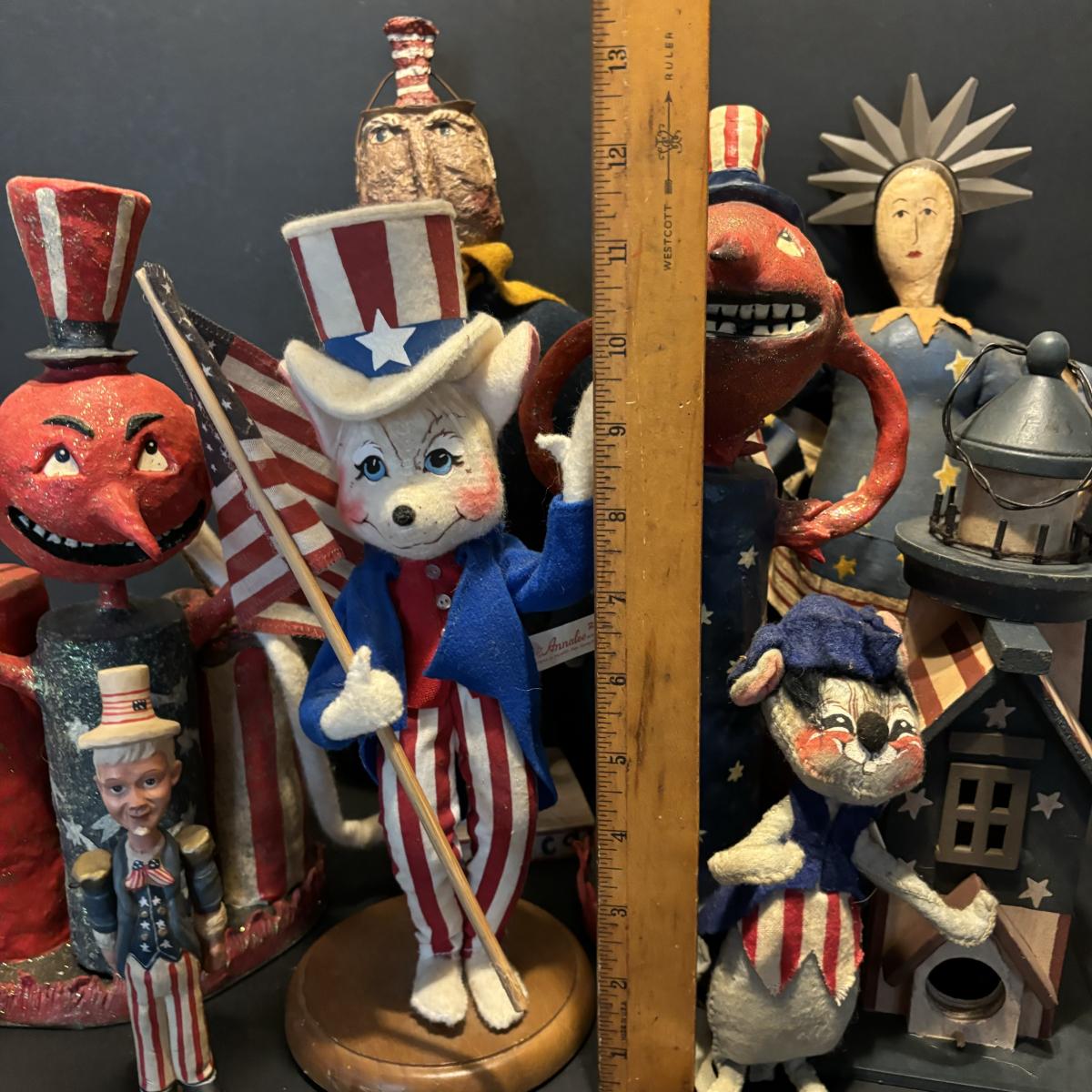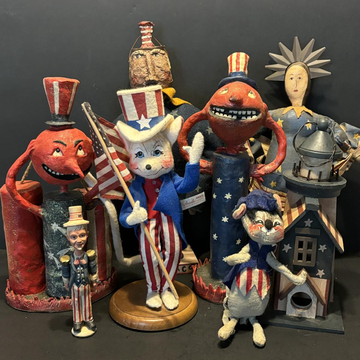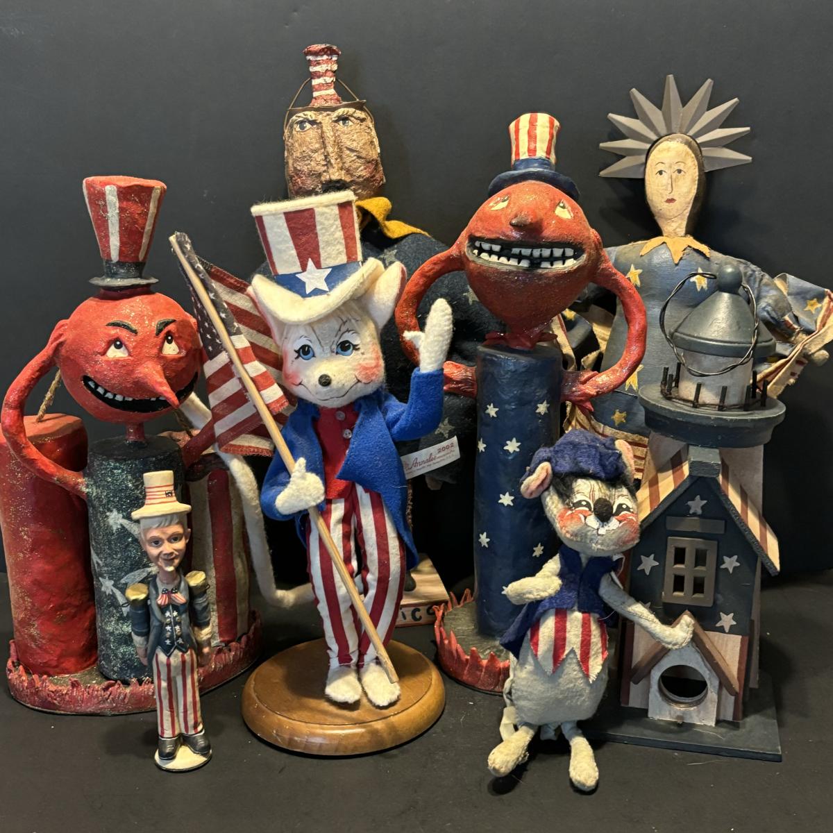 LOT 173: Dept 56 Patriotic Folk Art Polliwogs Firecracker Figures. Annales Patriotic Mice & More
