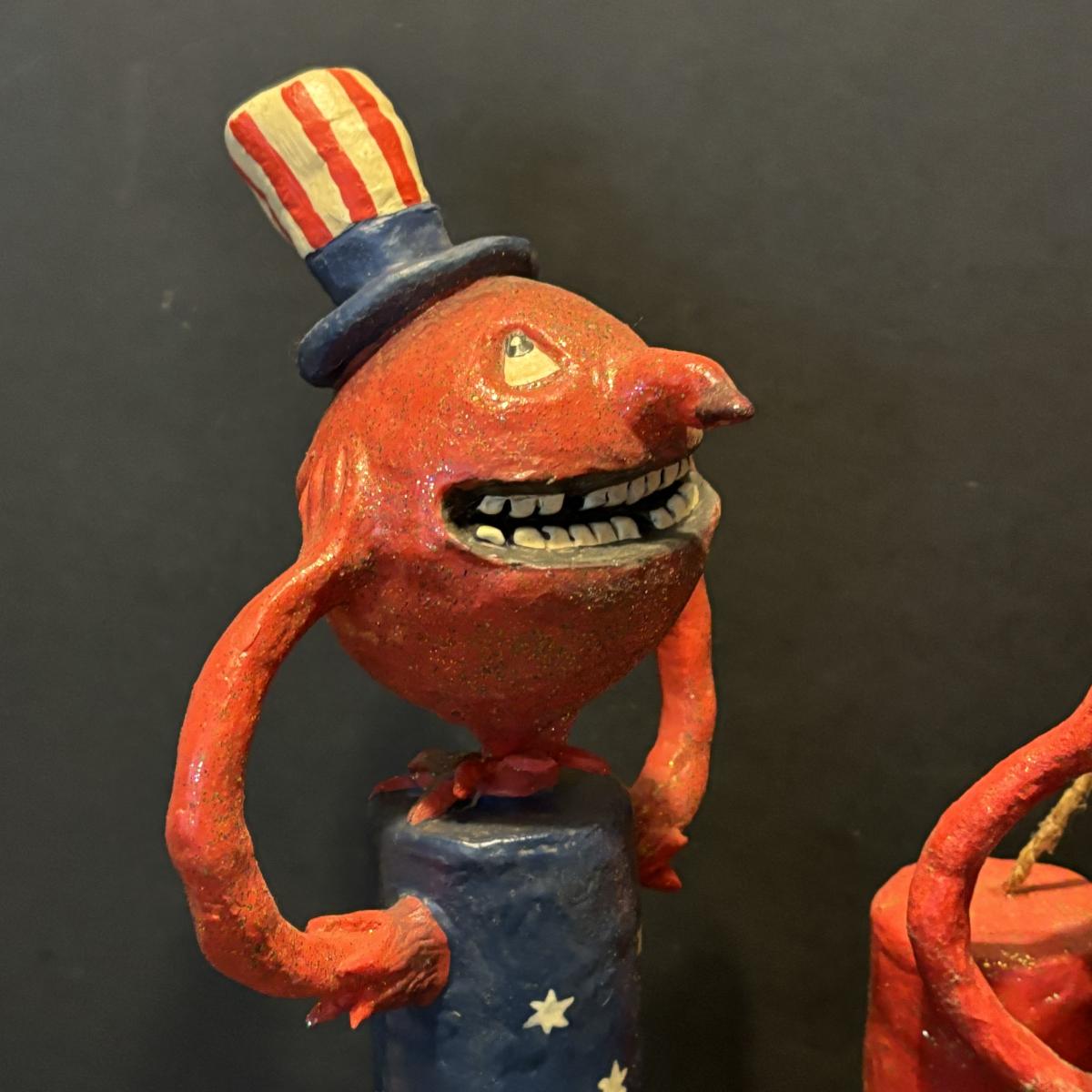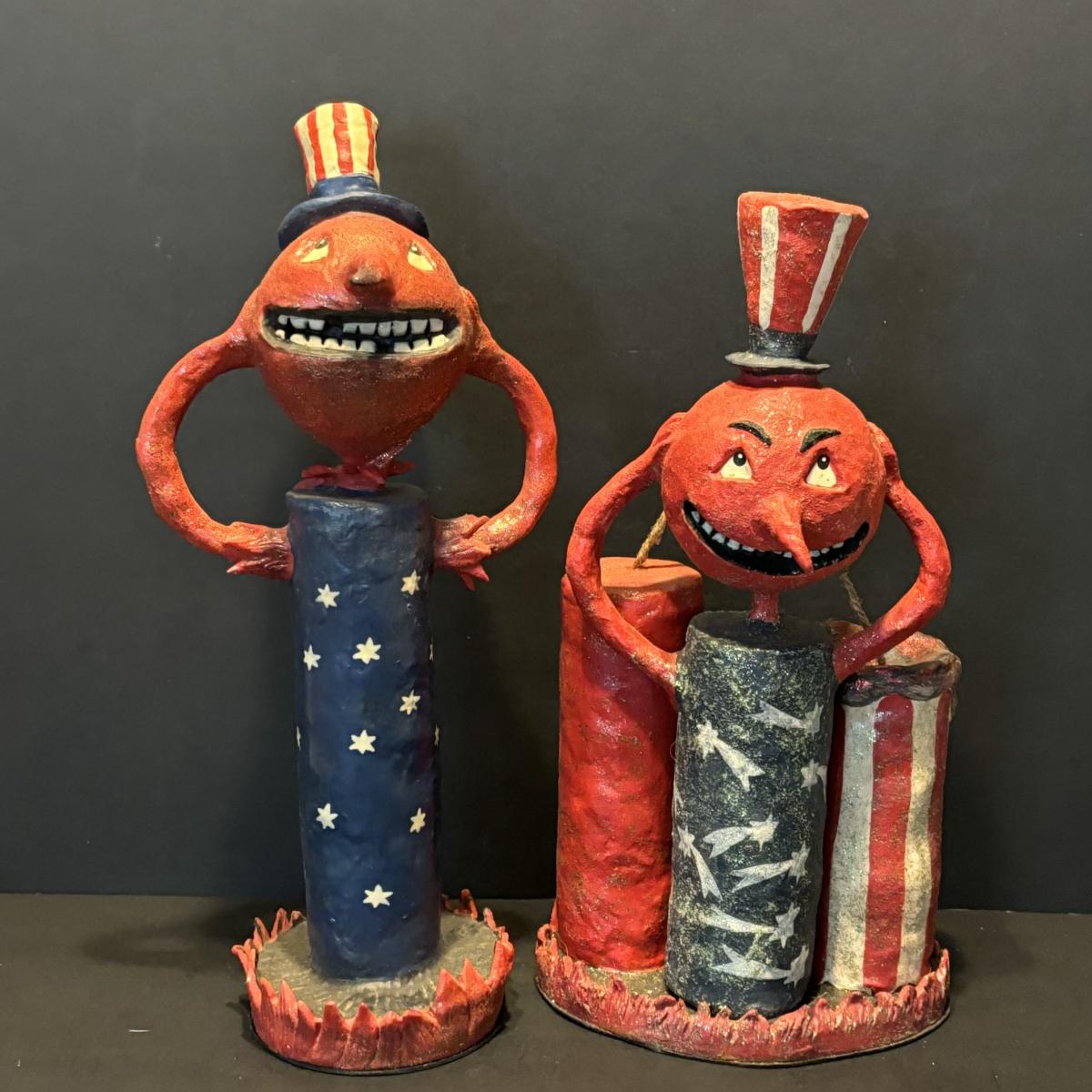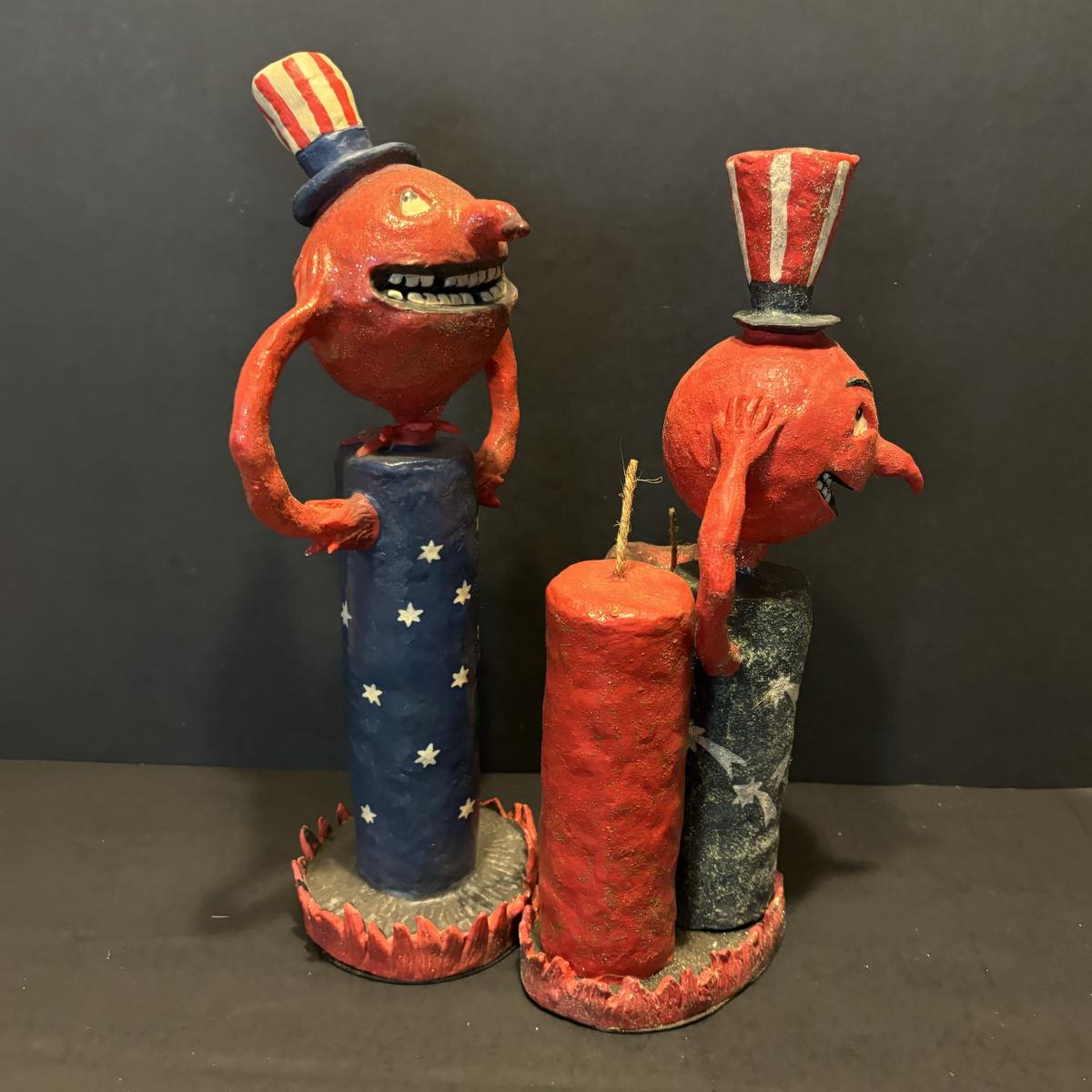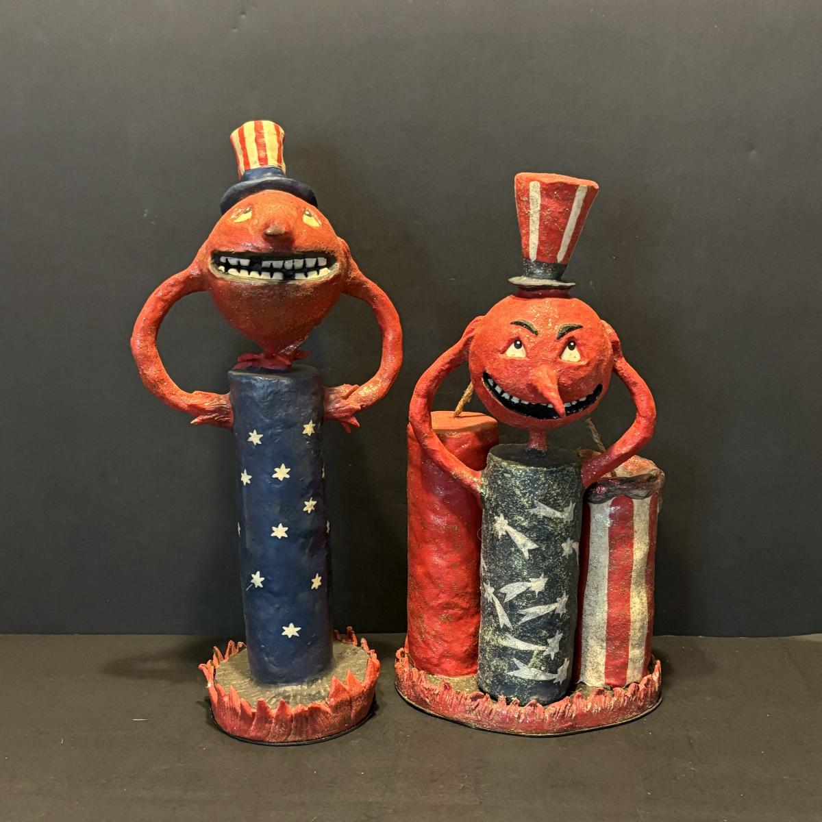 LOT 173: Dept 56 Patriotic Folk Art Polliwogs Firecracker Figures. Annales Patriotic Mice & More