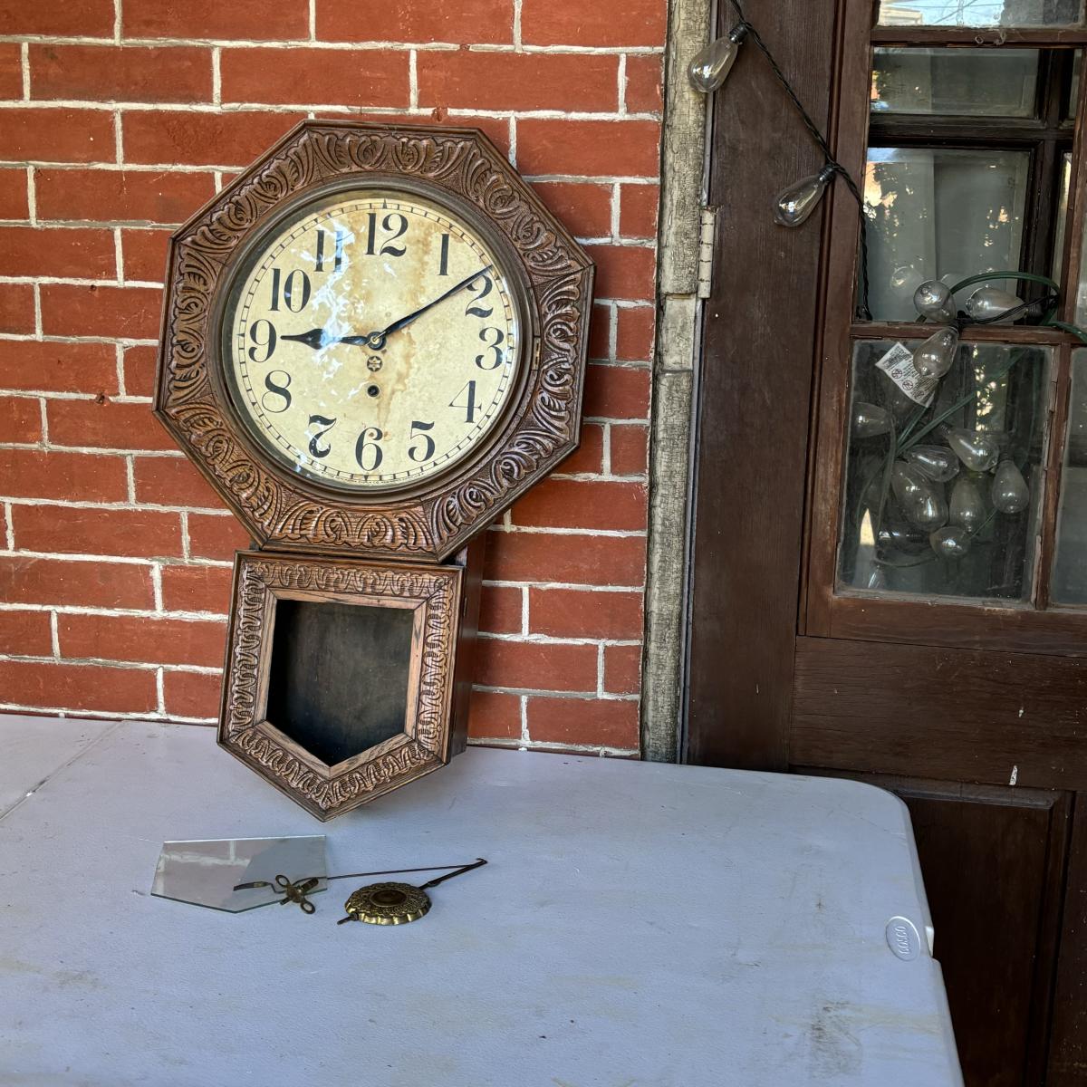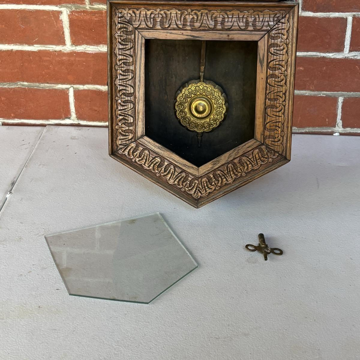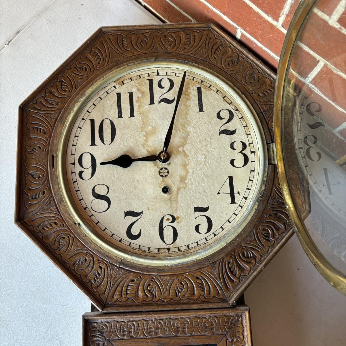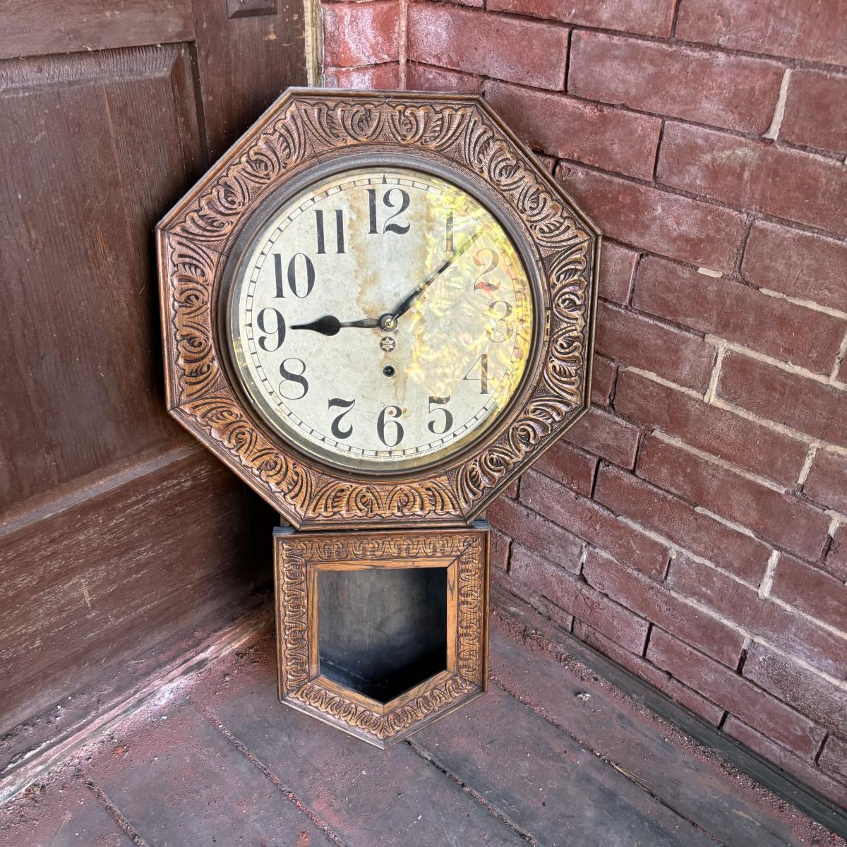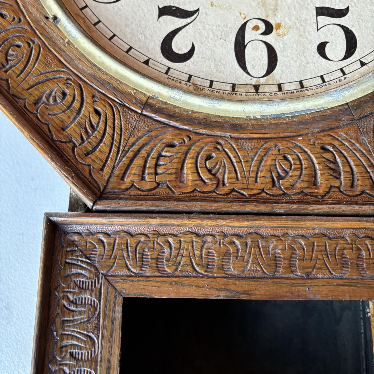 LOT 177: Antique Wood New Haven Carved Scholl House Clock w/Key