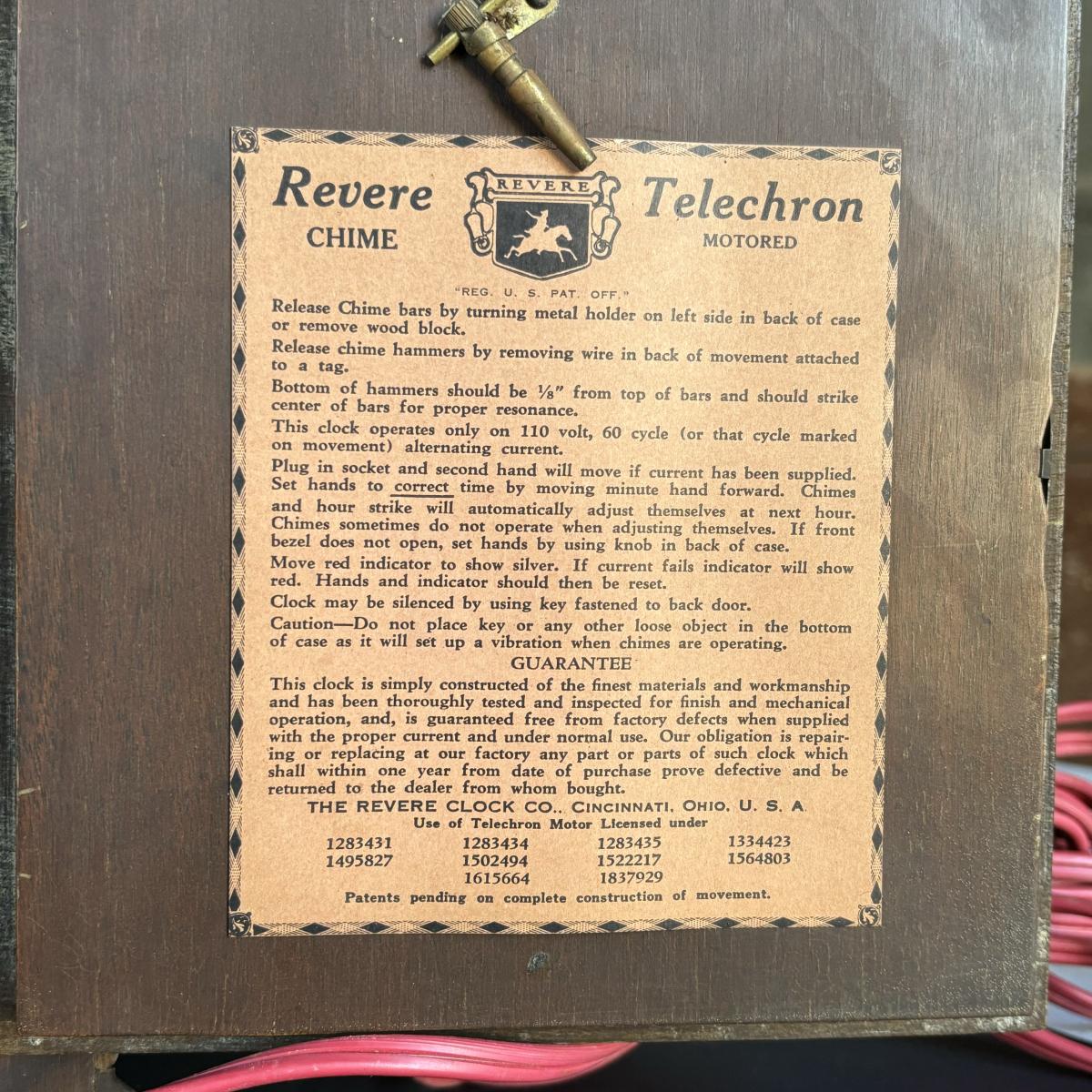 LOT 179: Vintage Revere Telechron Motored Electric Mantle/Desk Clock