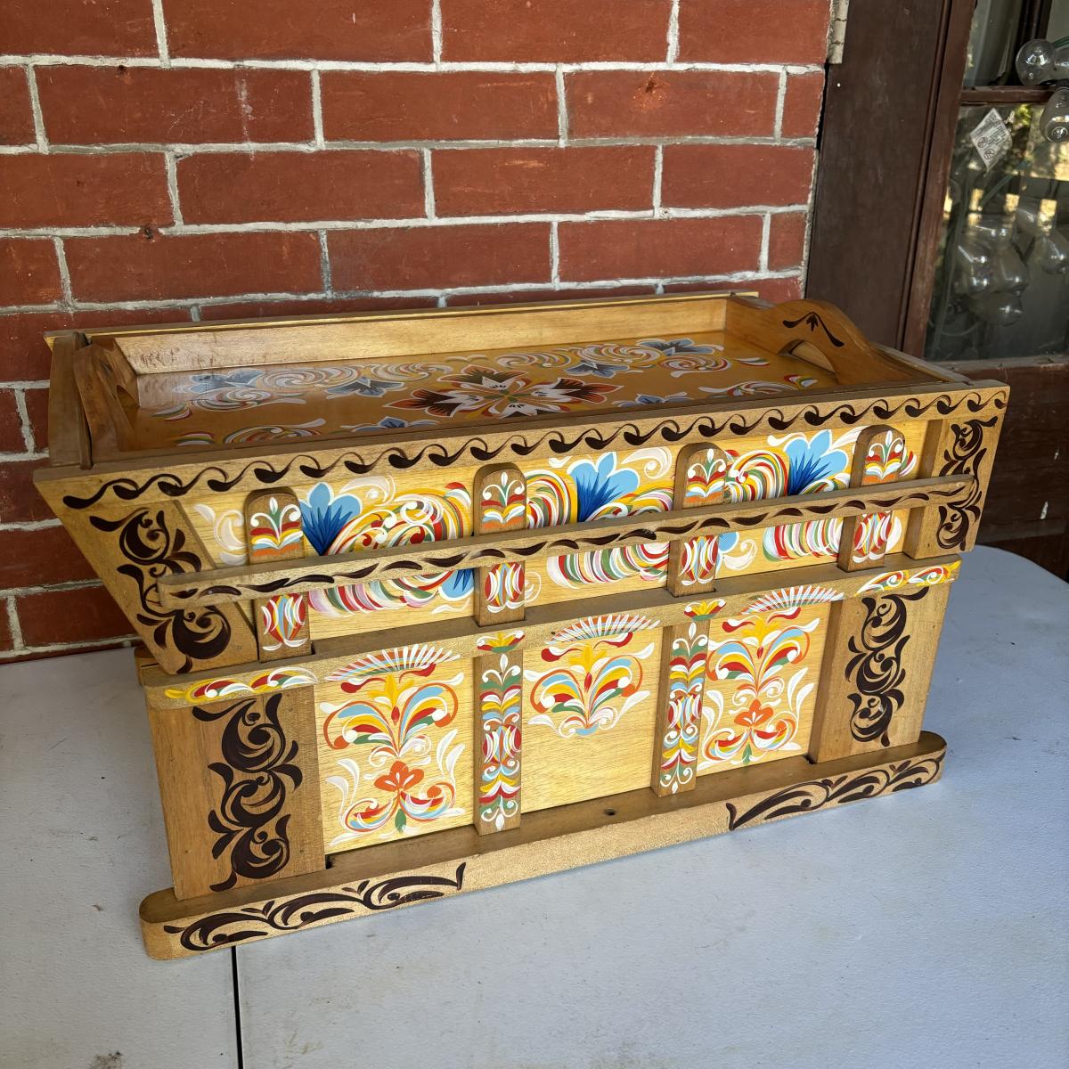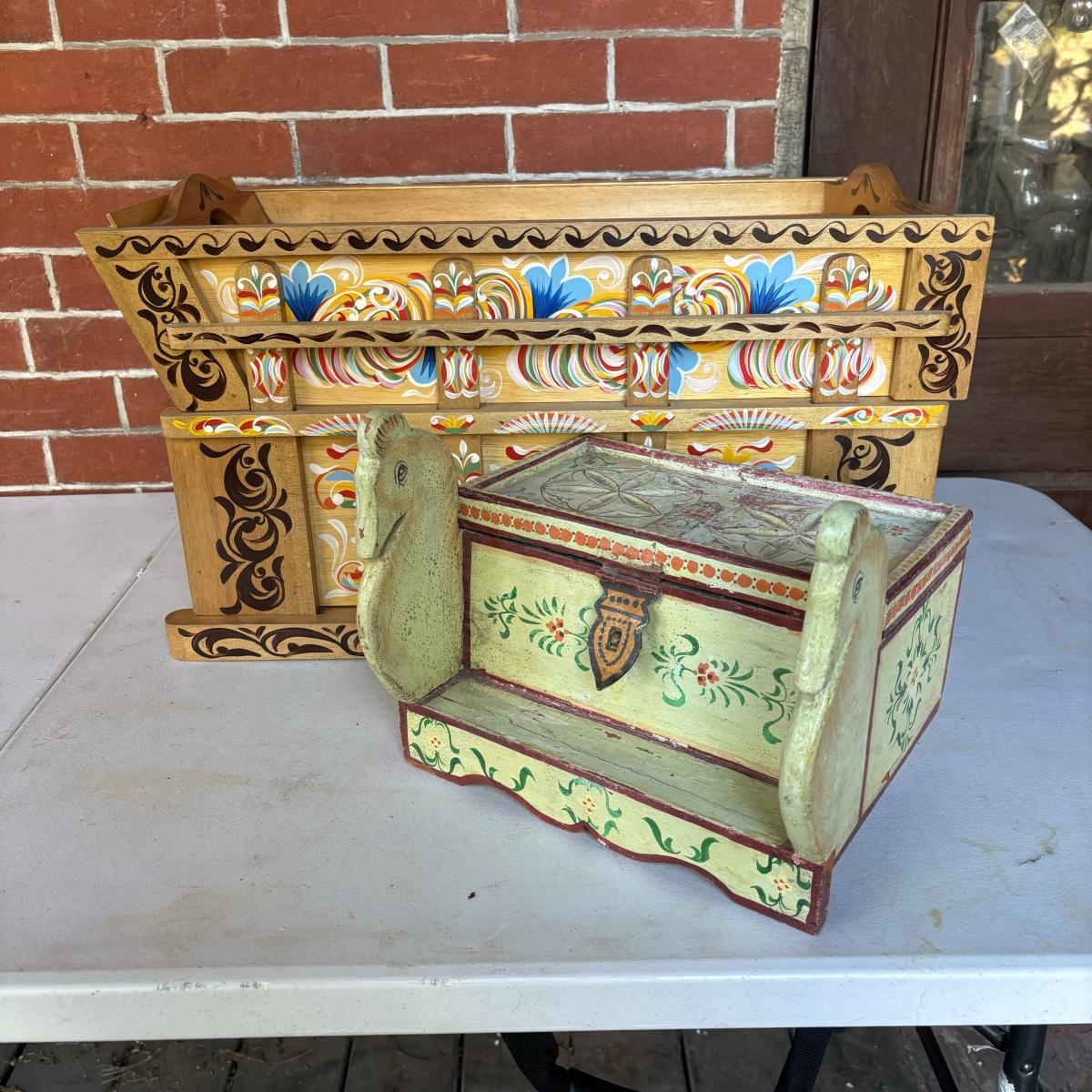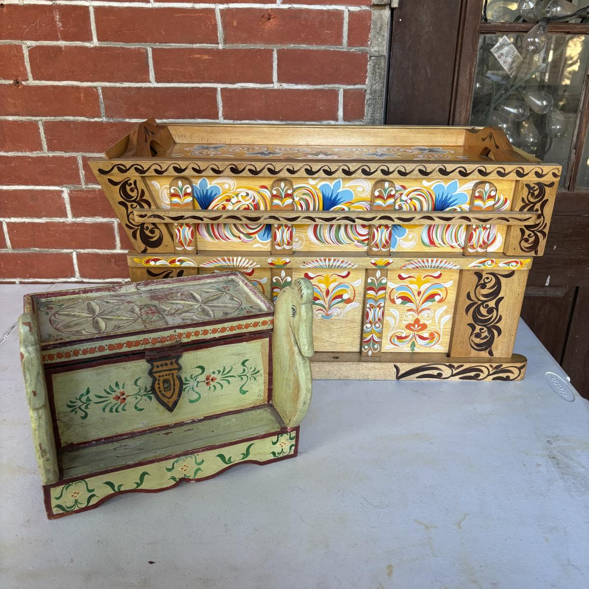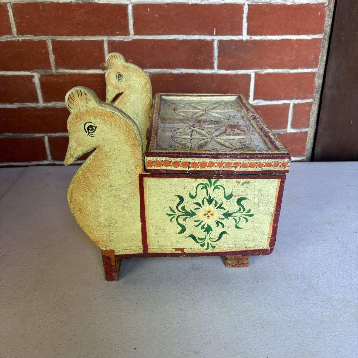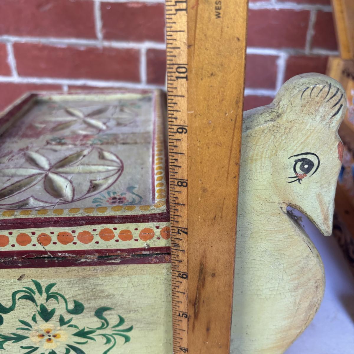 LOT 182: Folk Art Box w/Removeable Tray & Side & Peacock Folk Art Box