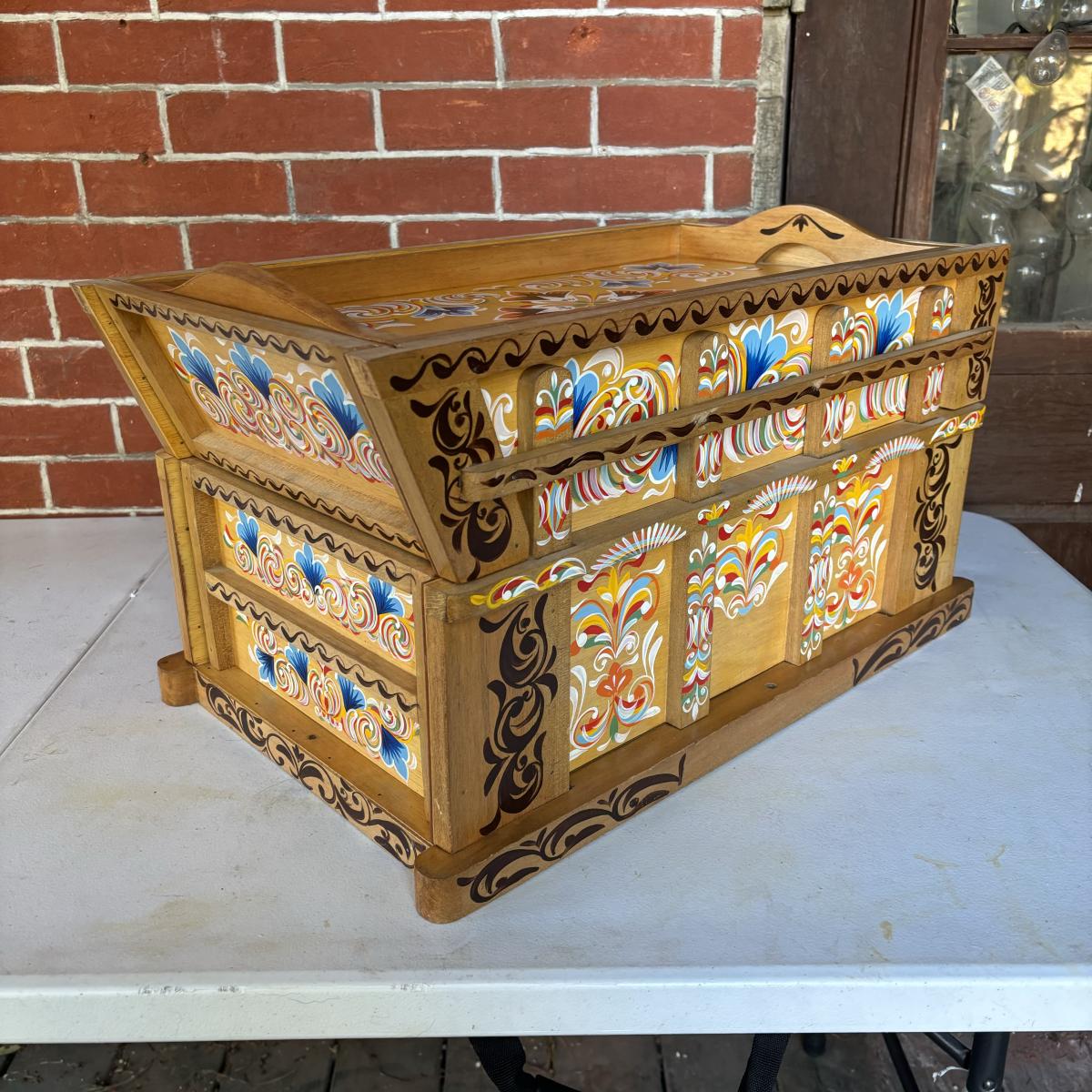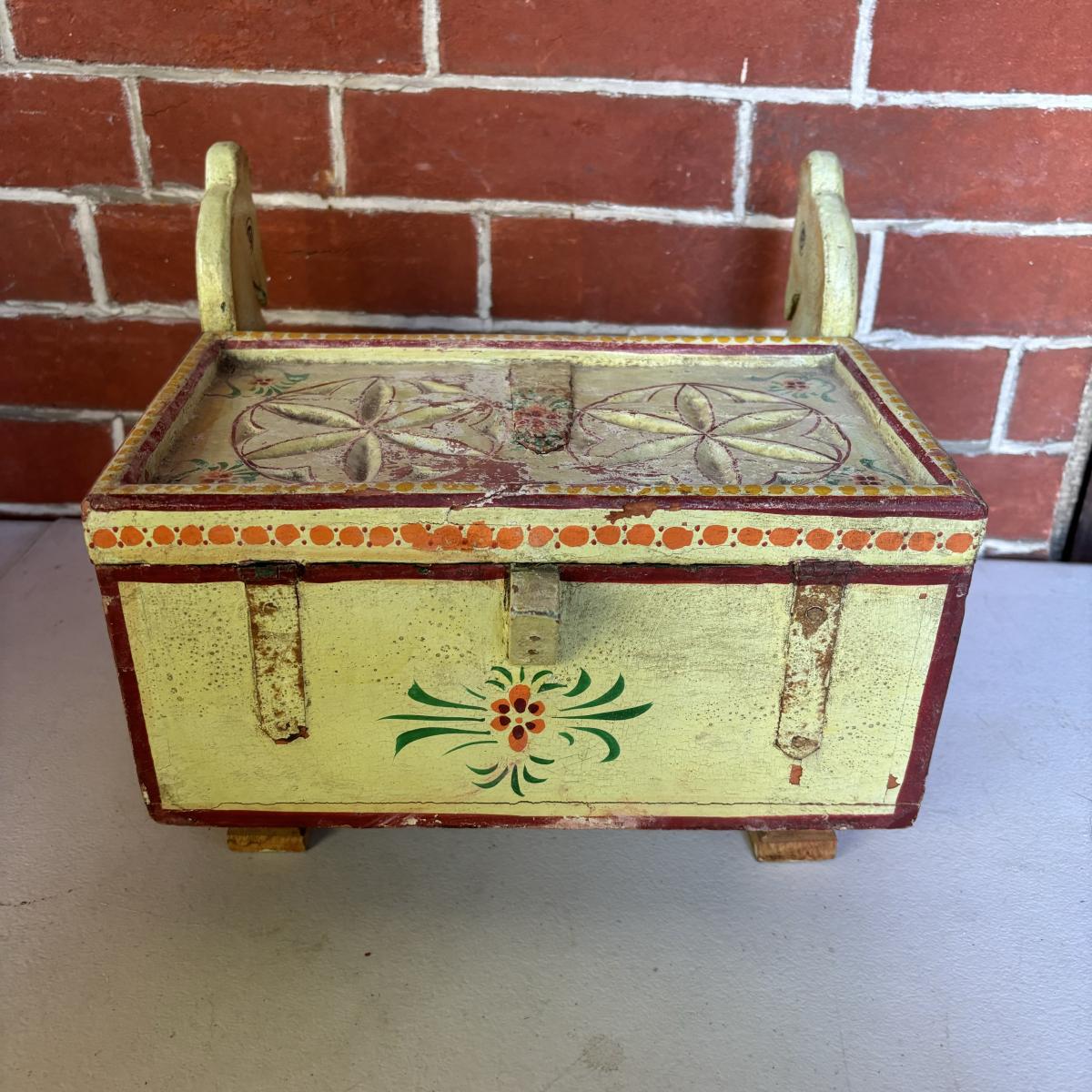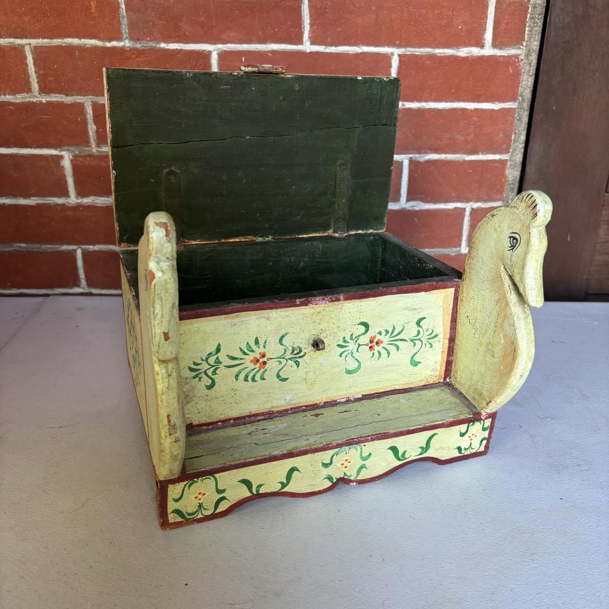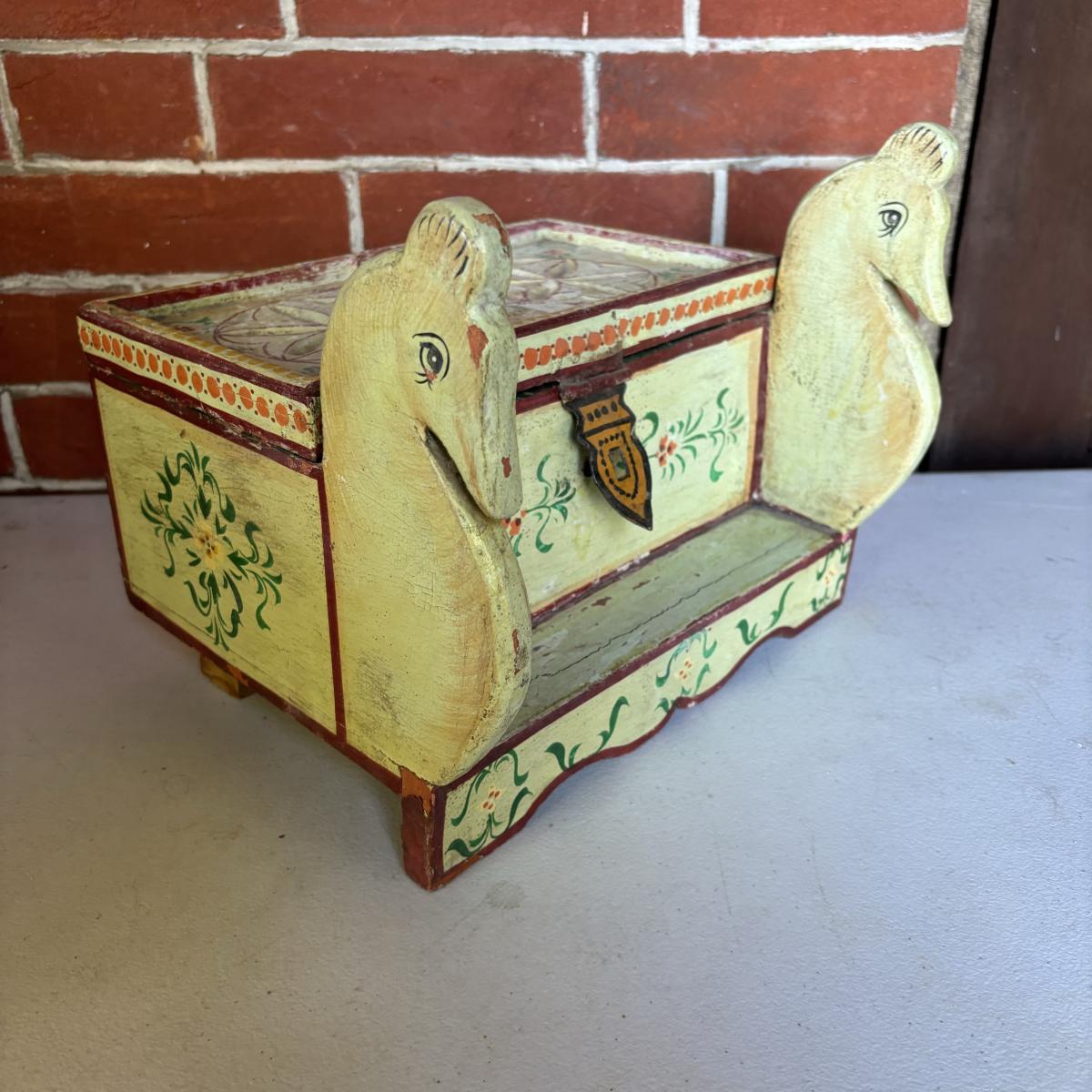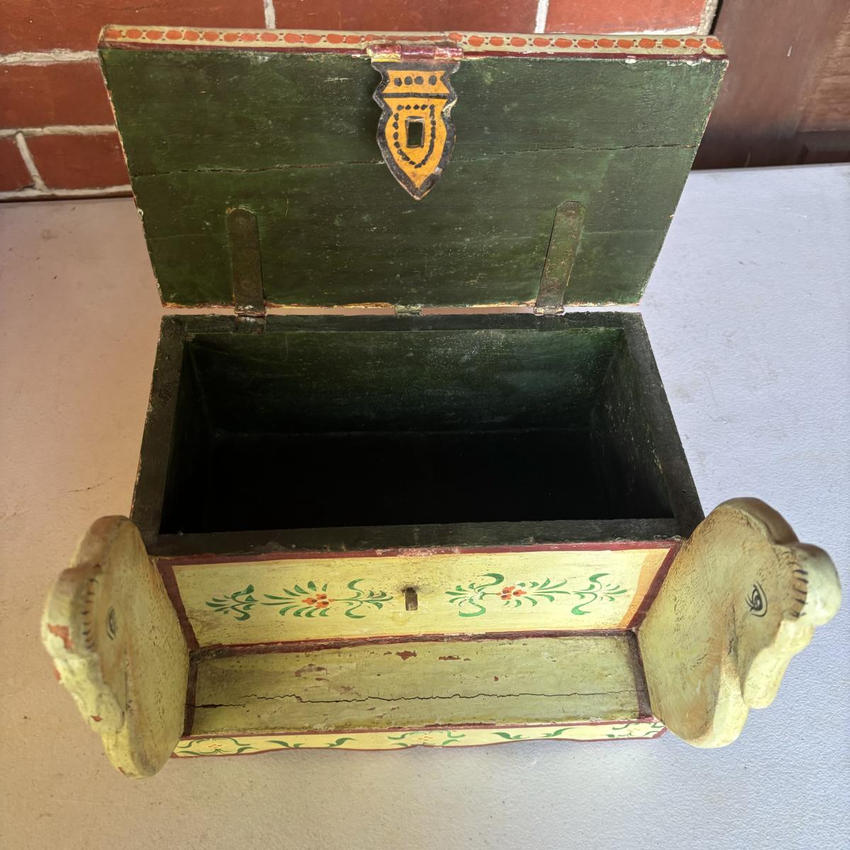 LOT 182: Folk Art Box w/Removeable Tray & Side & Peacock Folk Art Box