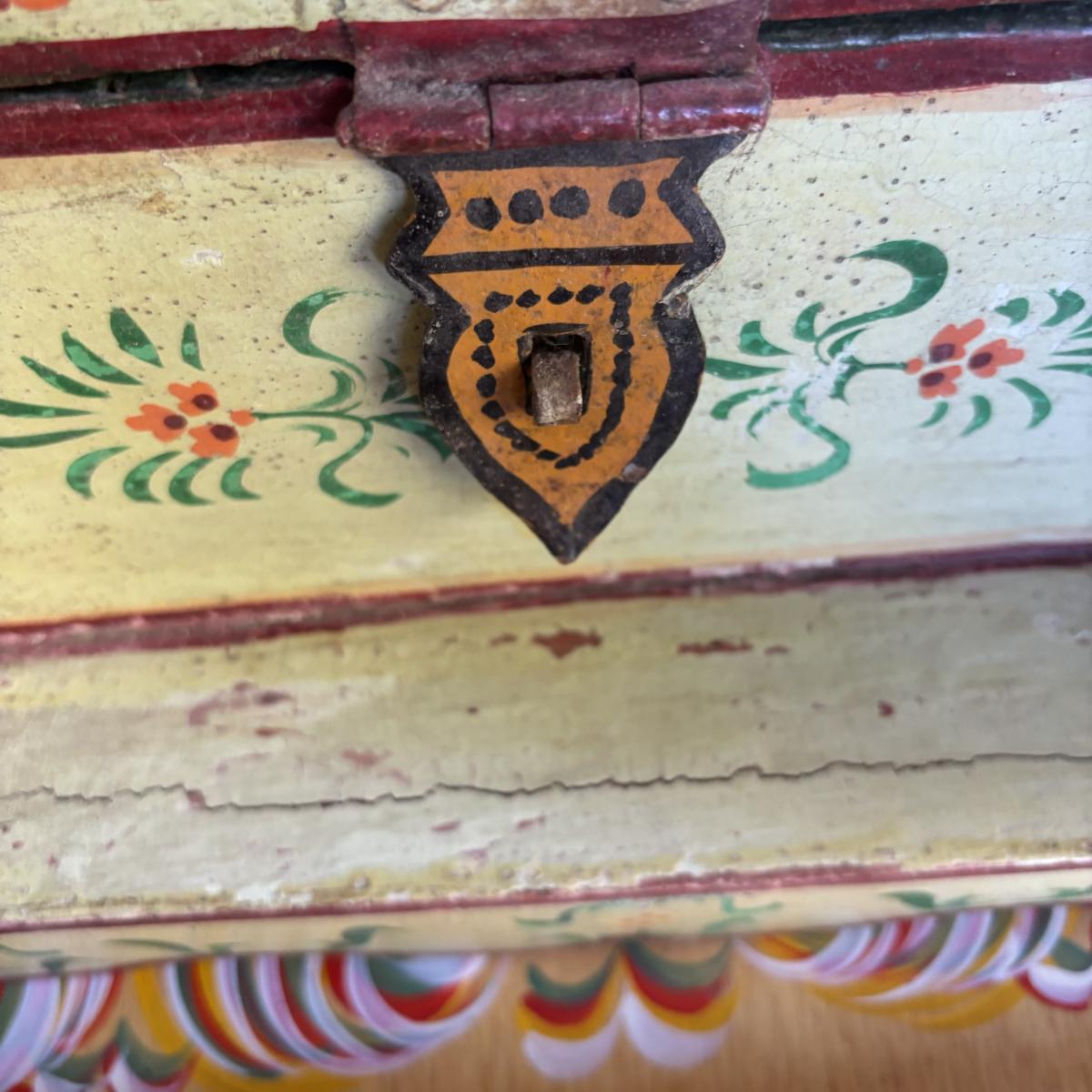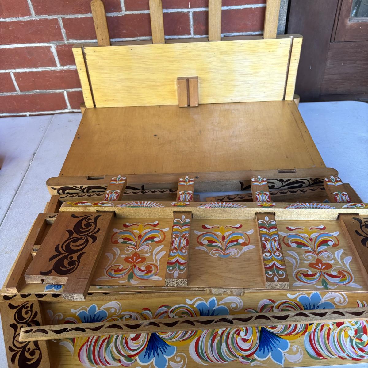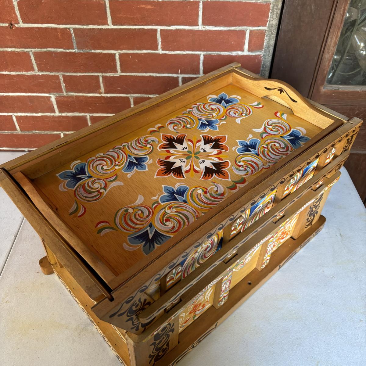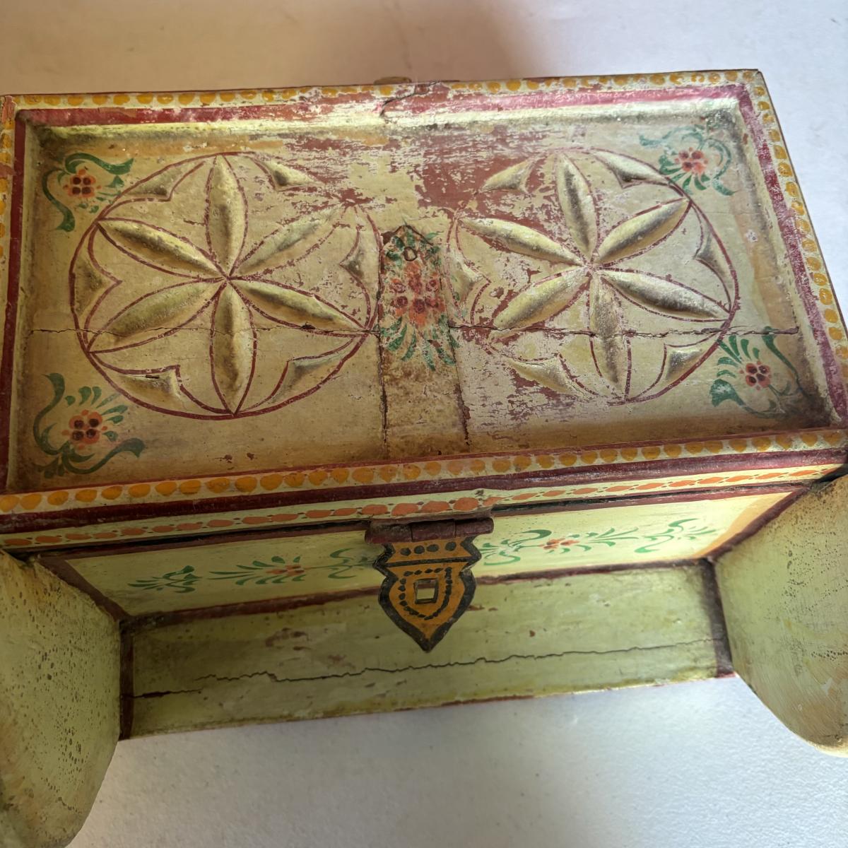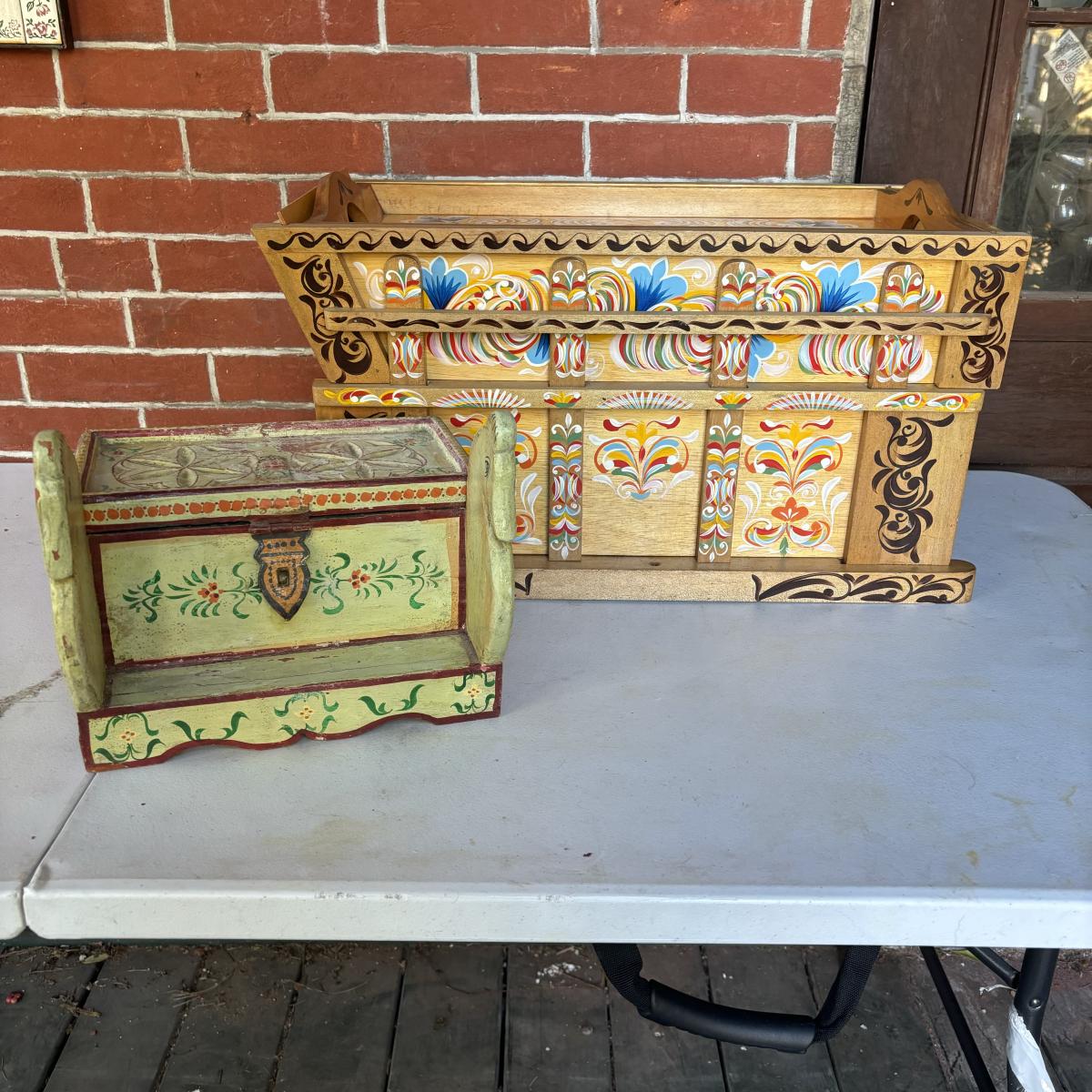 LOT 182: Folk Art Box w/Removeable Tray & Side & Peacock Folk Art Box