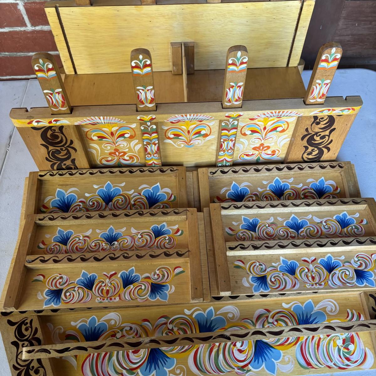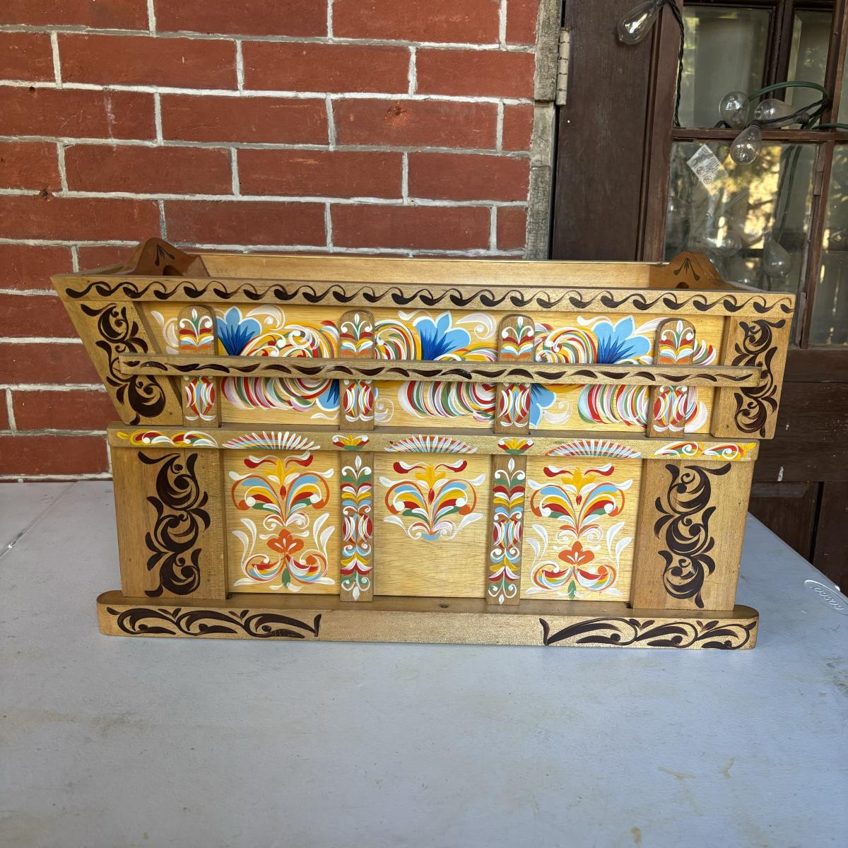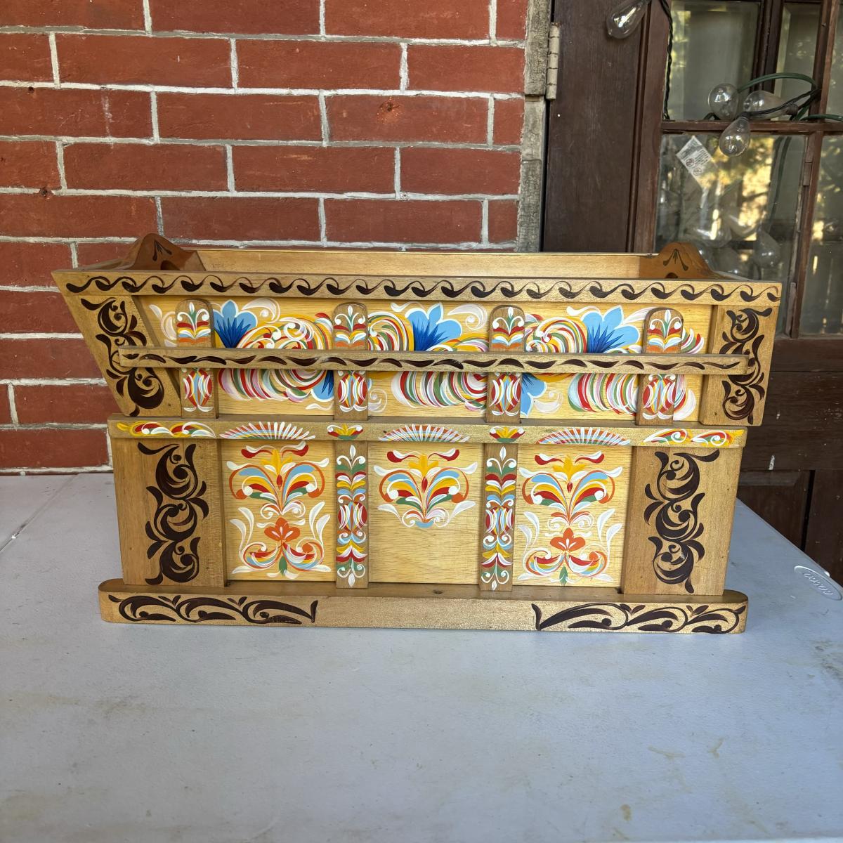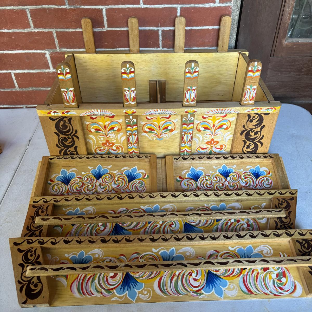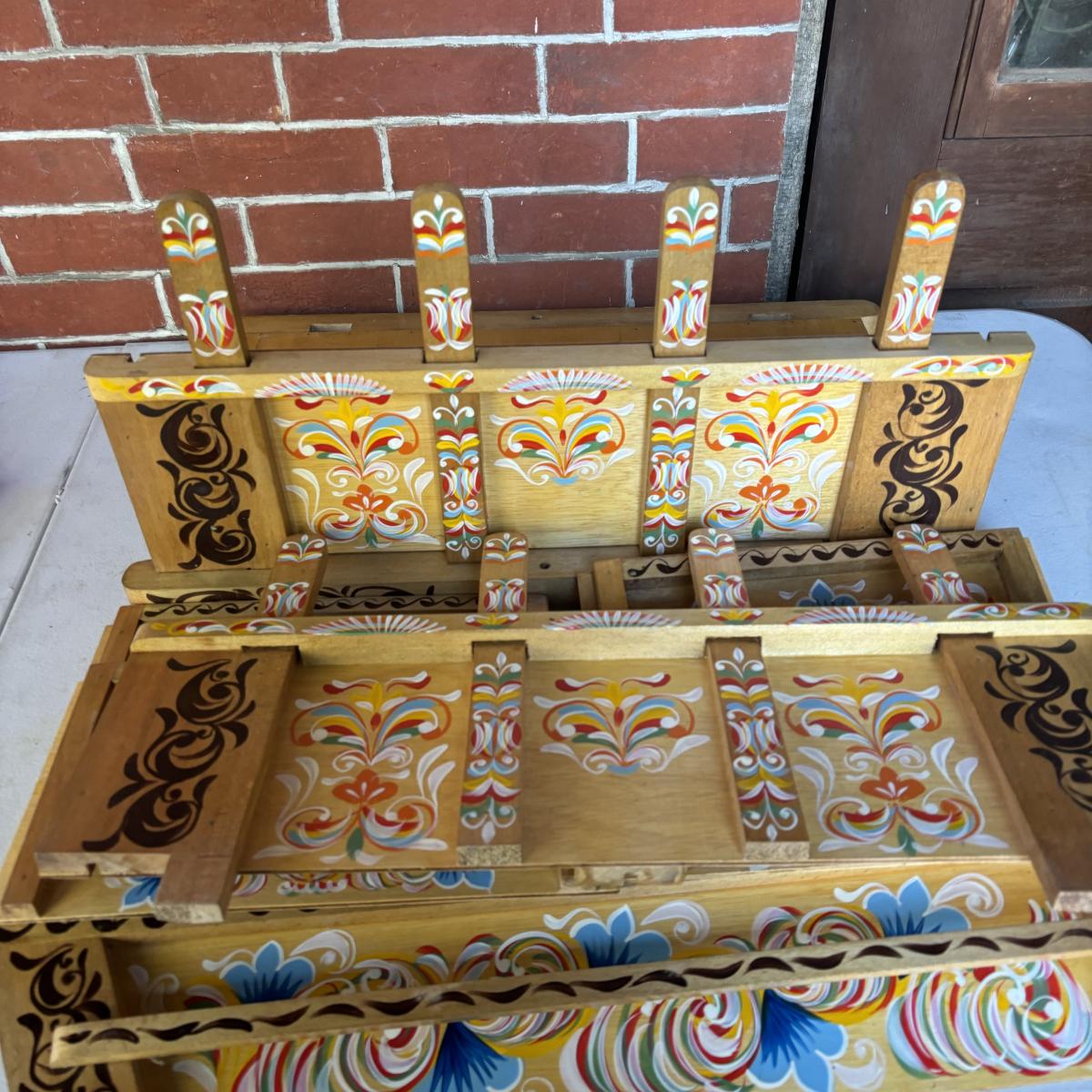 LOT 182: Folk Art Box w/Removeable Tray & Side & Peacock Folk Art Box