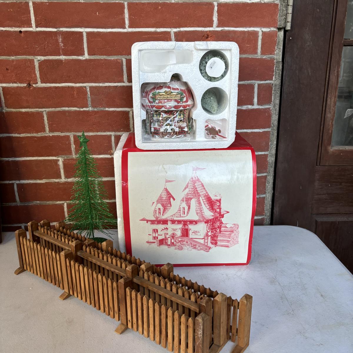 LOT 189: Dept. 56 Grandma's Bakery & Elsie's Gingerbread Shop, 4 Sections of Wooden Fence & Tree