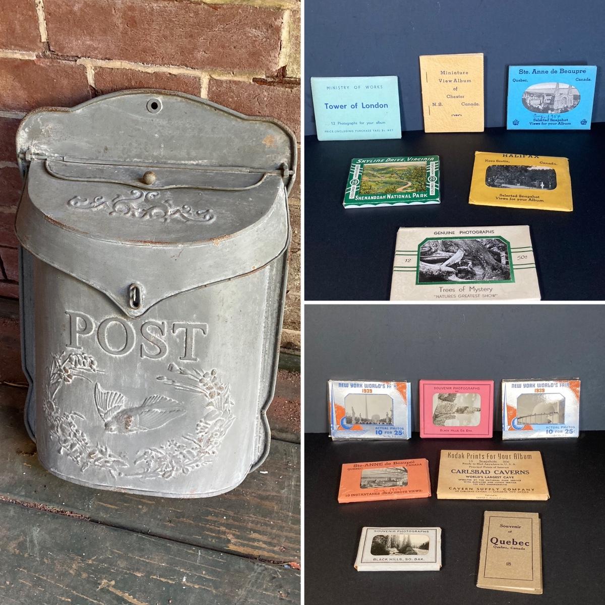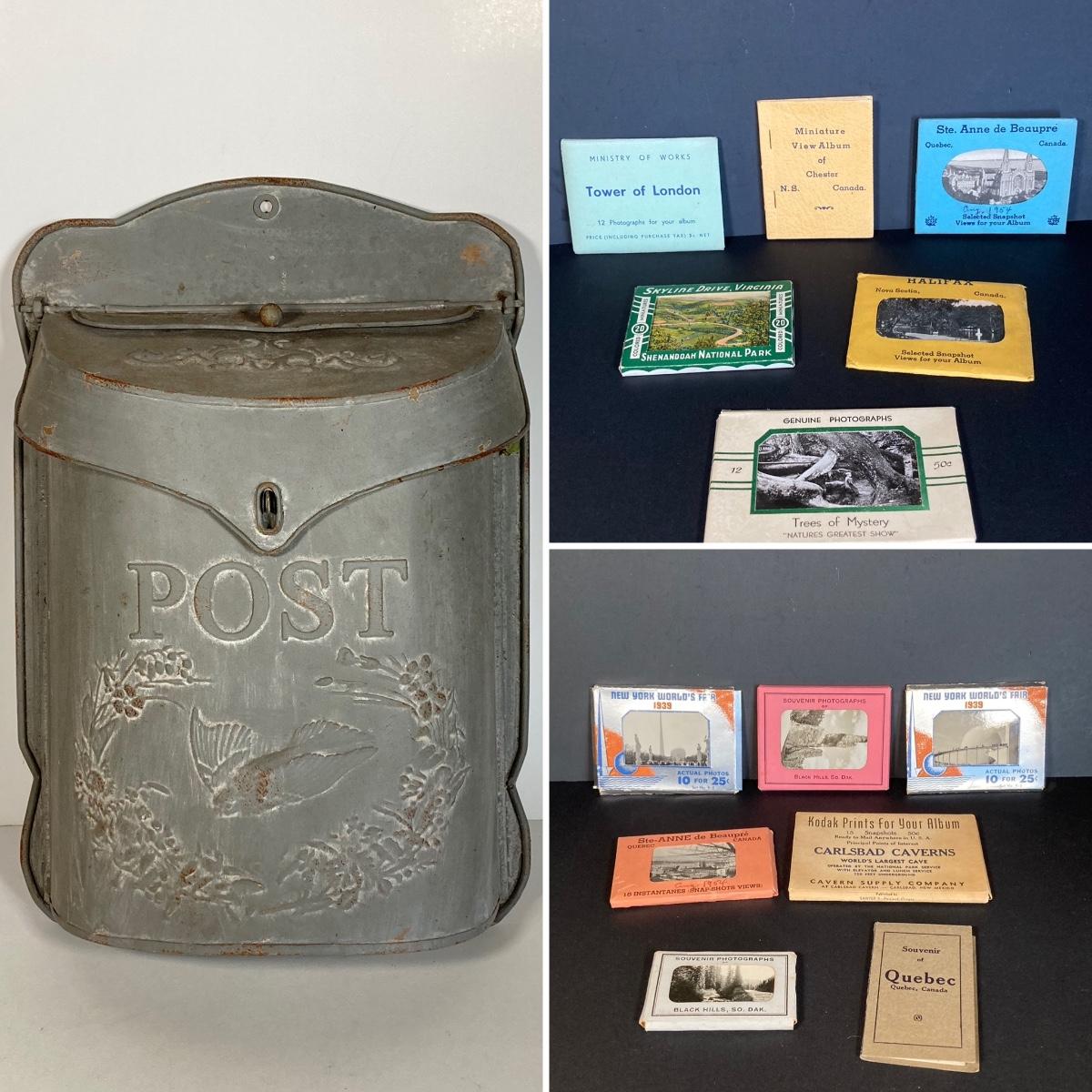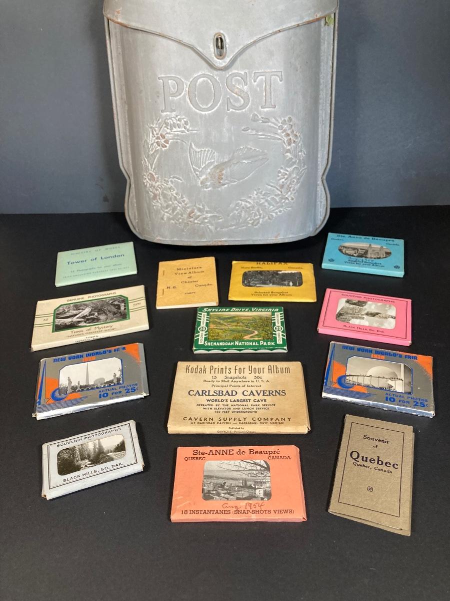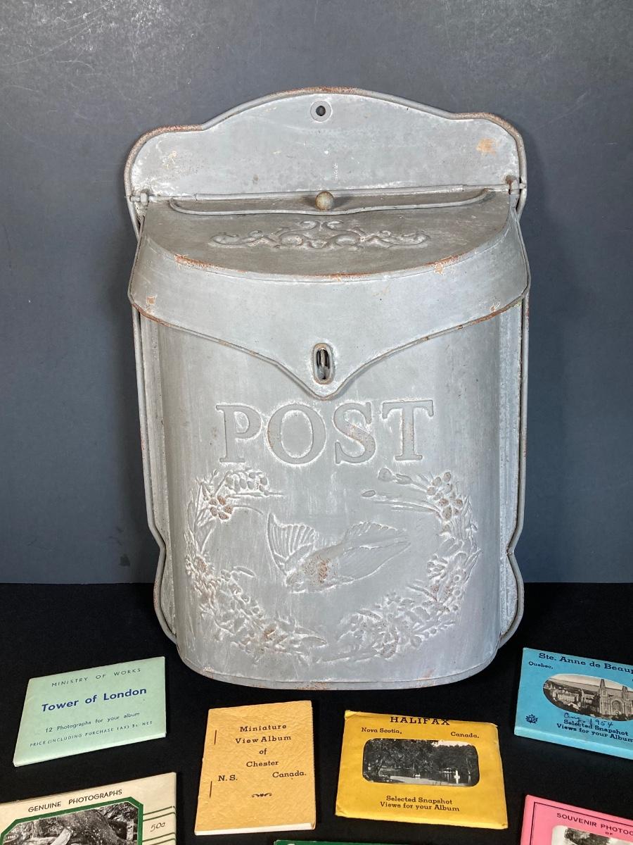 LOT 224: Vintage Postal Collection - Metal Hanging Post / Mail Box with Miniature Post Cards