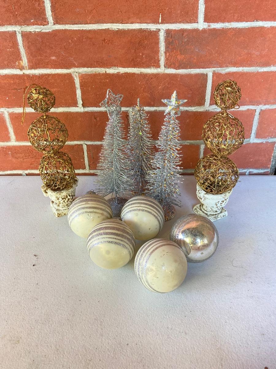 LOT 226: Christmas Ornaments / Decorations As Found (White / Silver / Gold Theme)