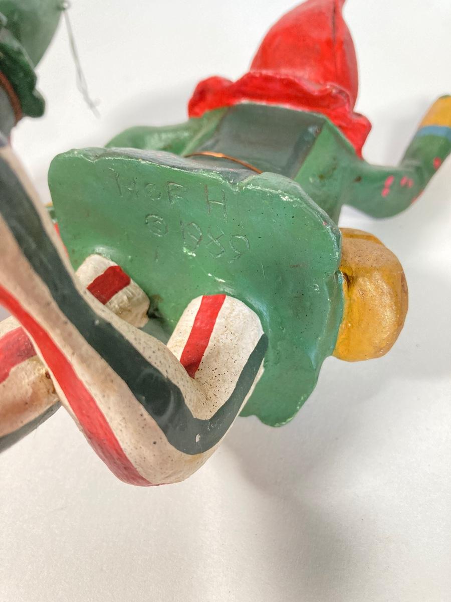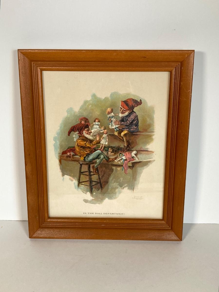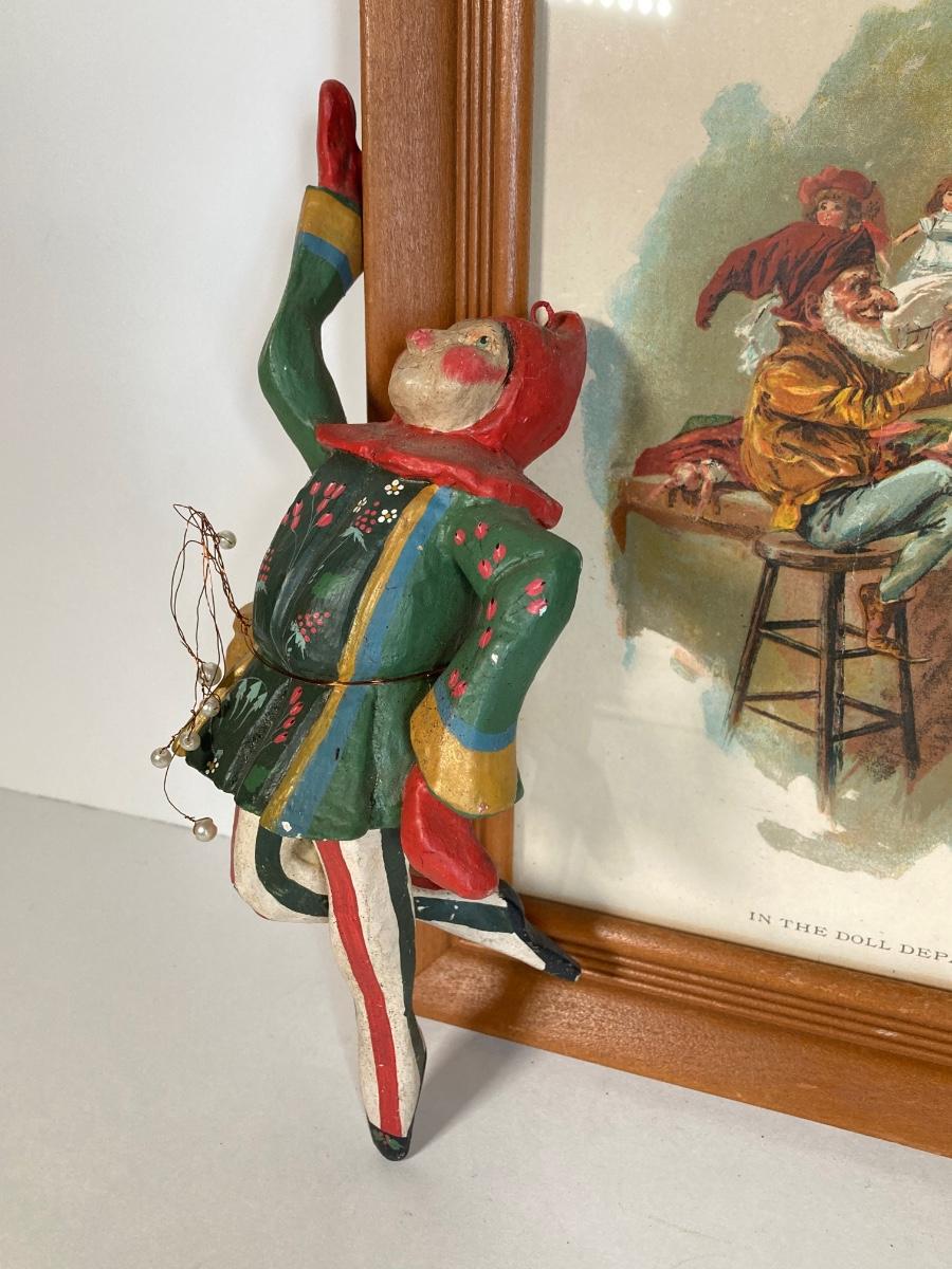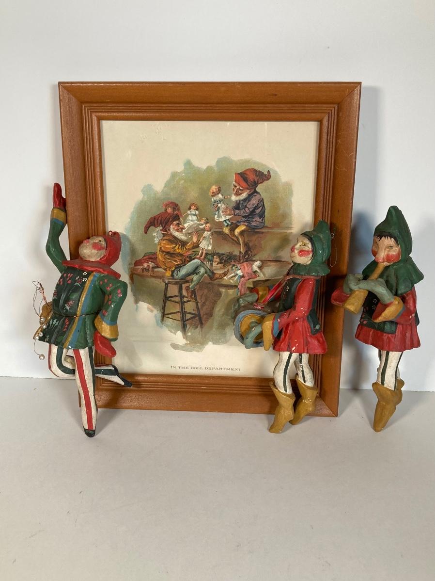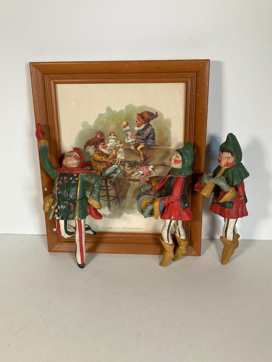 LOT 228: Antique / Vintage "In the Doll Department" Wall Hanging and Three House of Hatten Christmas Ornaments