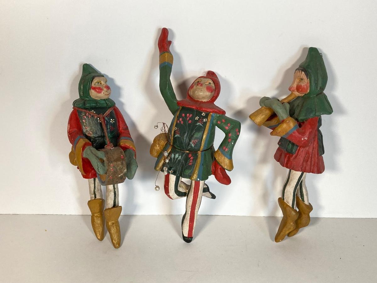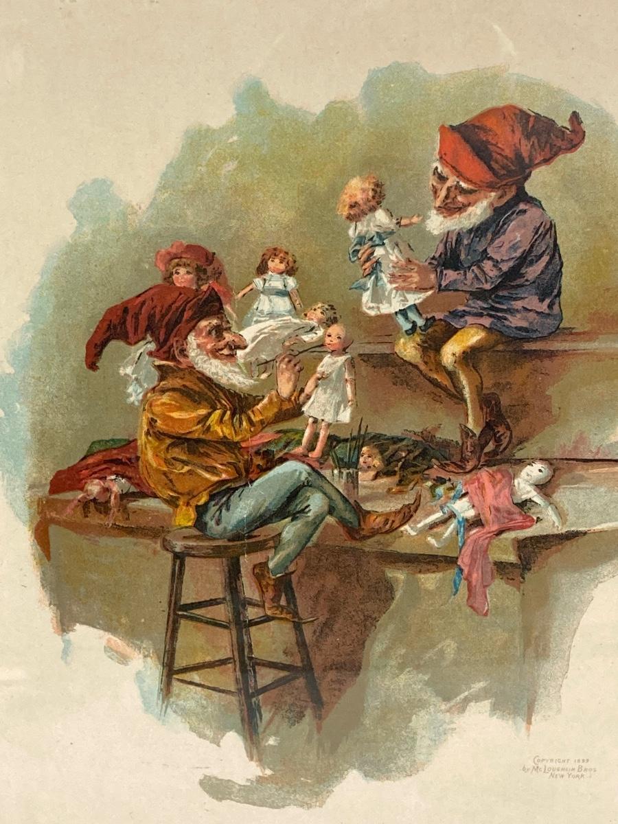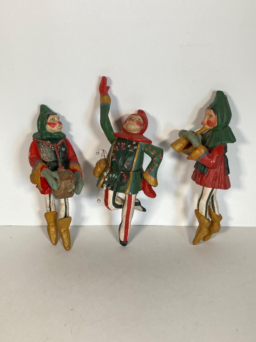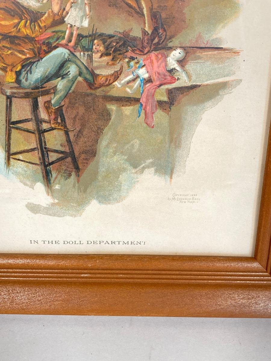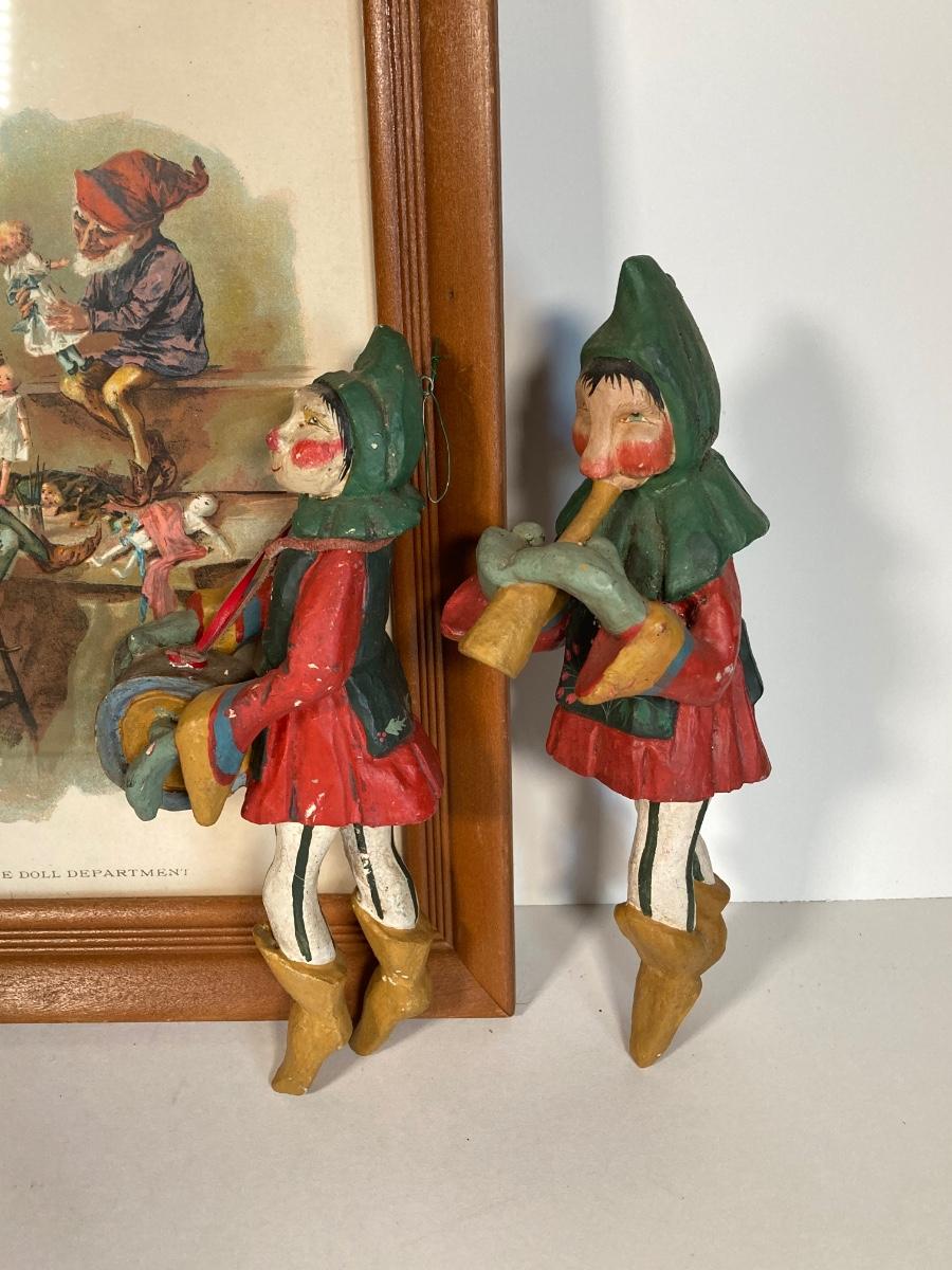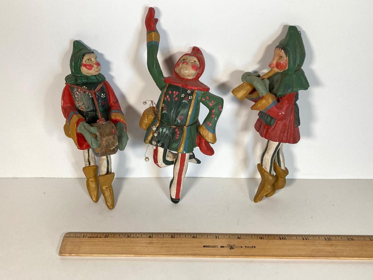 LOT 228: Antique / Vintage "In the Doll Department" Wall Hanging and Three House of Hatten Christmas Ornaments