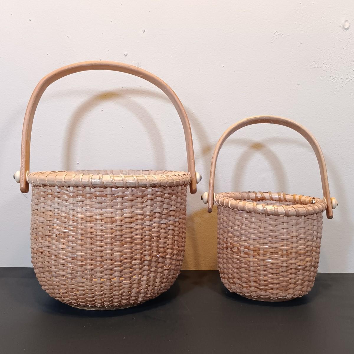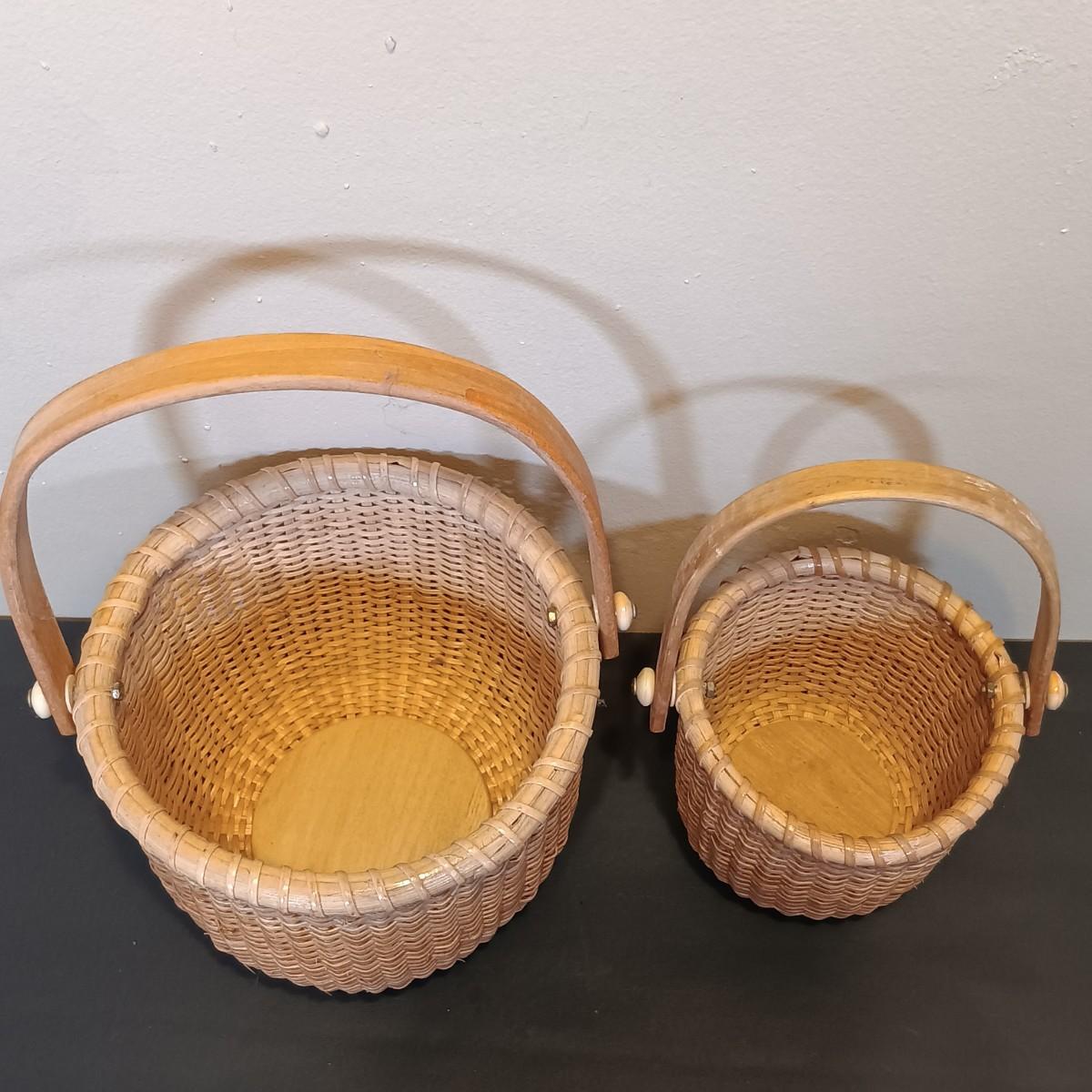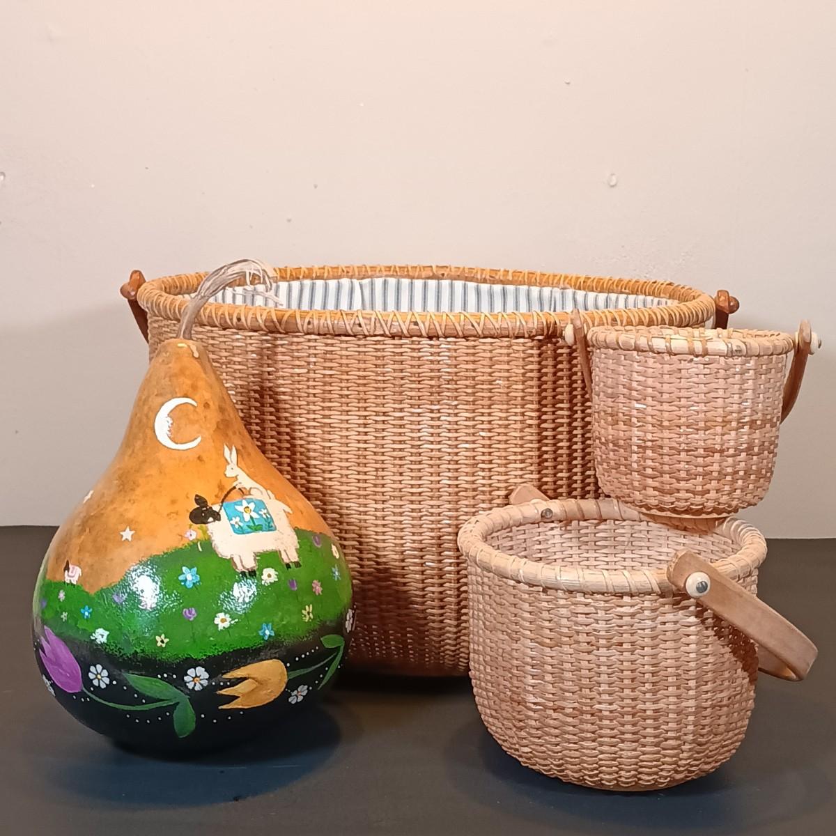 LOT 244: Set of 3 Nantucket Baskets with Handpainted Gourd