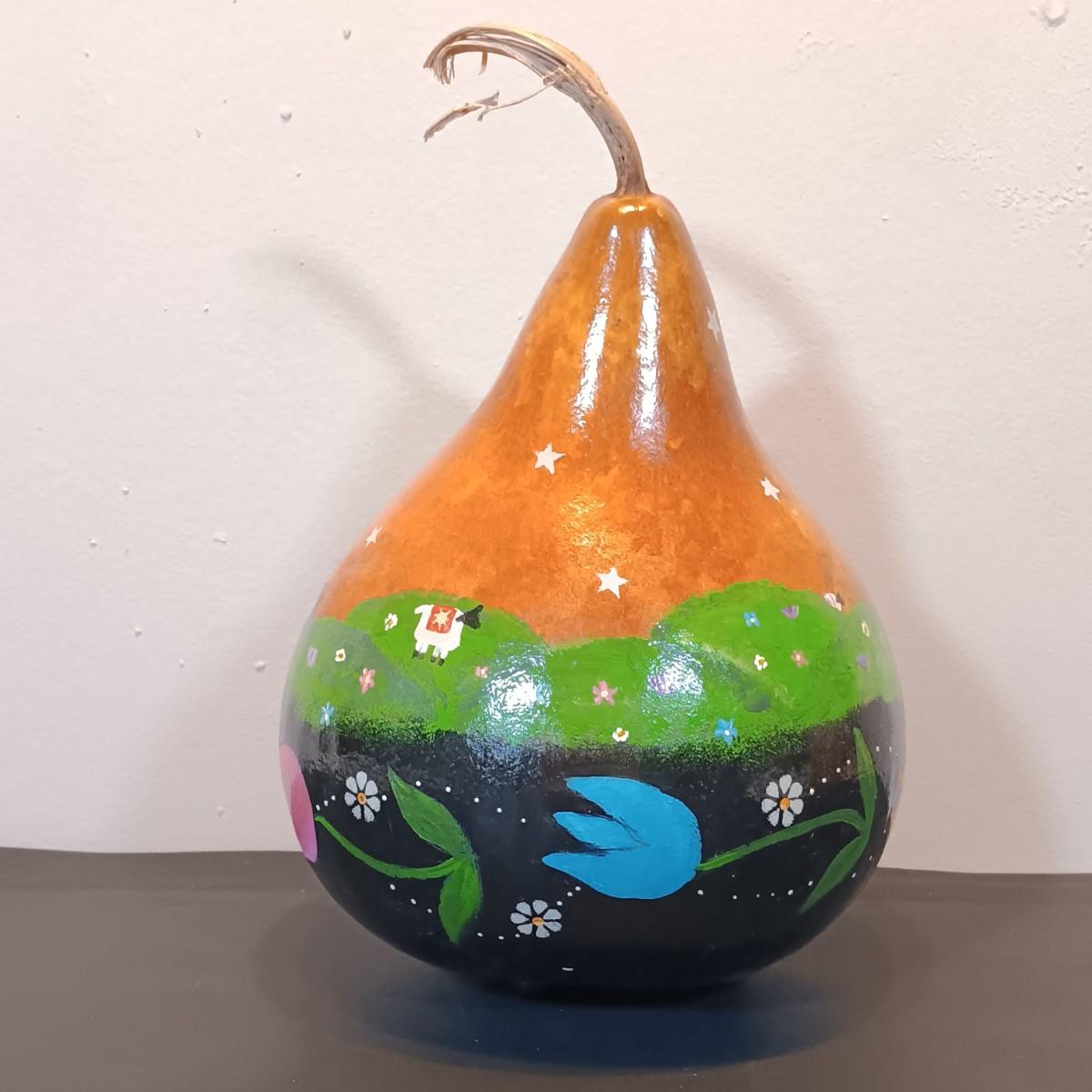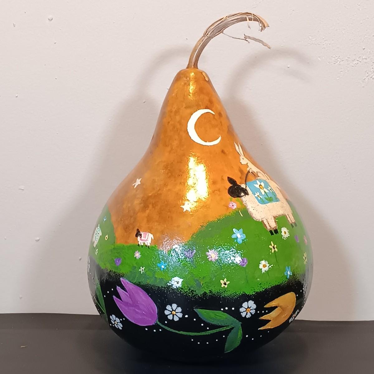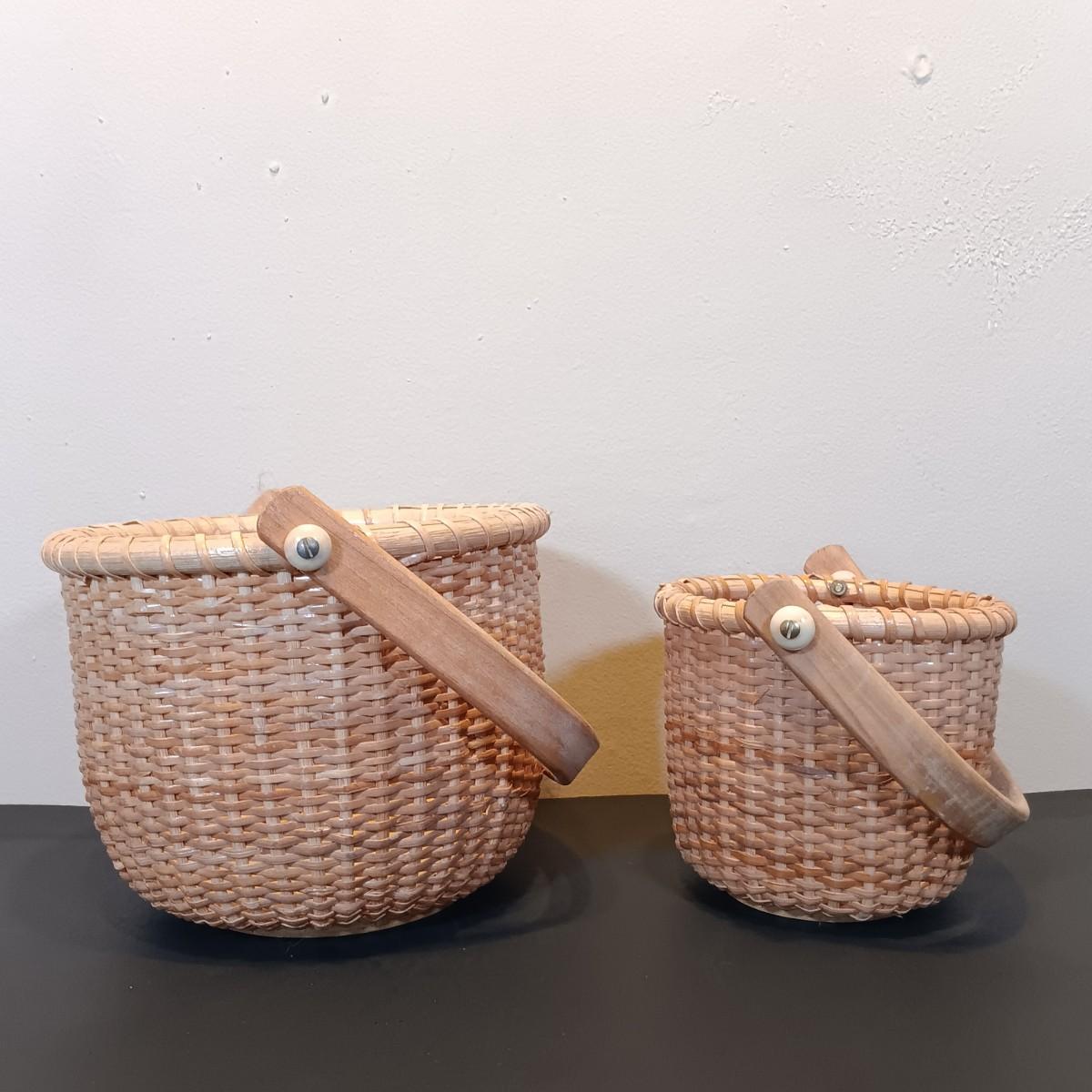 LOT 244: Set of 3 Nantucket Baskets with Handpainted Gourd