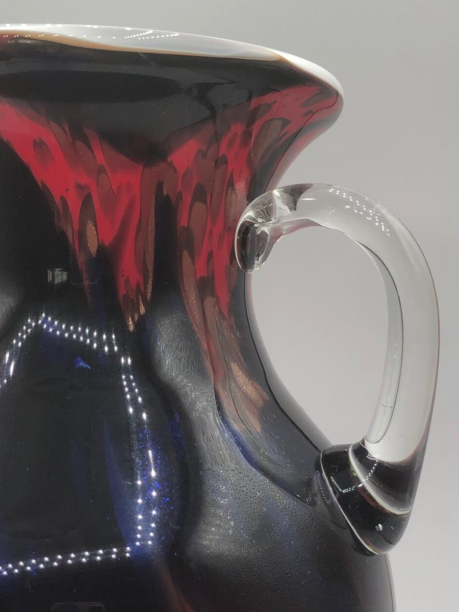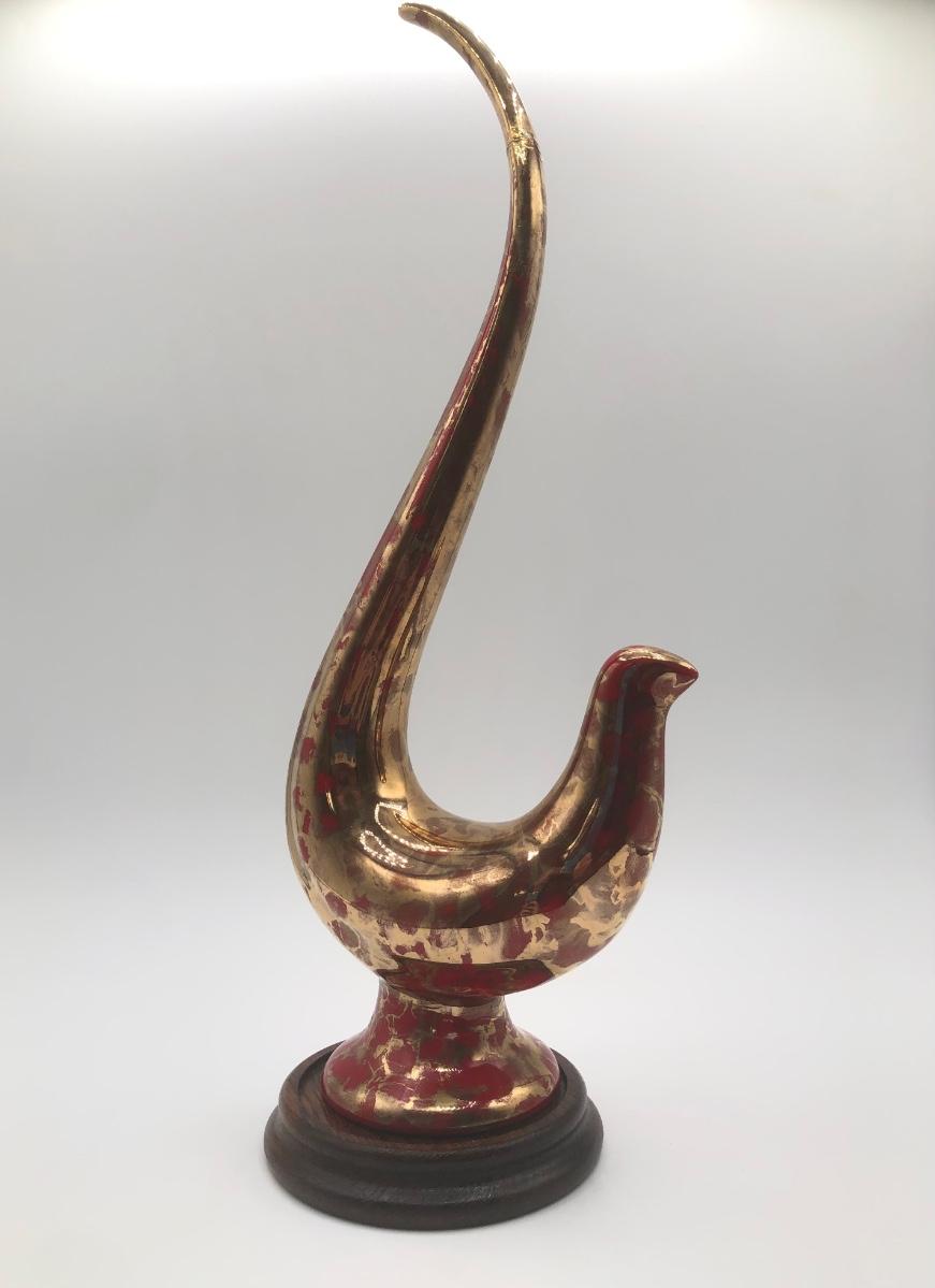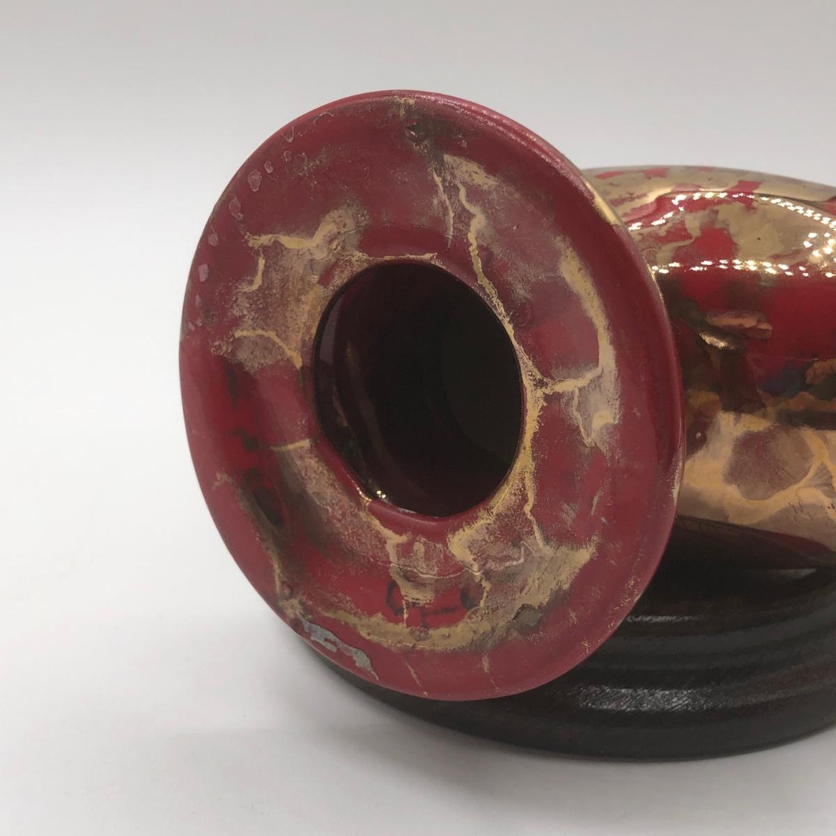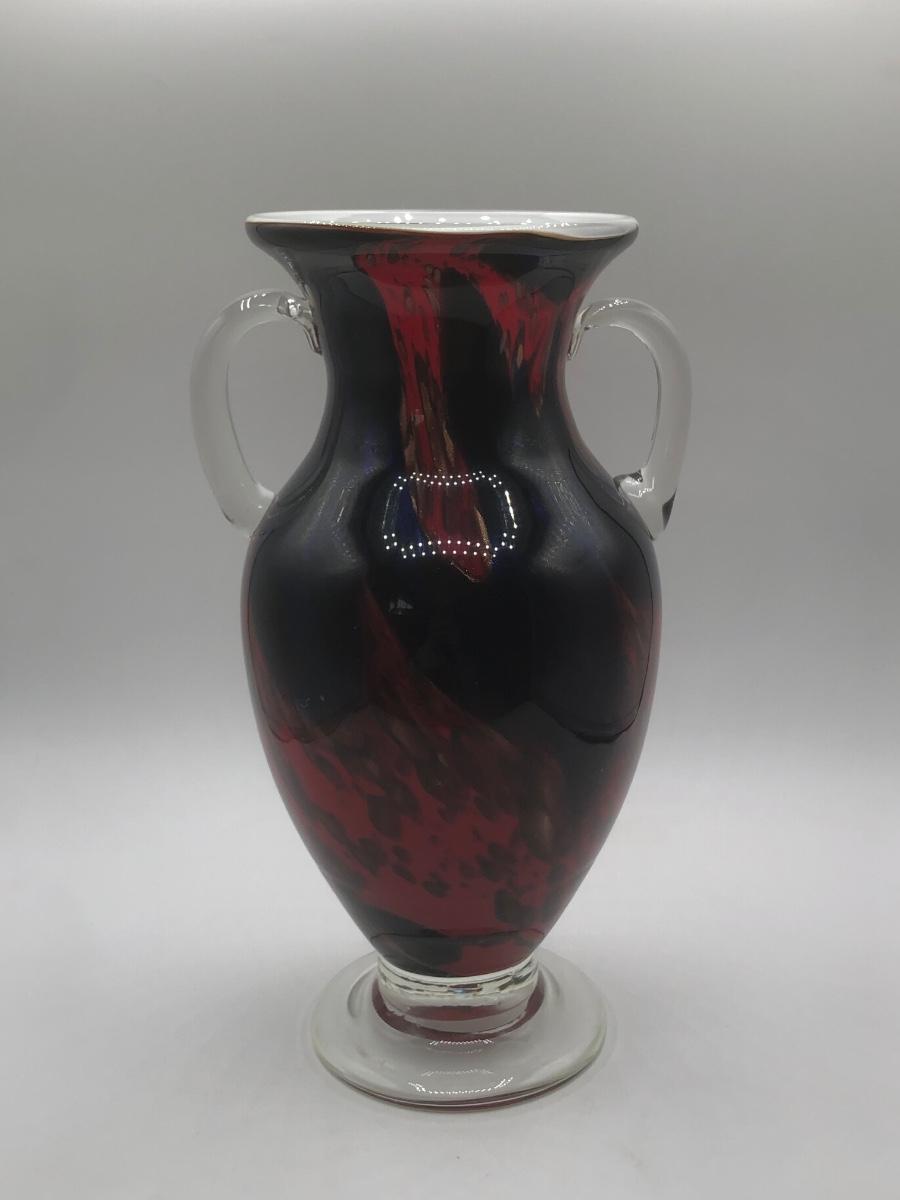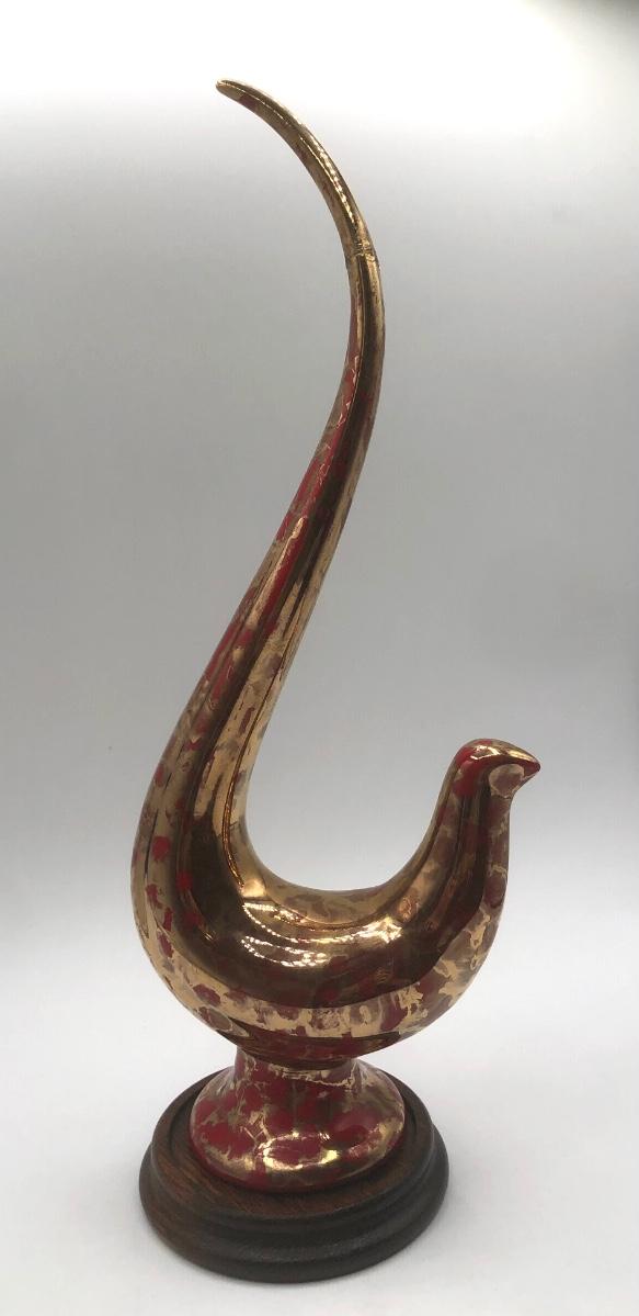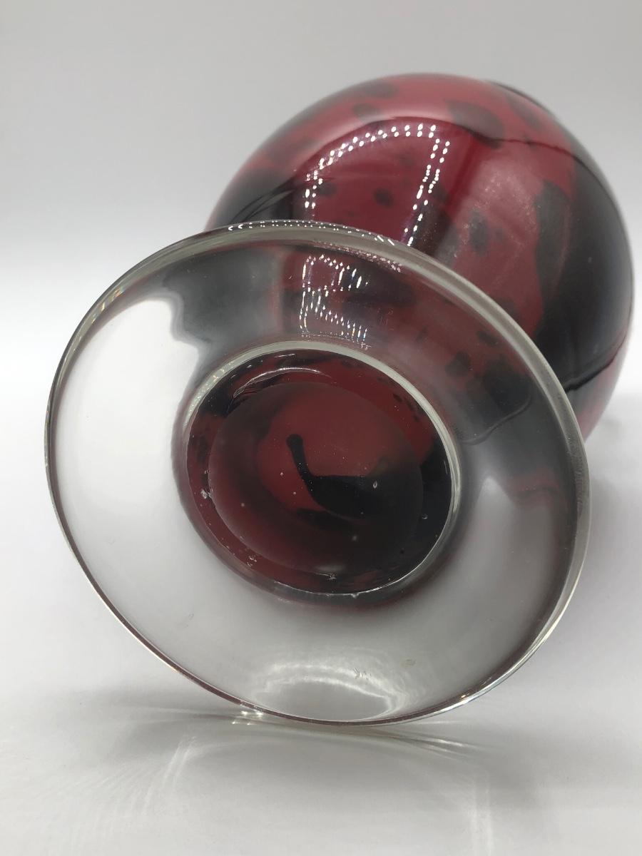 LOT 3K: Andrea by Sadek Ceramic Red & Gold Bird Sculpture, Murano Style Urn Art Glass Vase & Red/Clear Glass Decanter