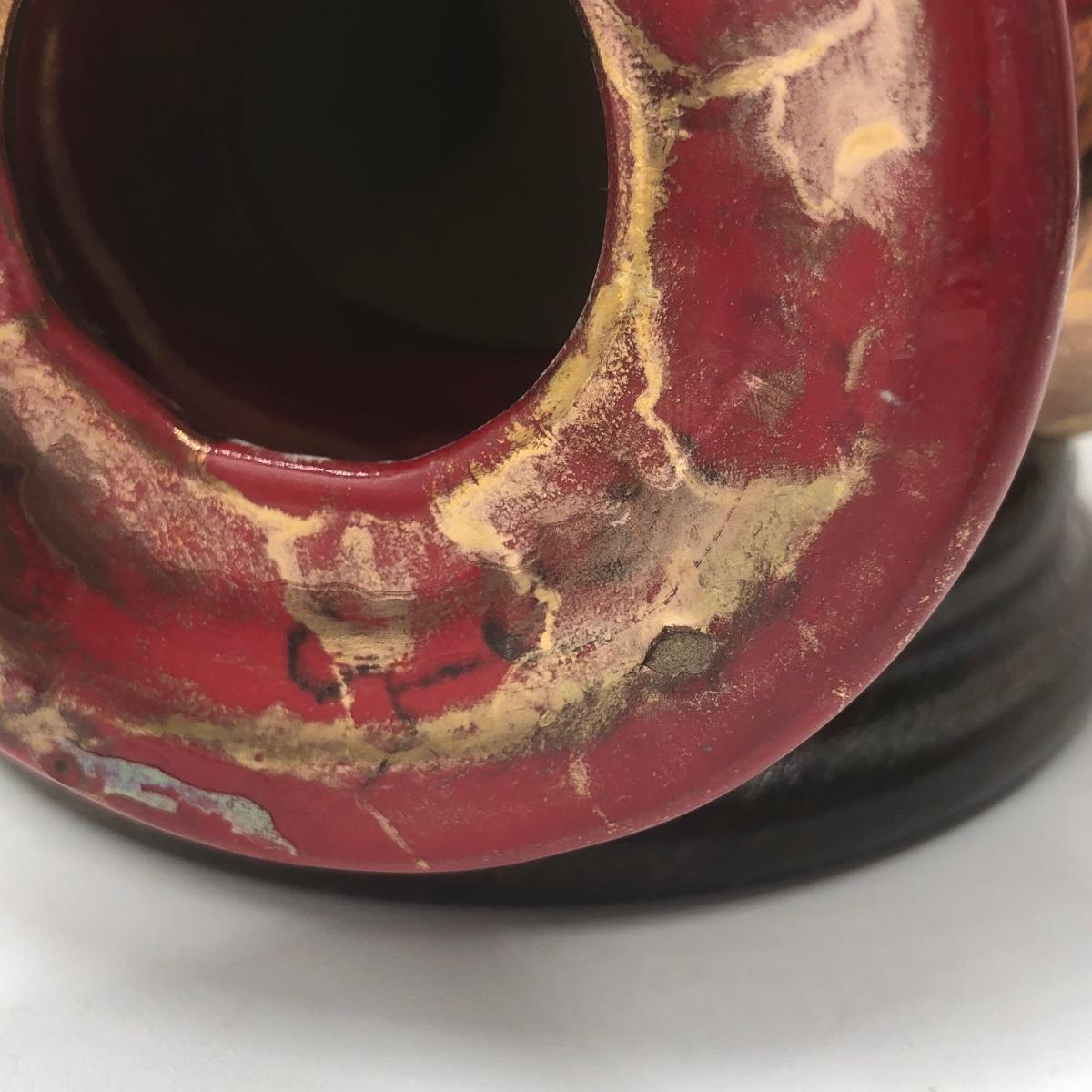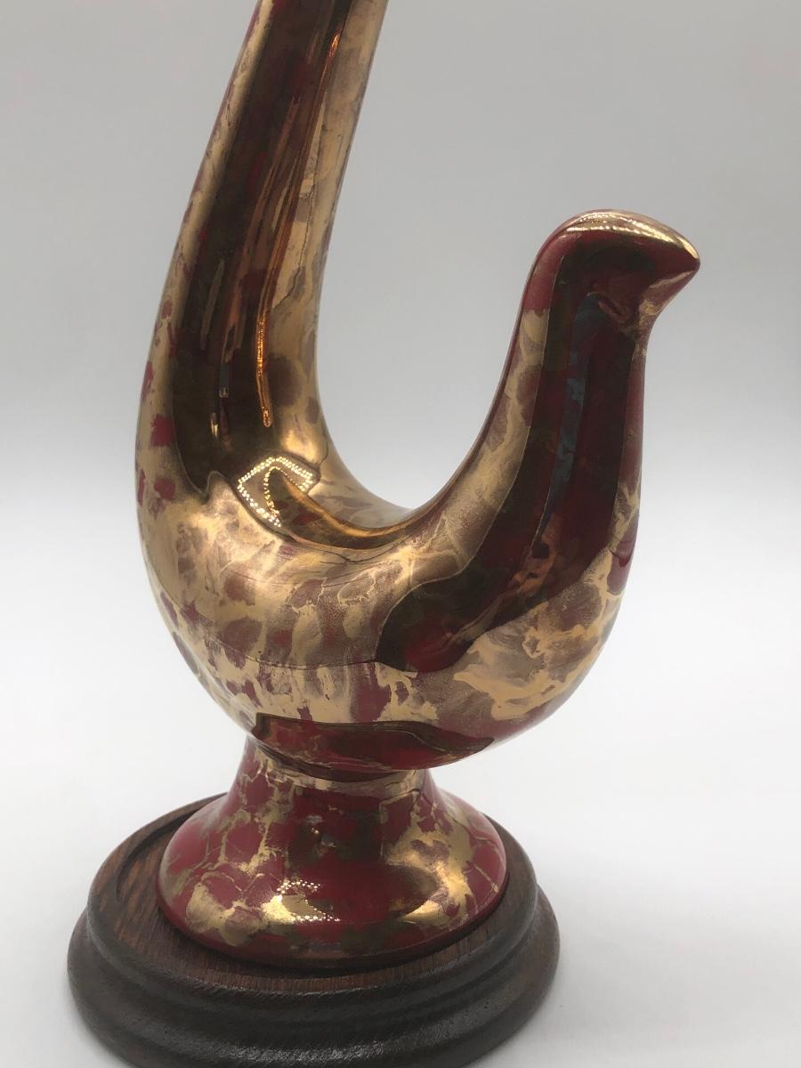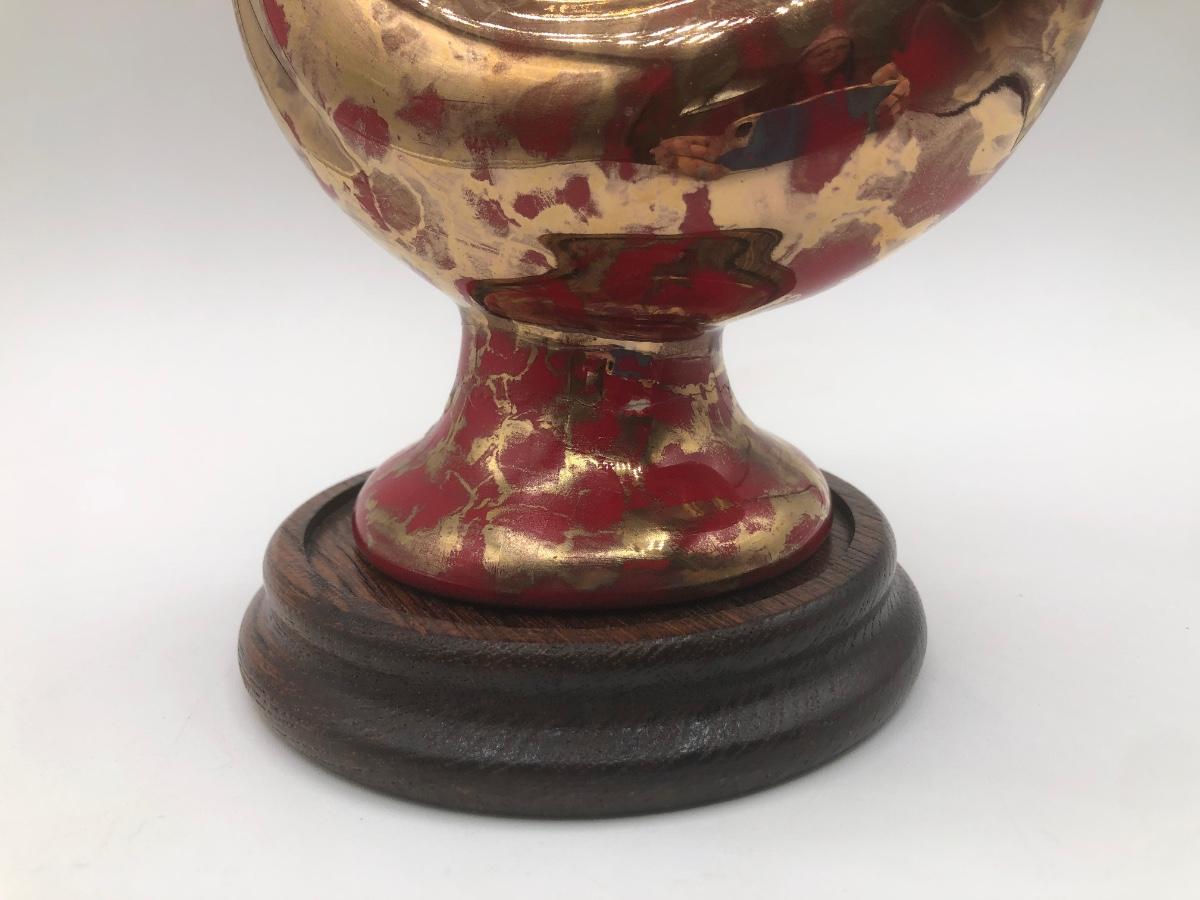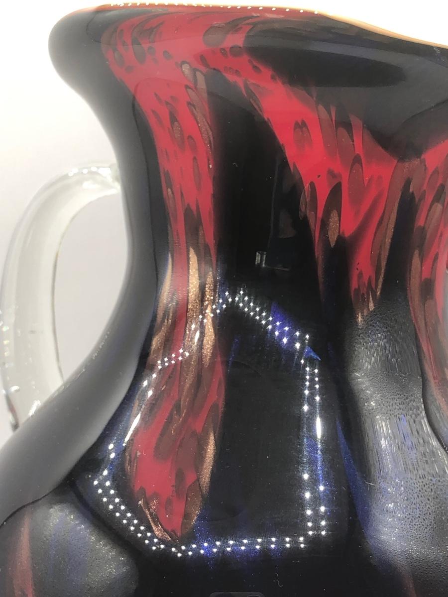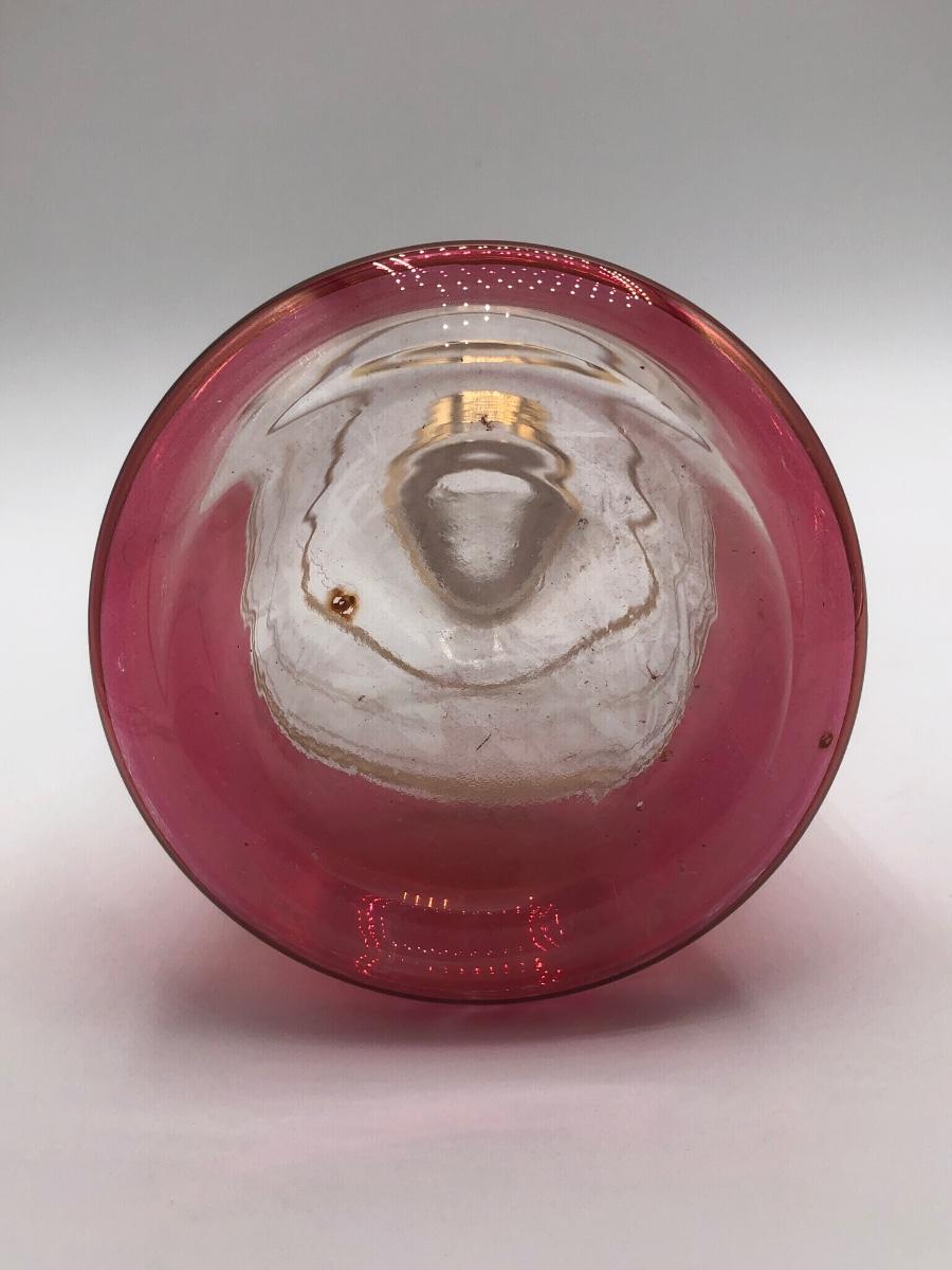 LOT 3K: Andrea by Sadek Ceramic Red & Gold Bird Sculpture, Murano Style Urn Art Glass Vase & Red/Clear Glass Decanter