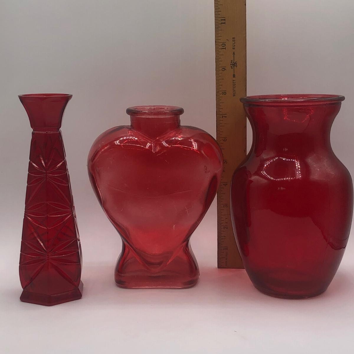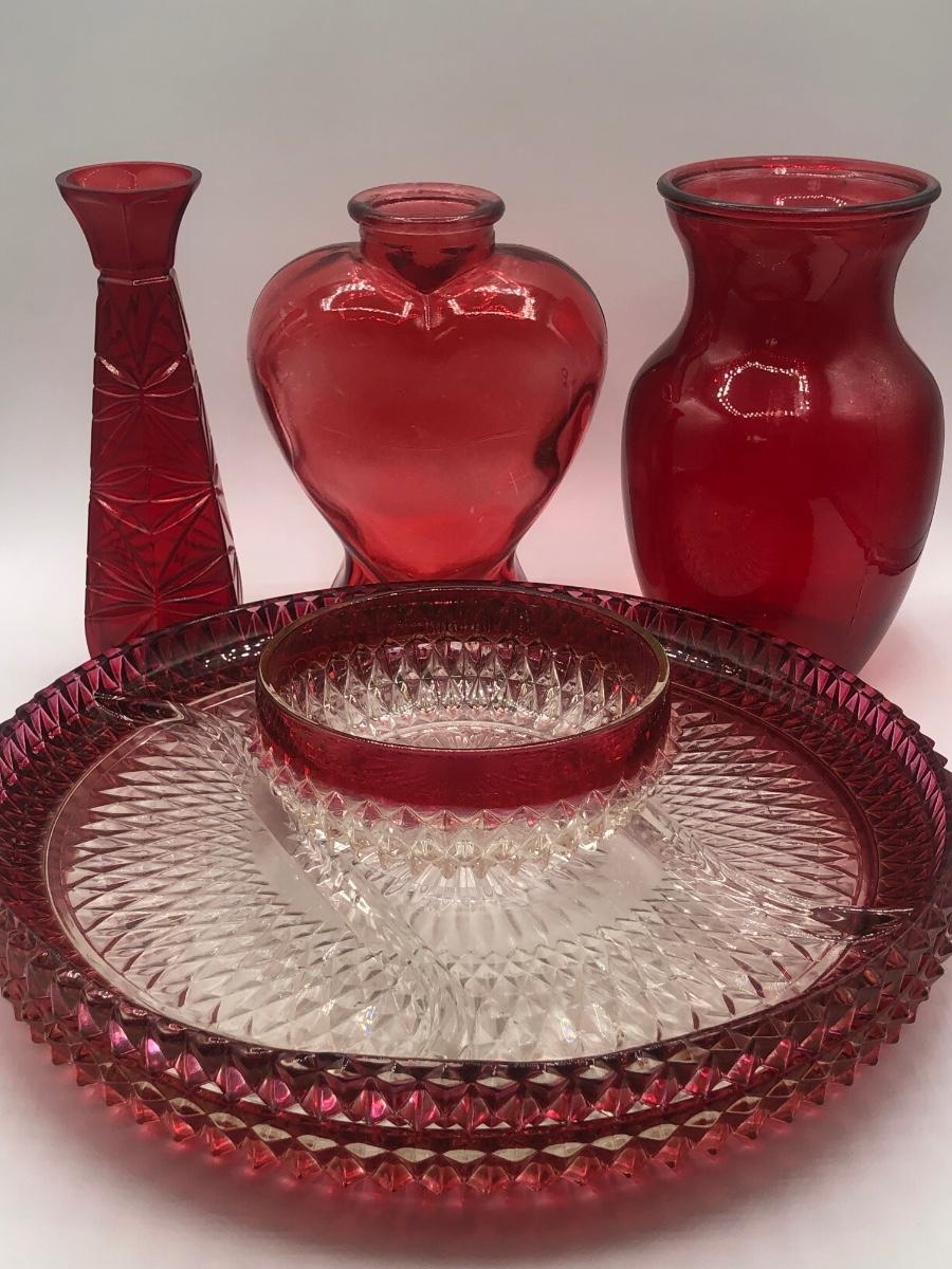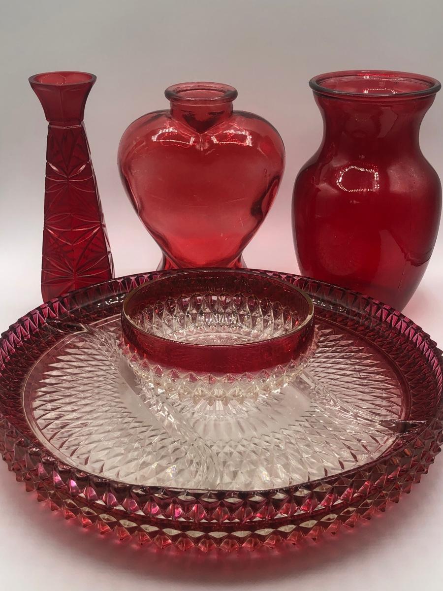 LOT 8K: Ruby Red Collection - Glass Vases & Crystal Serving Trays