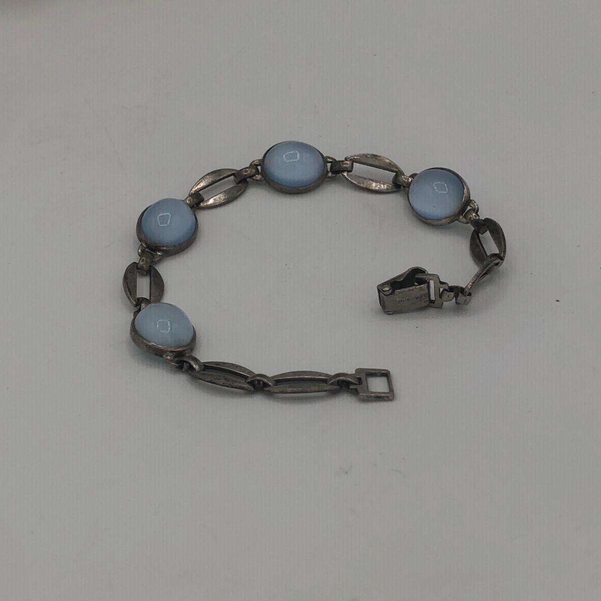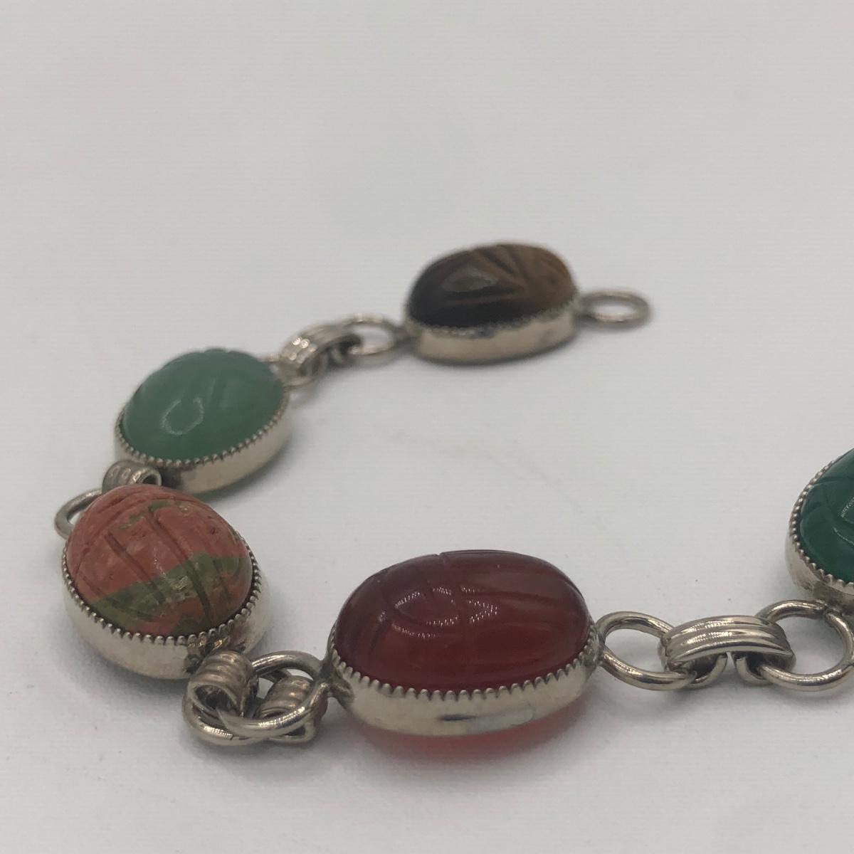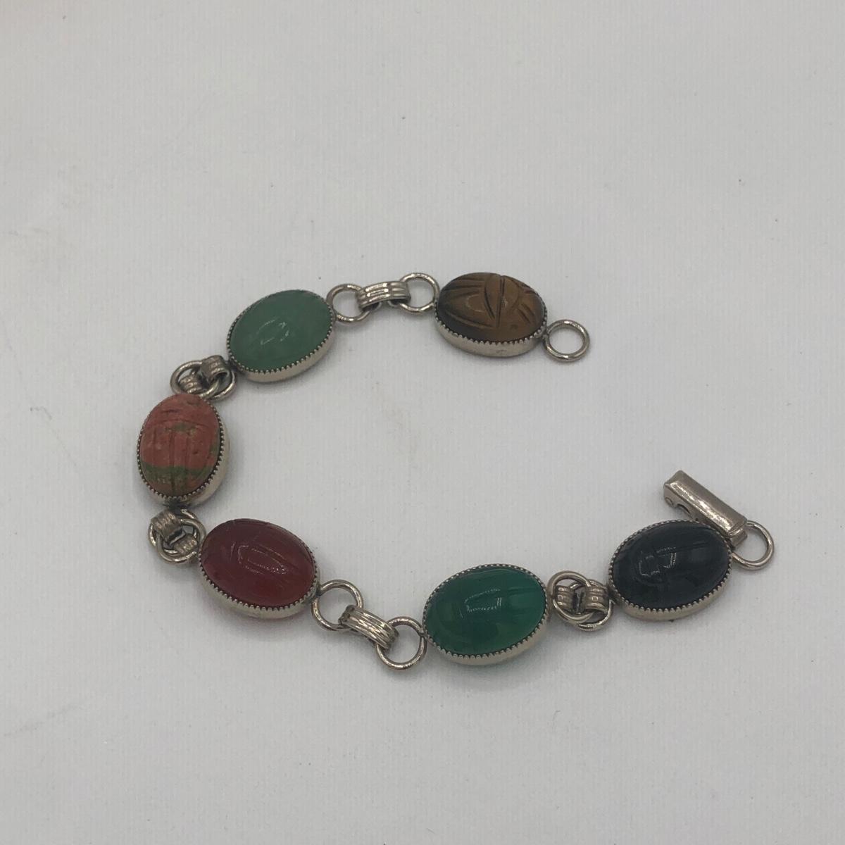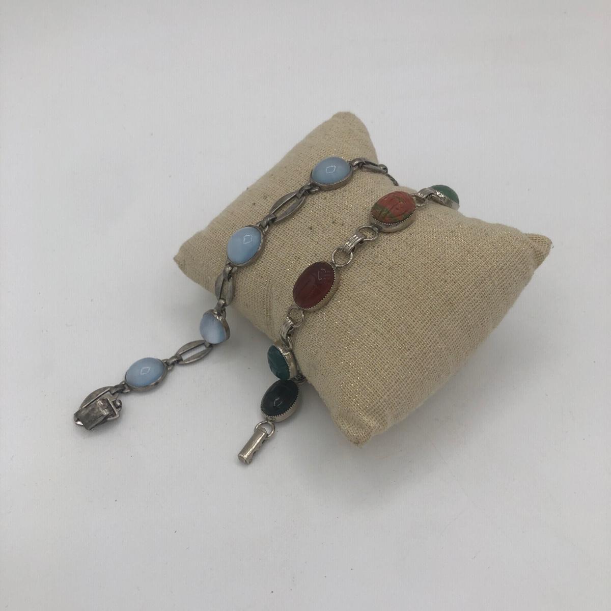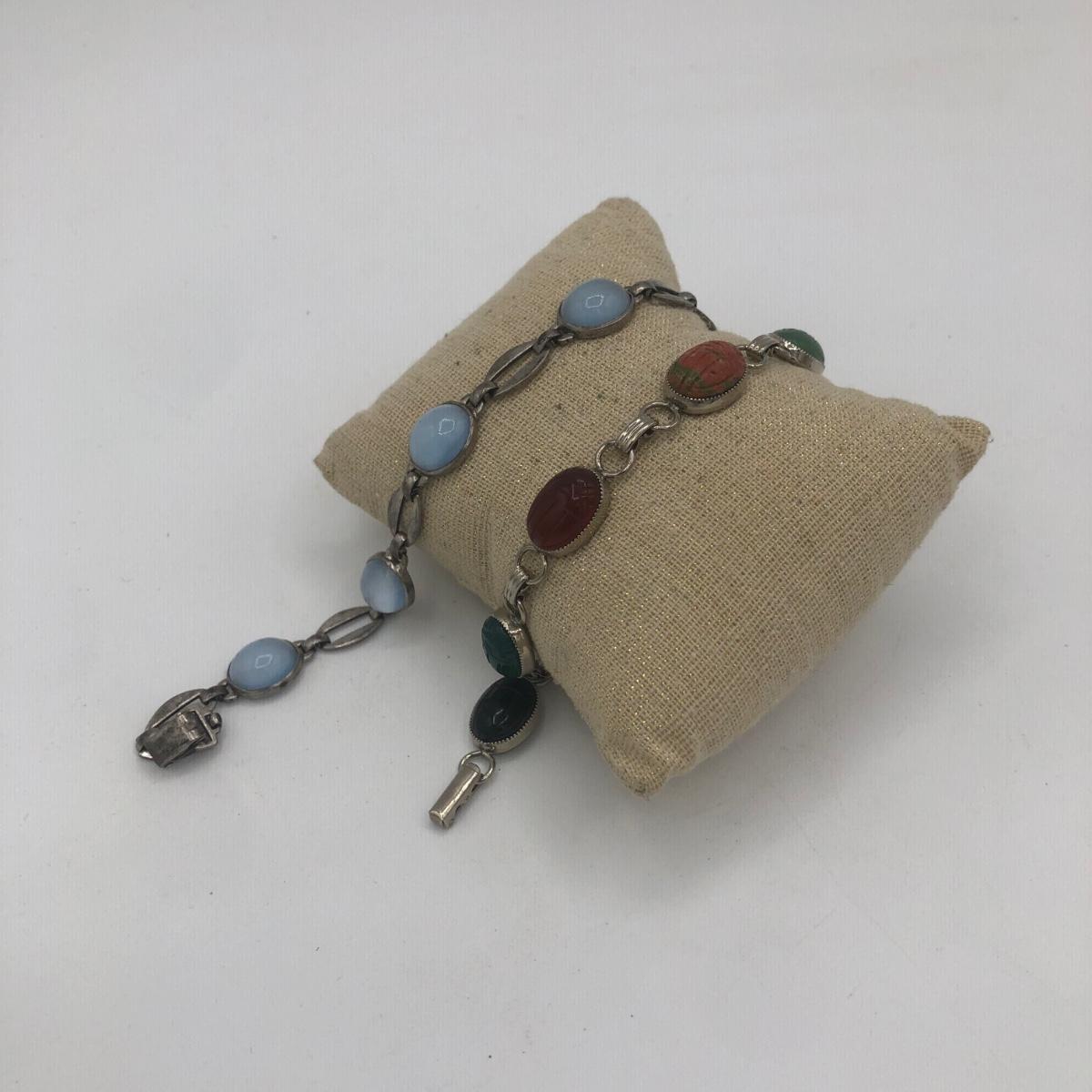 LOT 12J: Vintage WE Richards Sterling Silver Moonstone Link Bracelet and A Sterling Silver Semi Precious Gemstome Scarab Bracelet