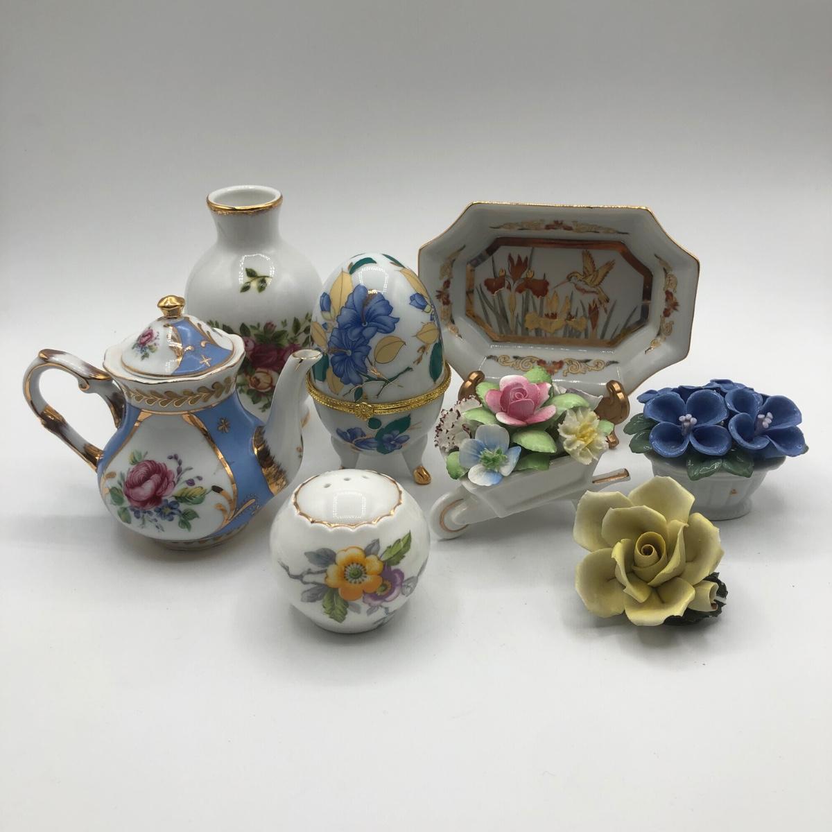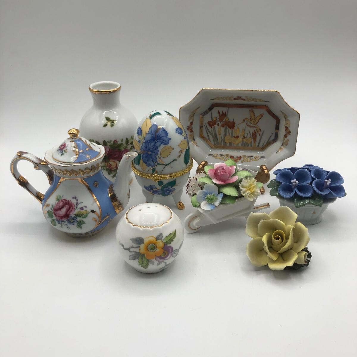 LOT 26K: Miniature China Collection - Golden Brocade, Royal Doulton, Enesco, Victoria's Garden & More