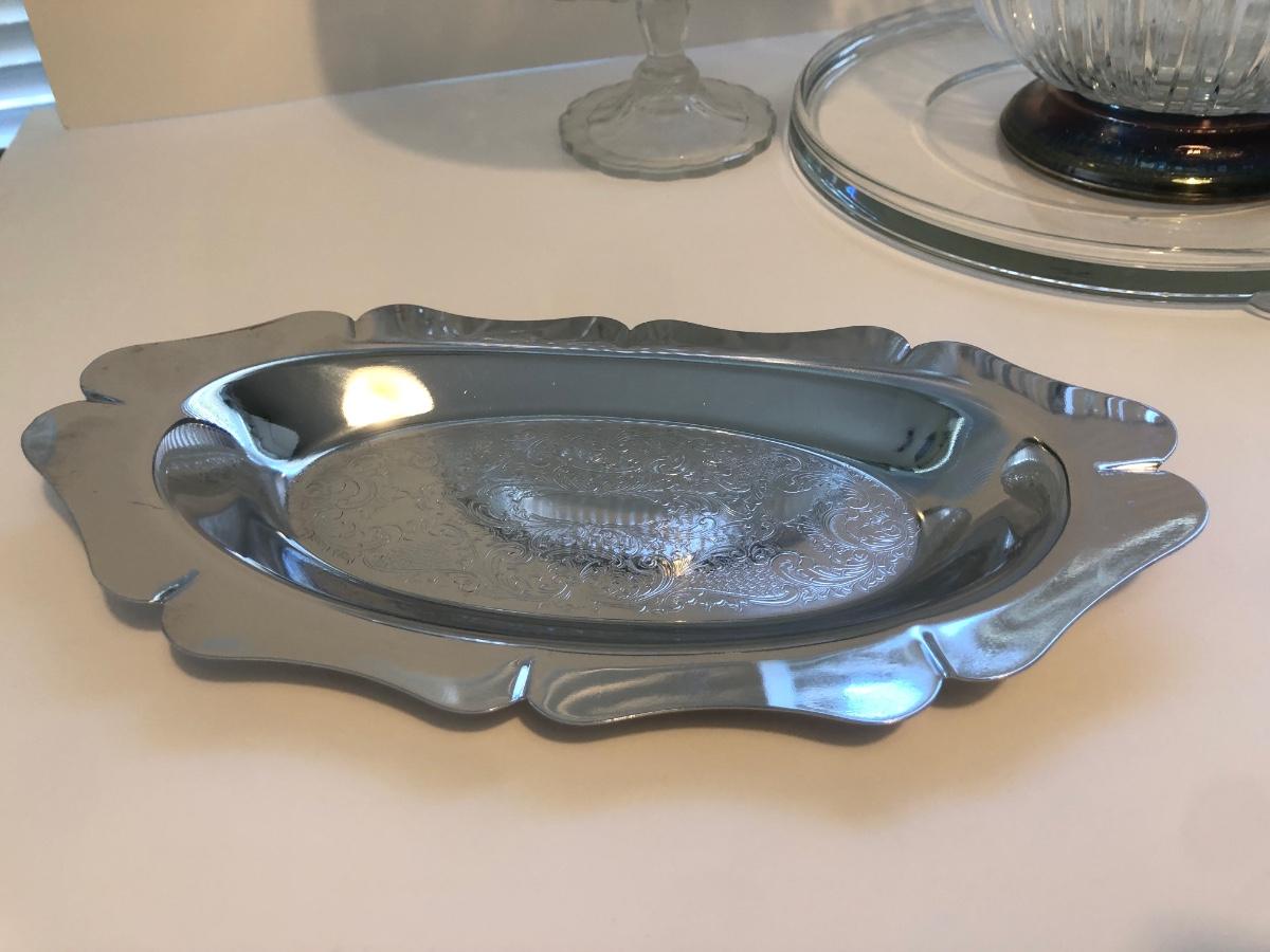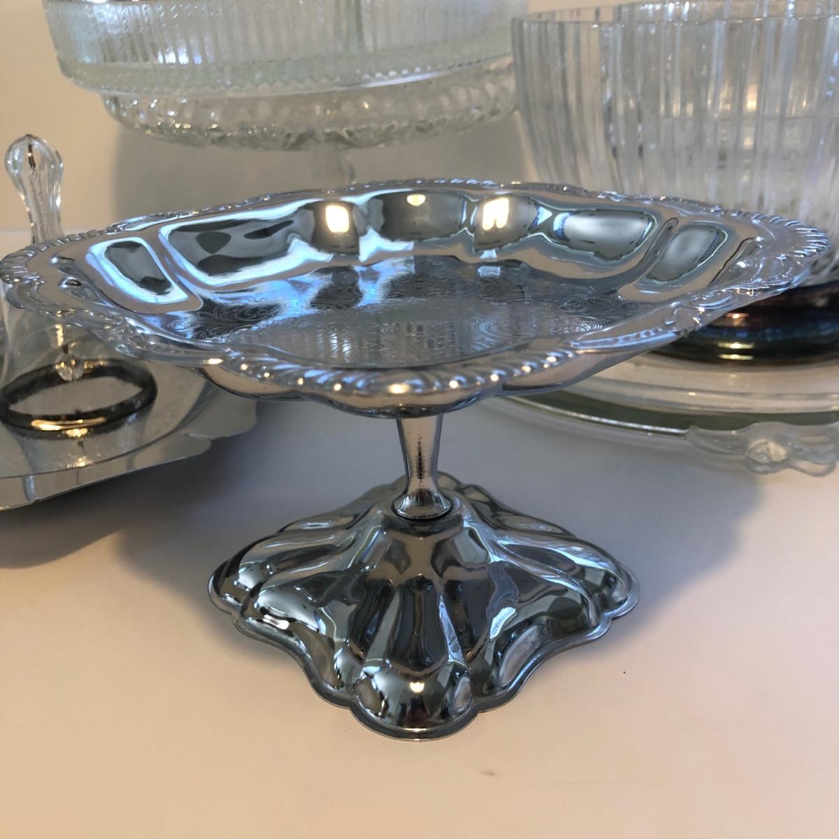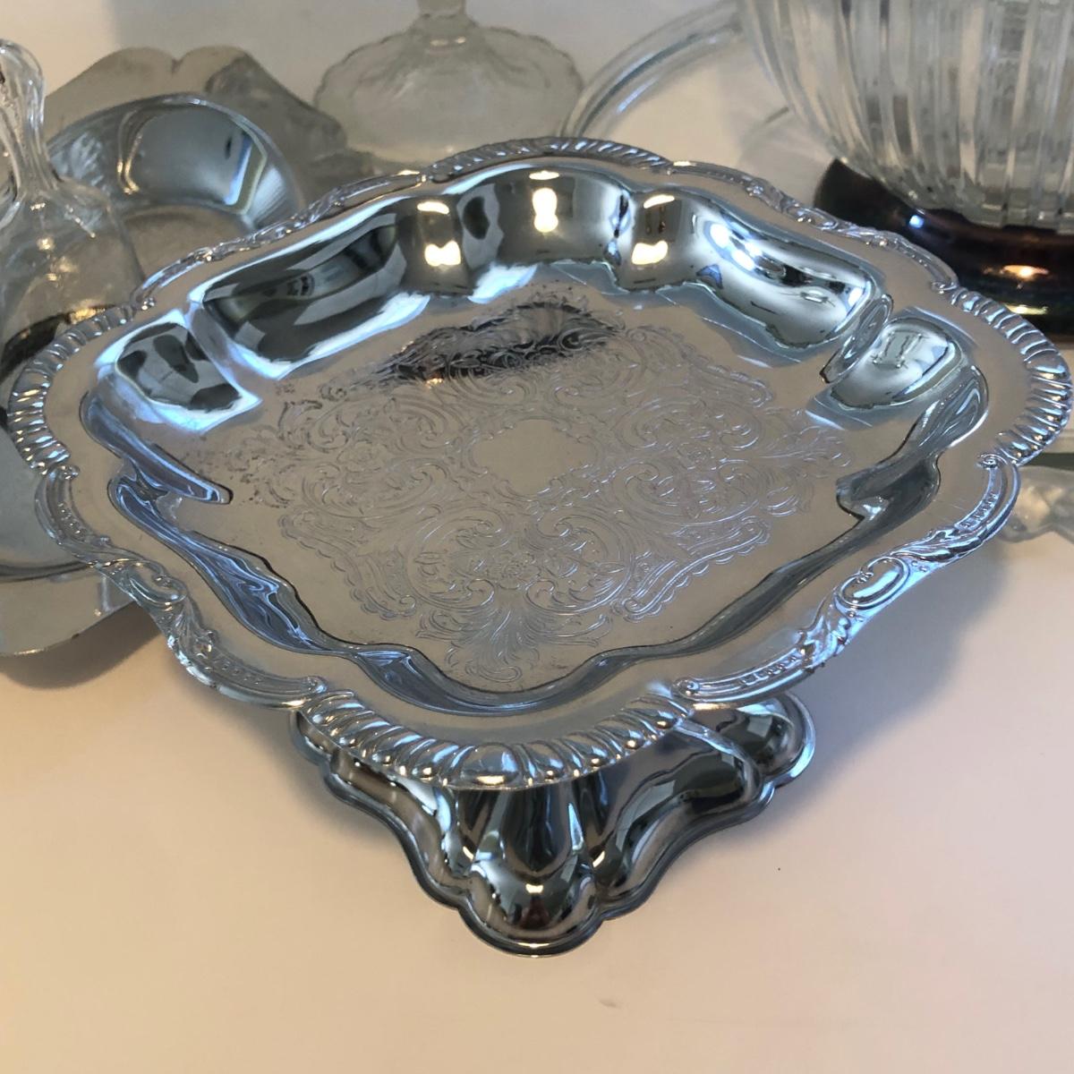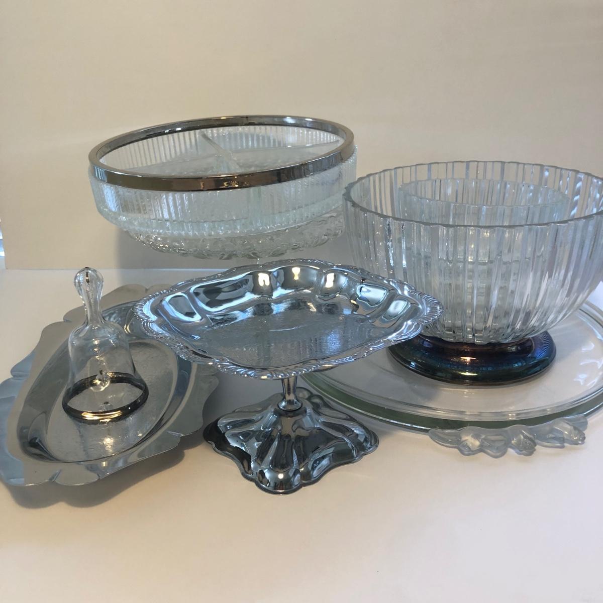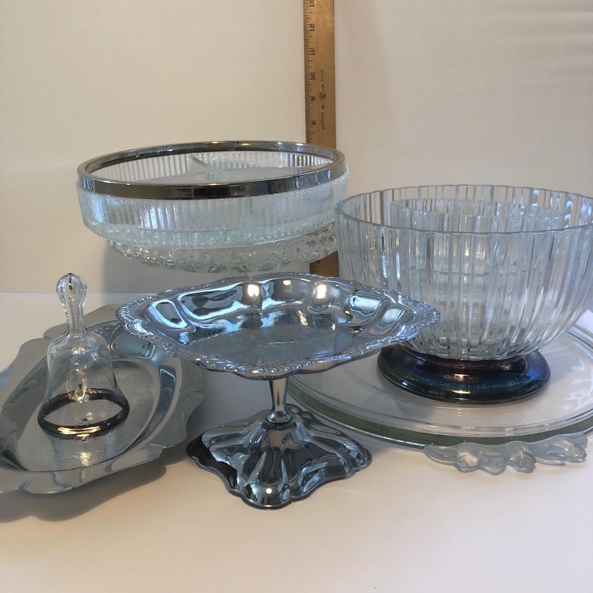 LOT 27K: Mikasa Crystal Rose Platter, Ribbed Bowl w/ Metal Base, Crystal Pedestal Cake Plate & More