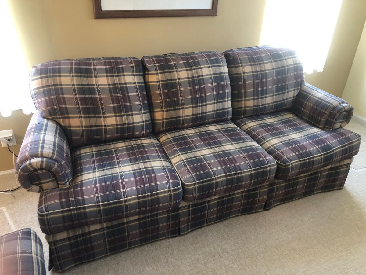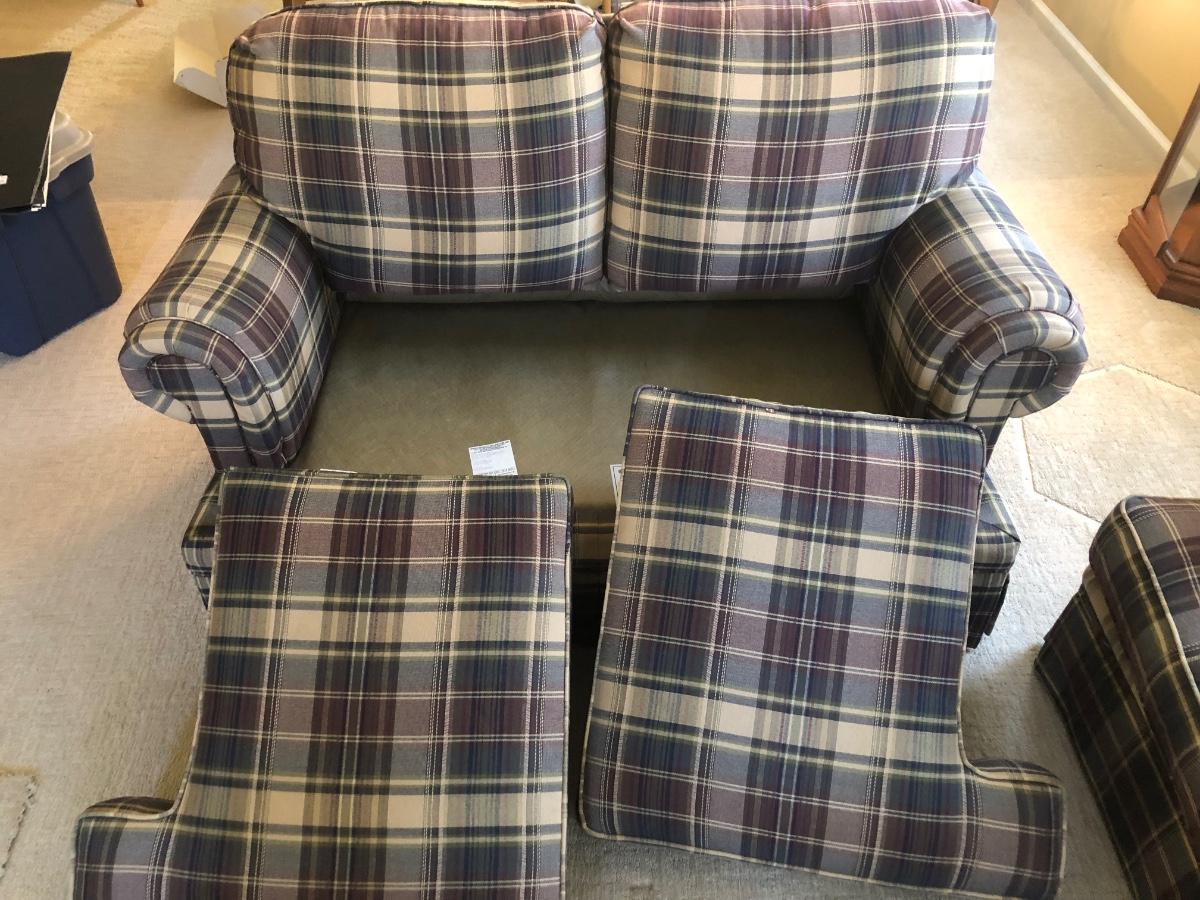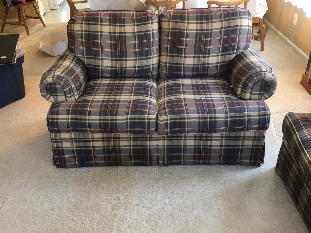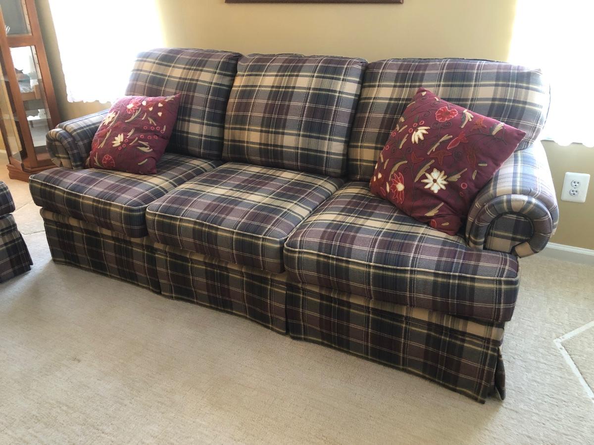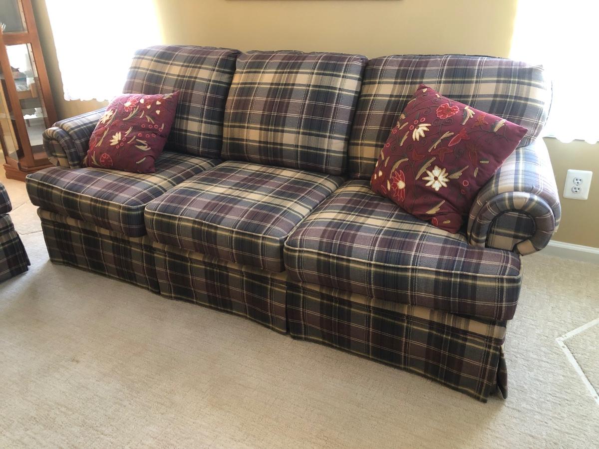 LOT 32L: Broyhill Furniture Plaid Sofa & Loveseat