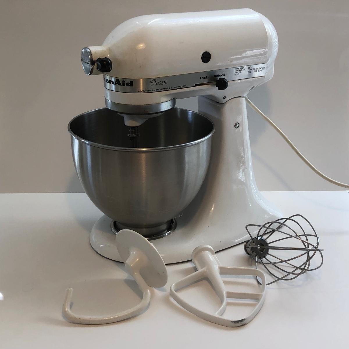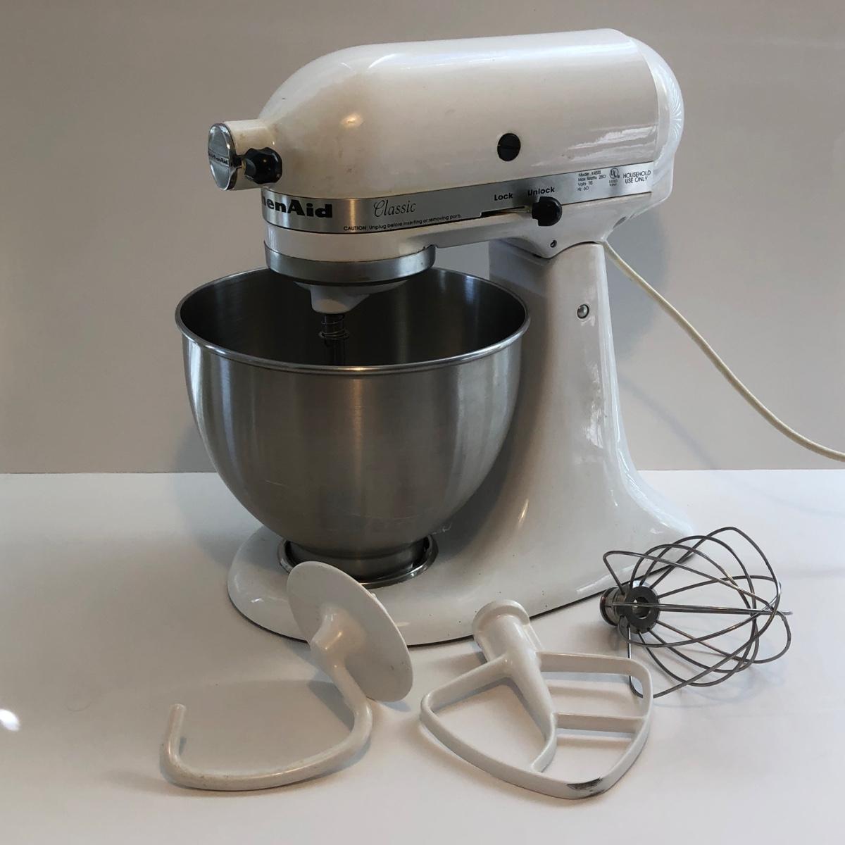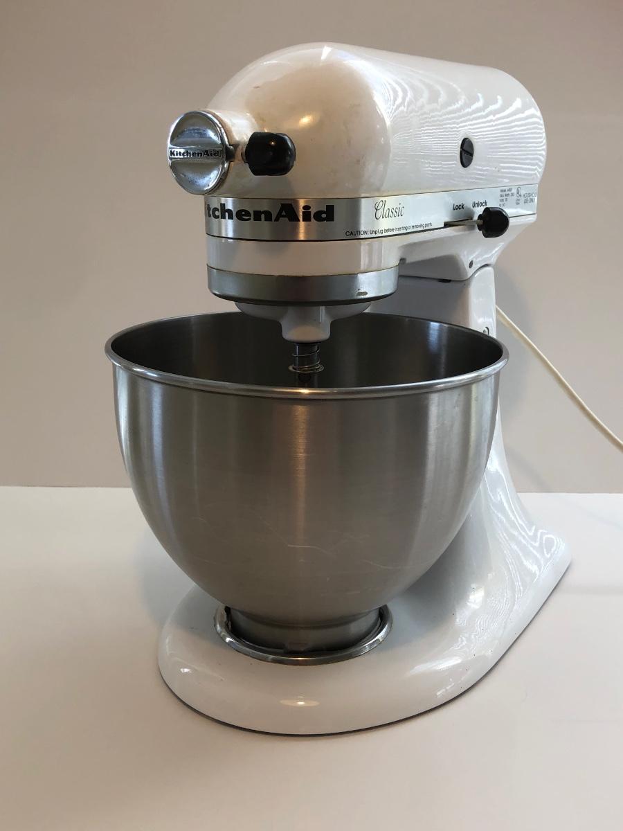 LOT 40K: KitchenAid Classic Stand Mixer Model K45SS w/ 3 Attachments