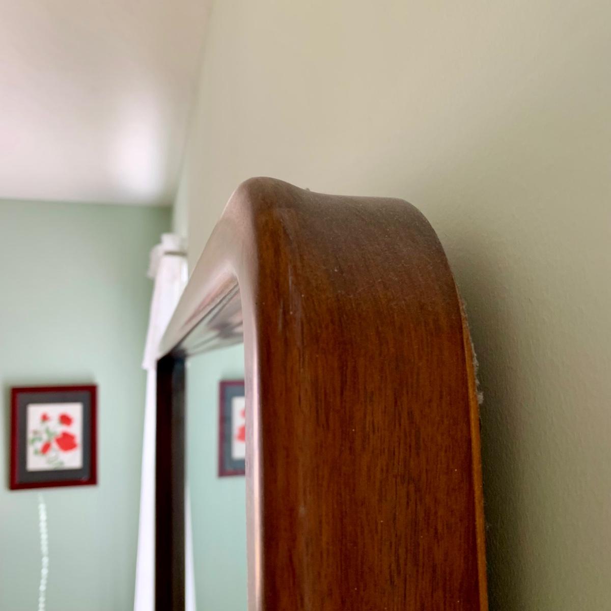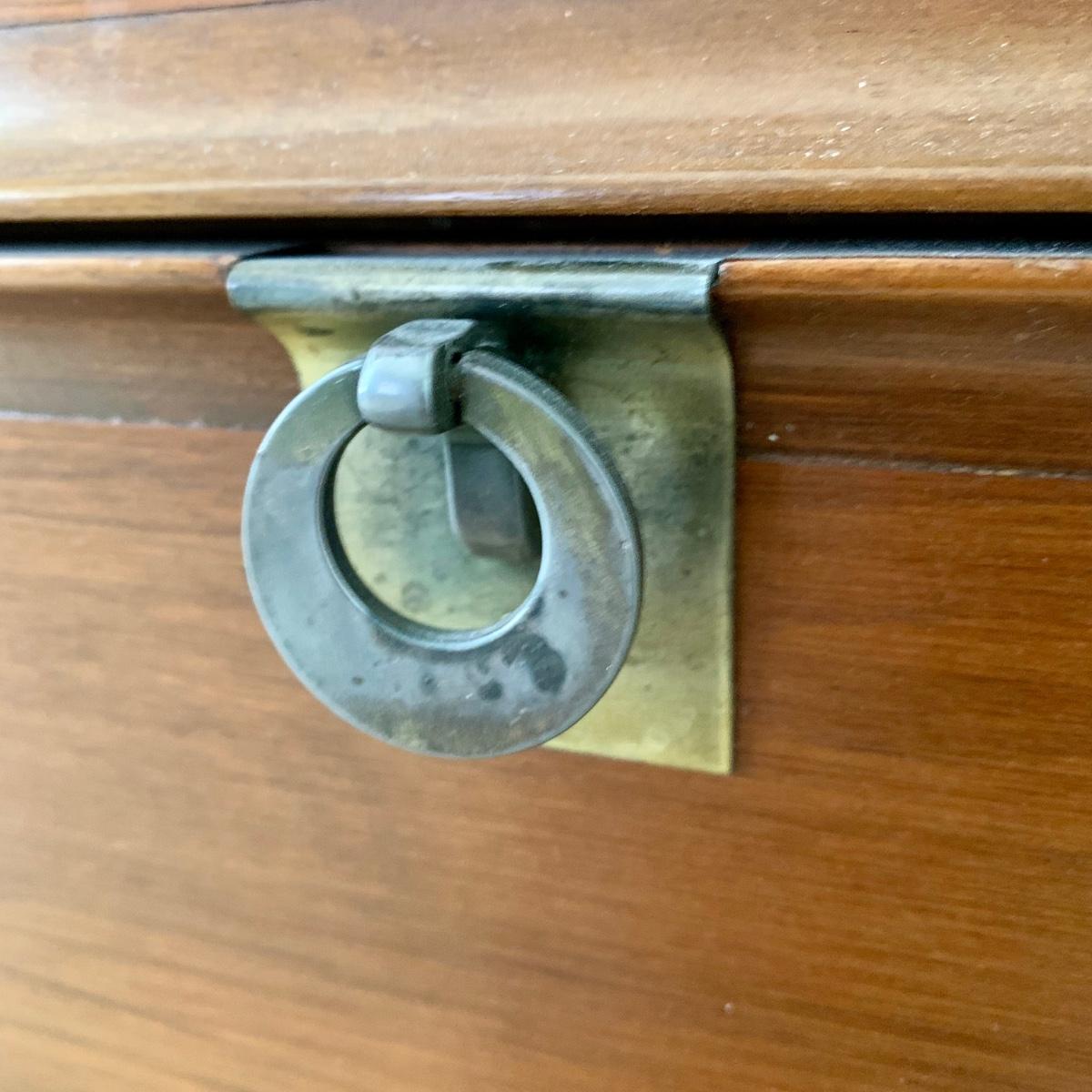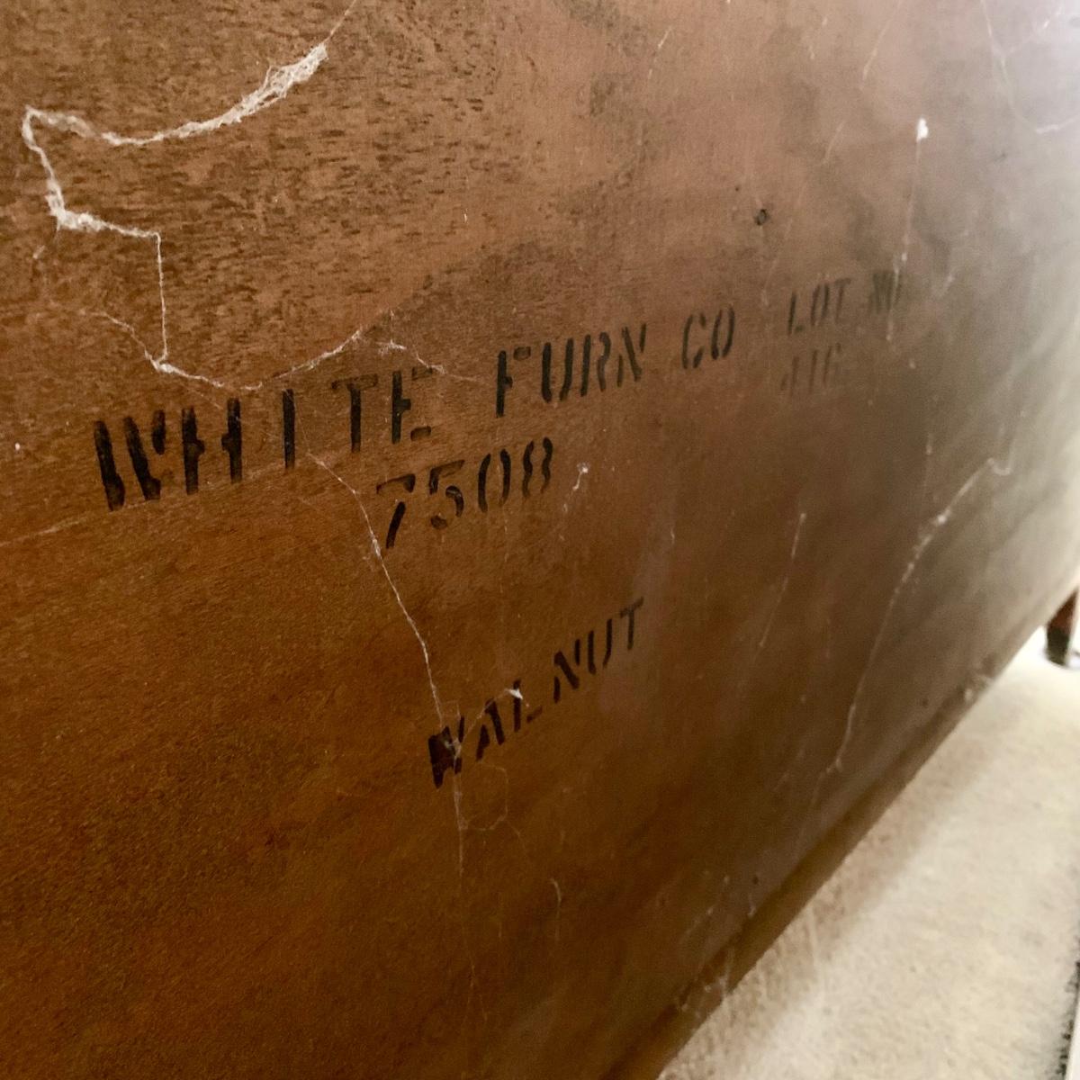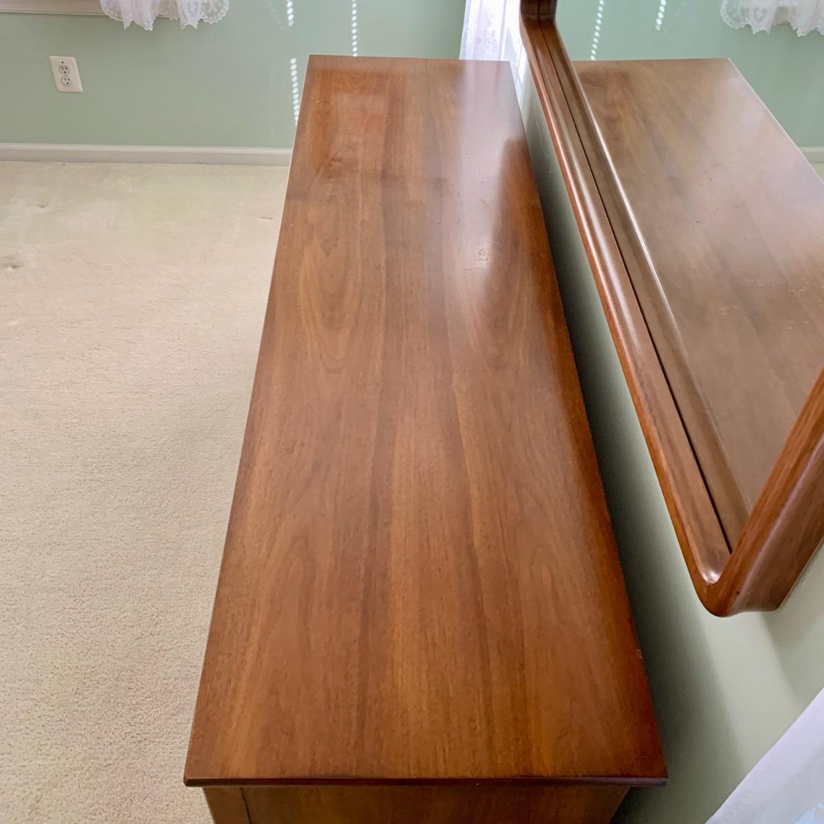 LOT 41 M: Vintage White Furniture Co. MCM 12 Drawer Walnut Dresser With Brass Ring Pull Handles & Matching Walnut Mirror