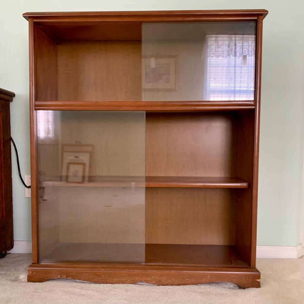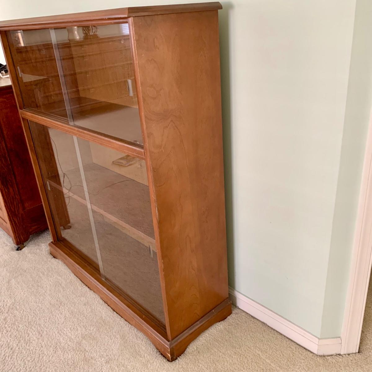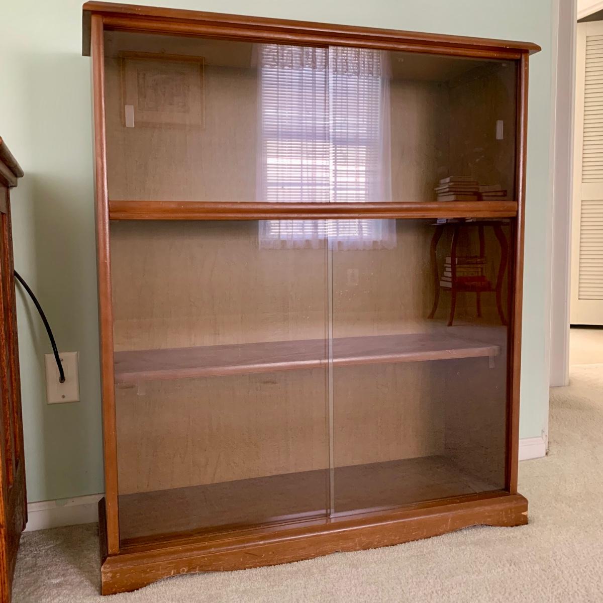 LOT 45 M: Vintage Sliding 2 Door Glass Front Bookcase/ Cabinet