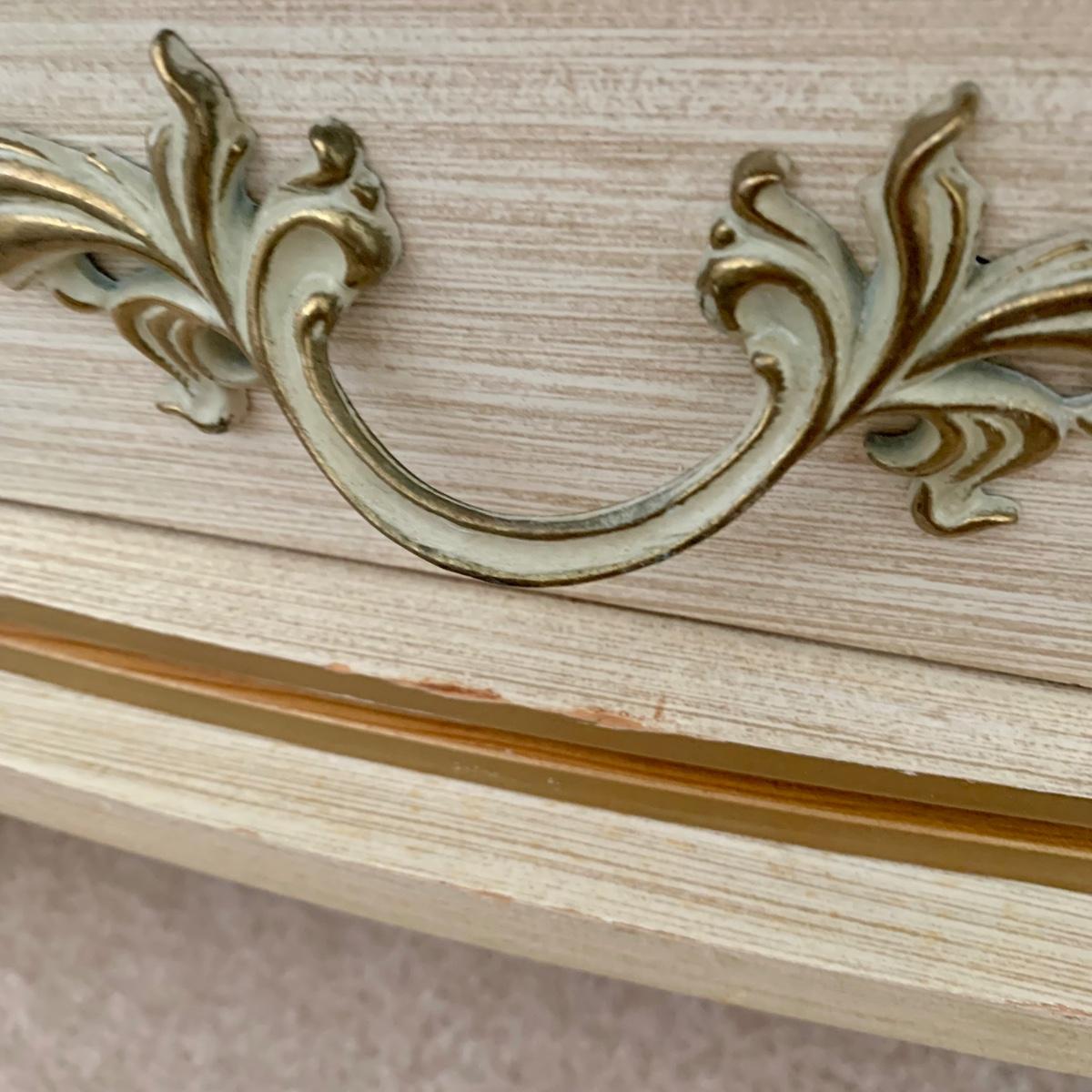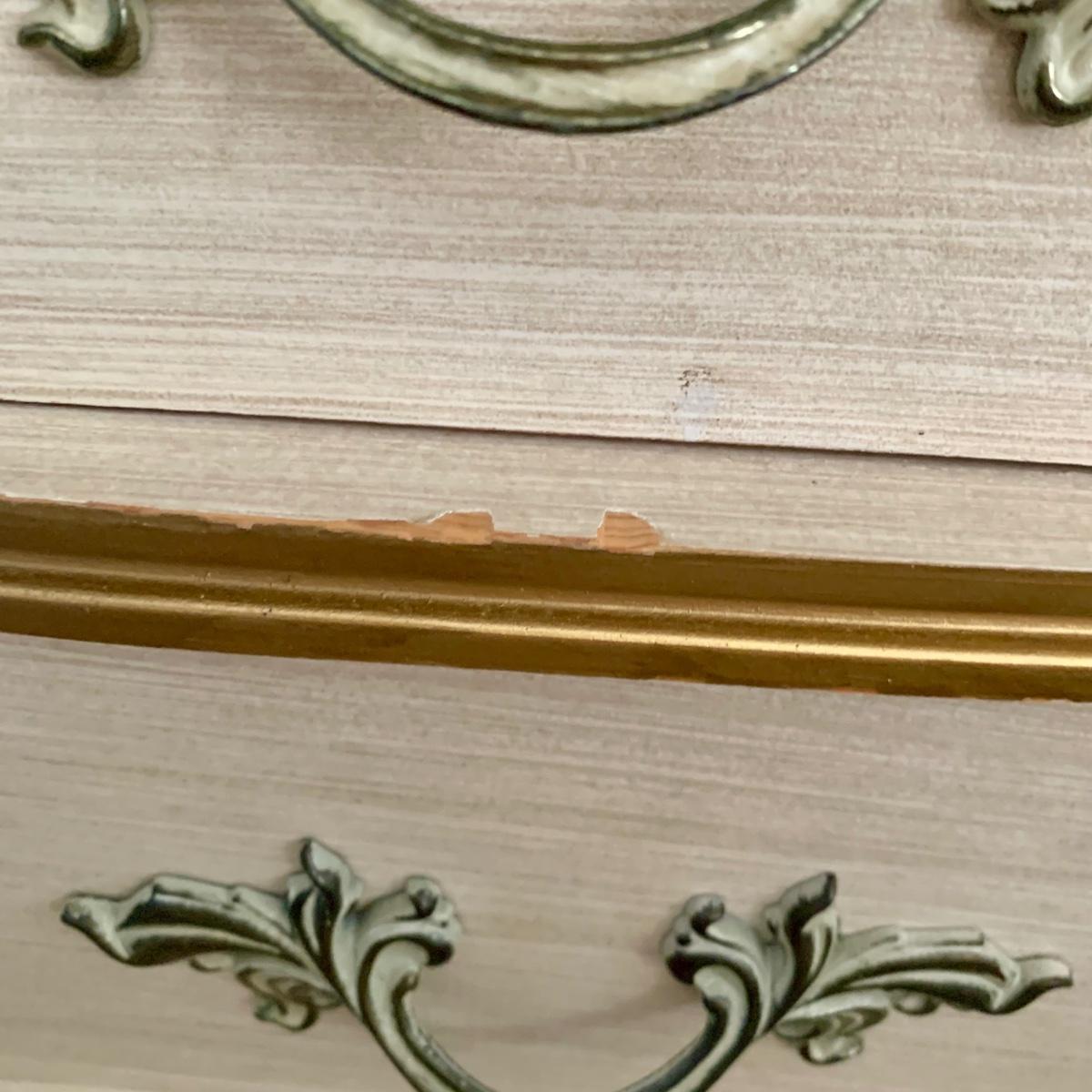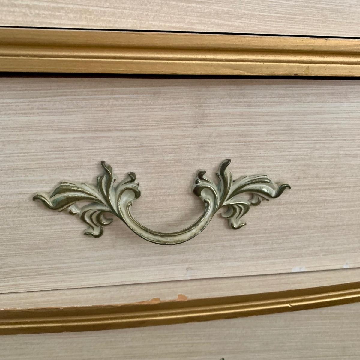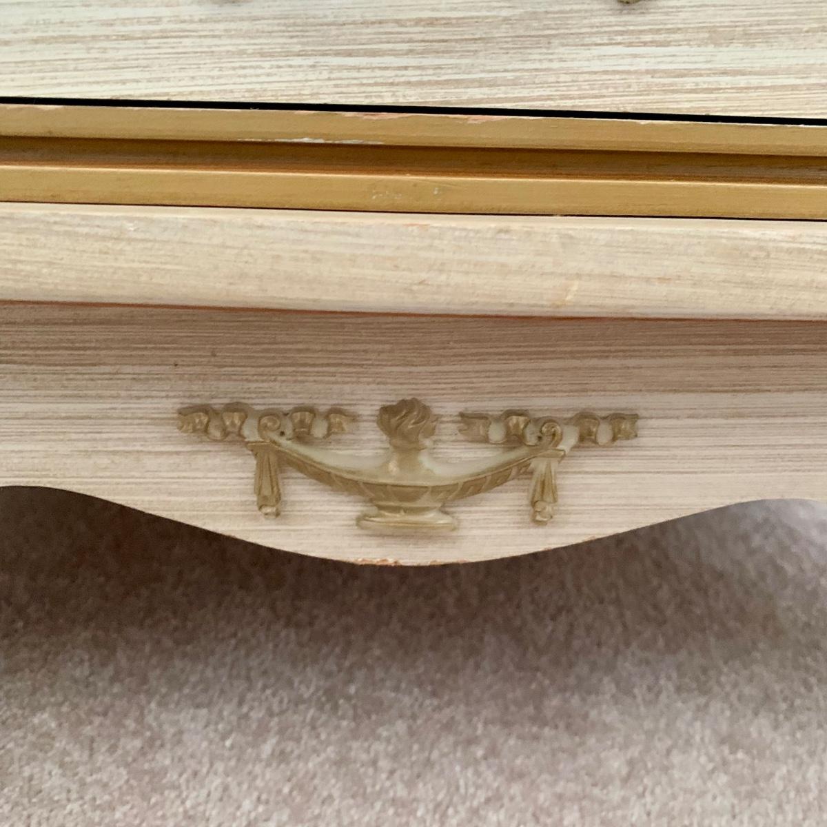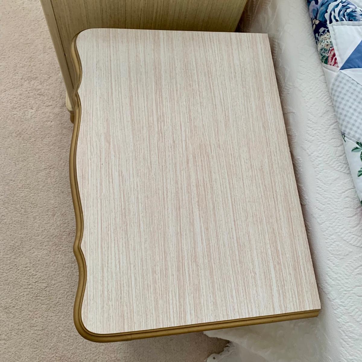 LOT 53 B: Sears "Bonnet" French Provincial Bedroom Set: 9 Drawer Dresser, Unattached 3 Tier Shelving Unit topper gor desk, 4 Drawer Desk w/ Chair, & 2 Drawer & 3 Drawer Side Tables/ Nightstands