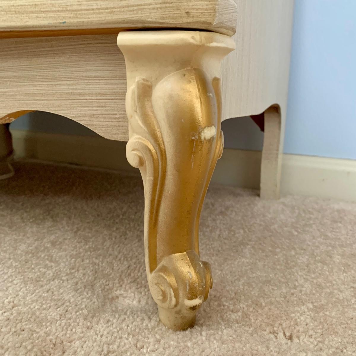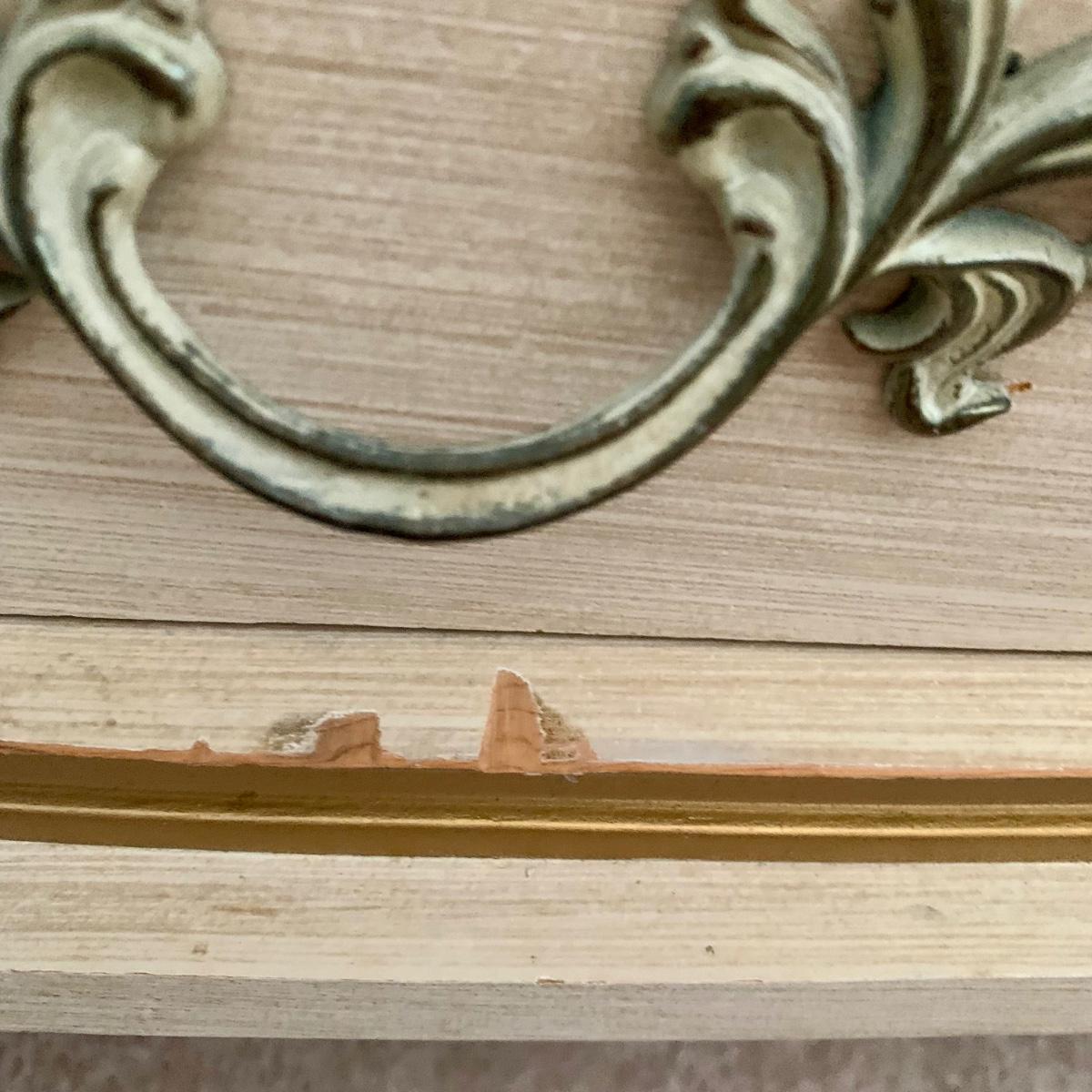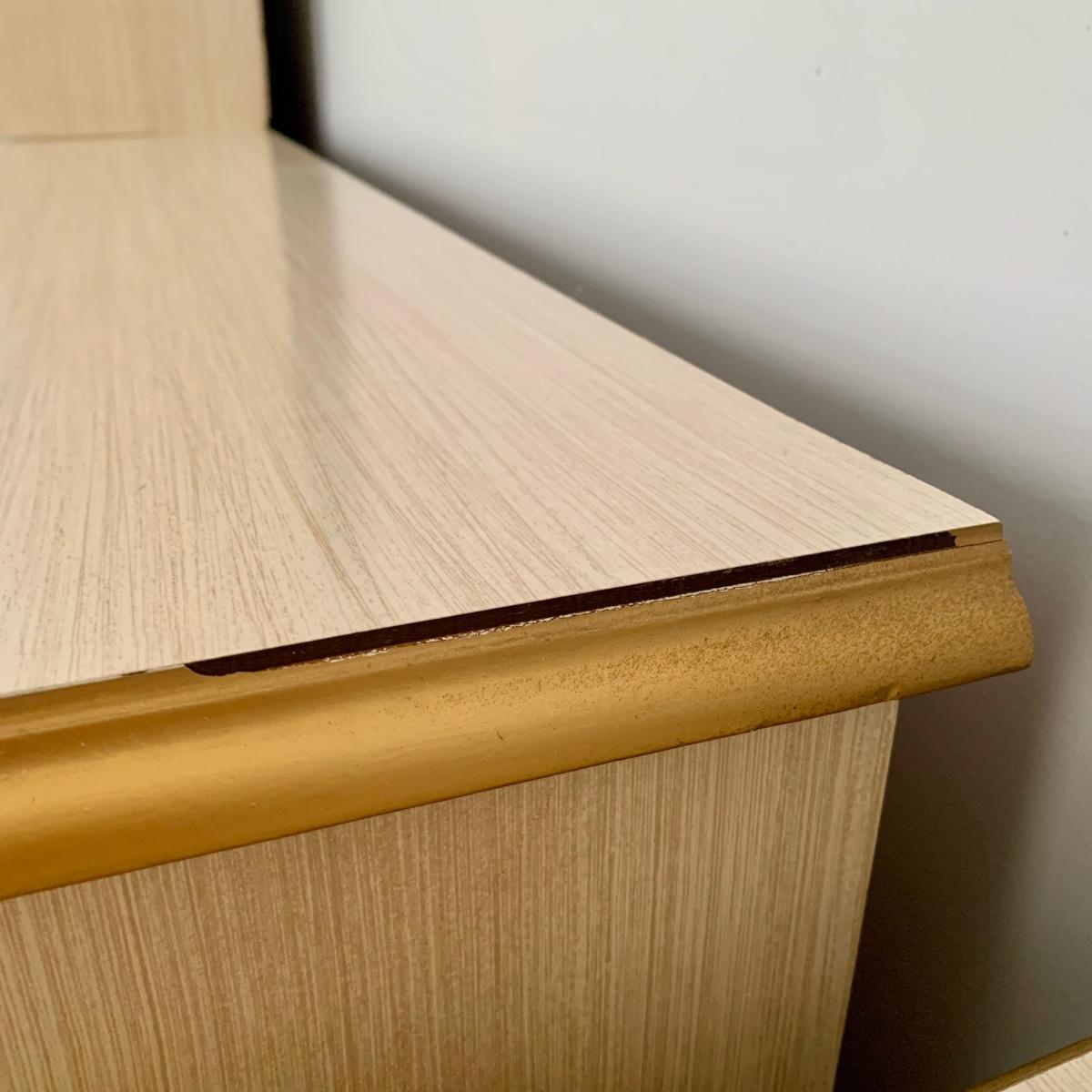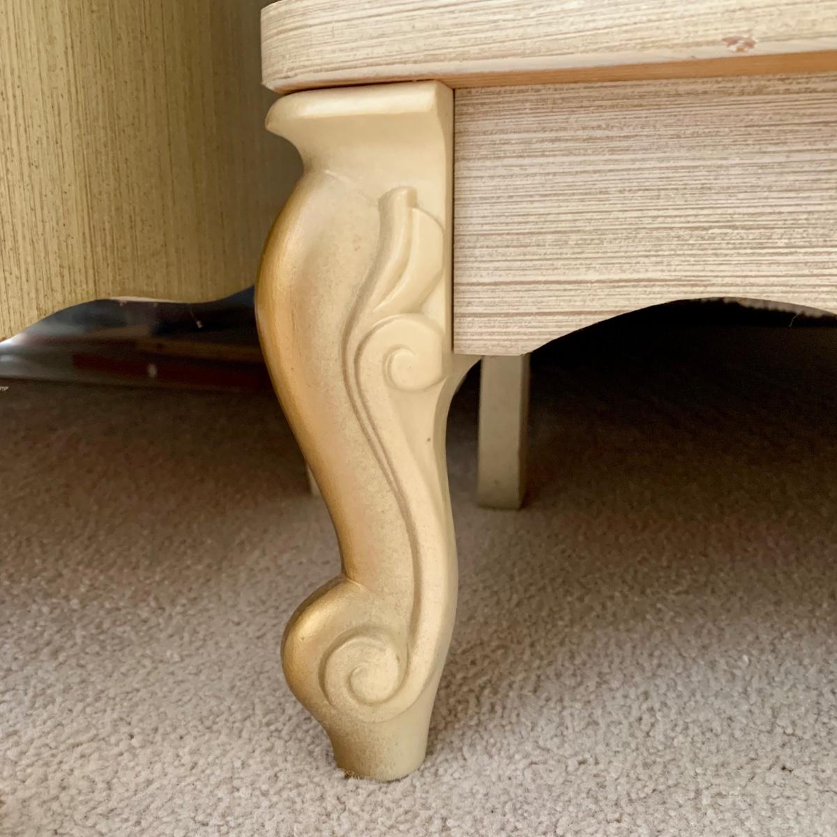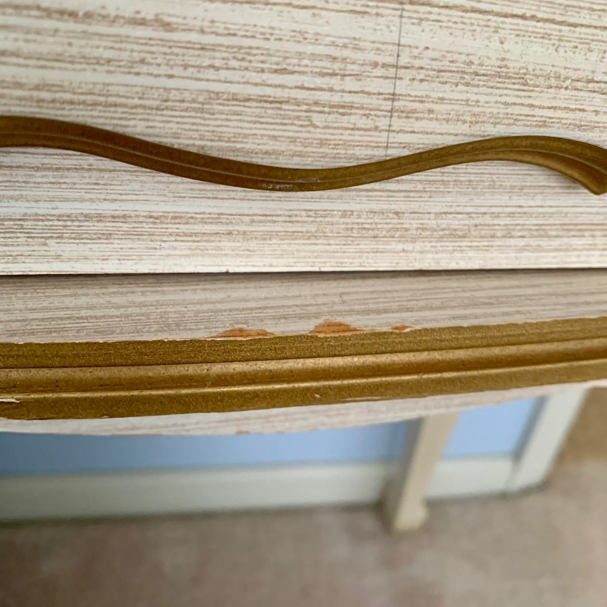 LOT 53 B: Sears "Bonnet" French Provincial Bedroom Set: 9 Drawer Dresser, Unattached 3 Tier Shelving Unit topper gor desk, 4 Drawer Desk w/ Chair, & 2 Drawer & 3 Drawer Side Tables/ Nightstands