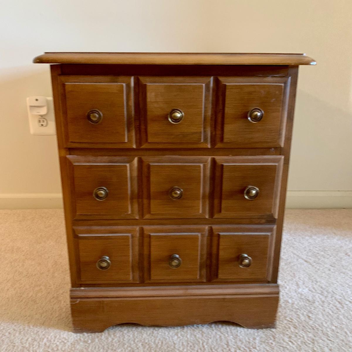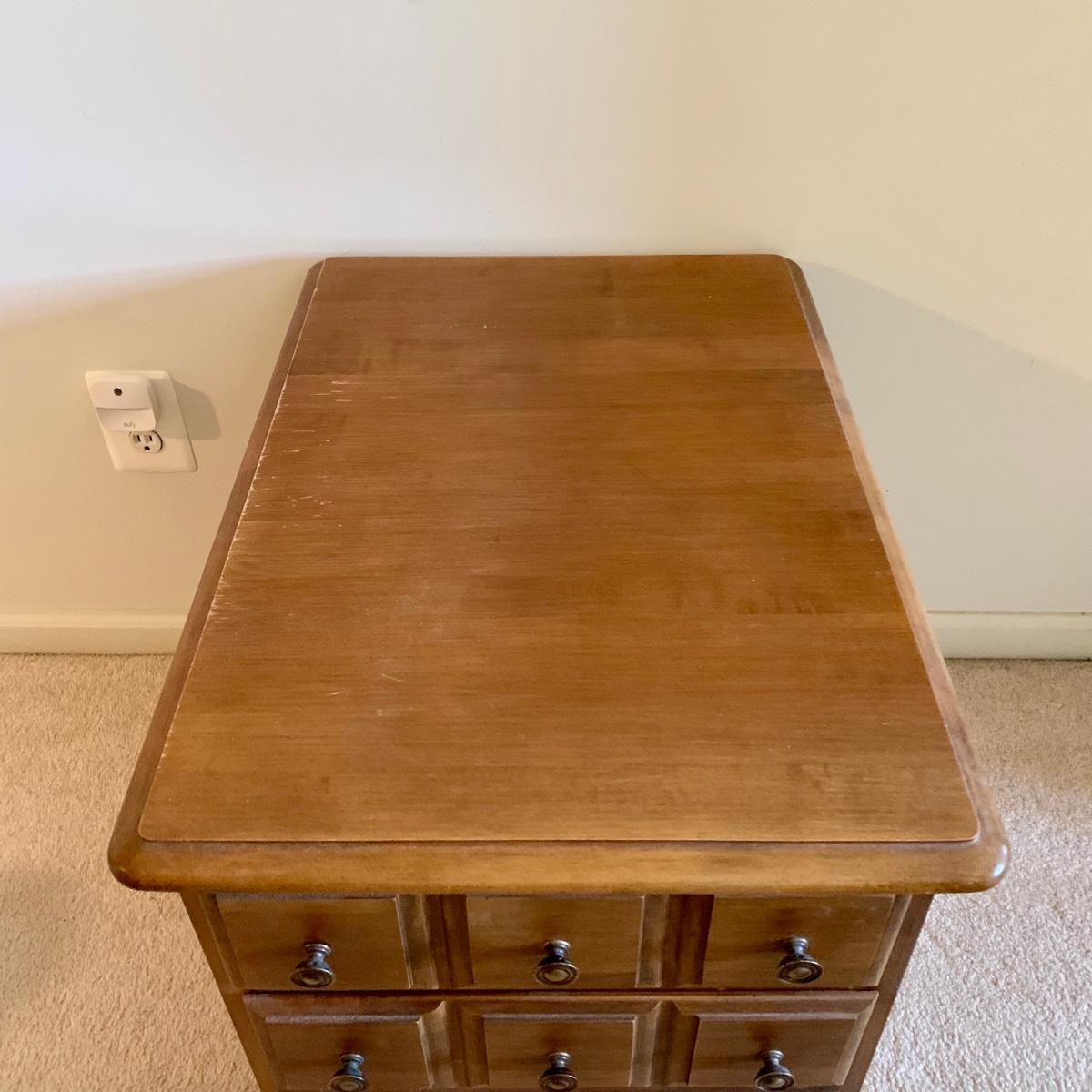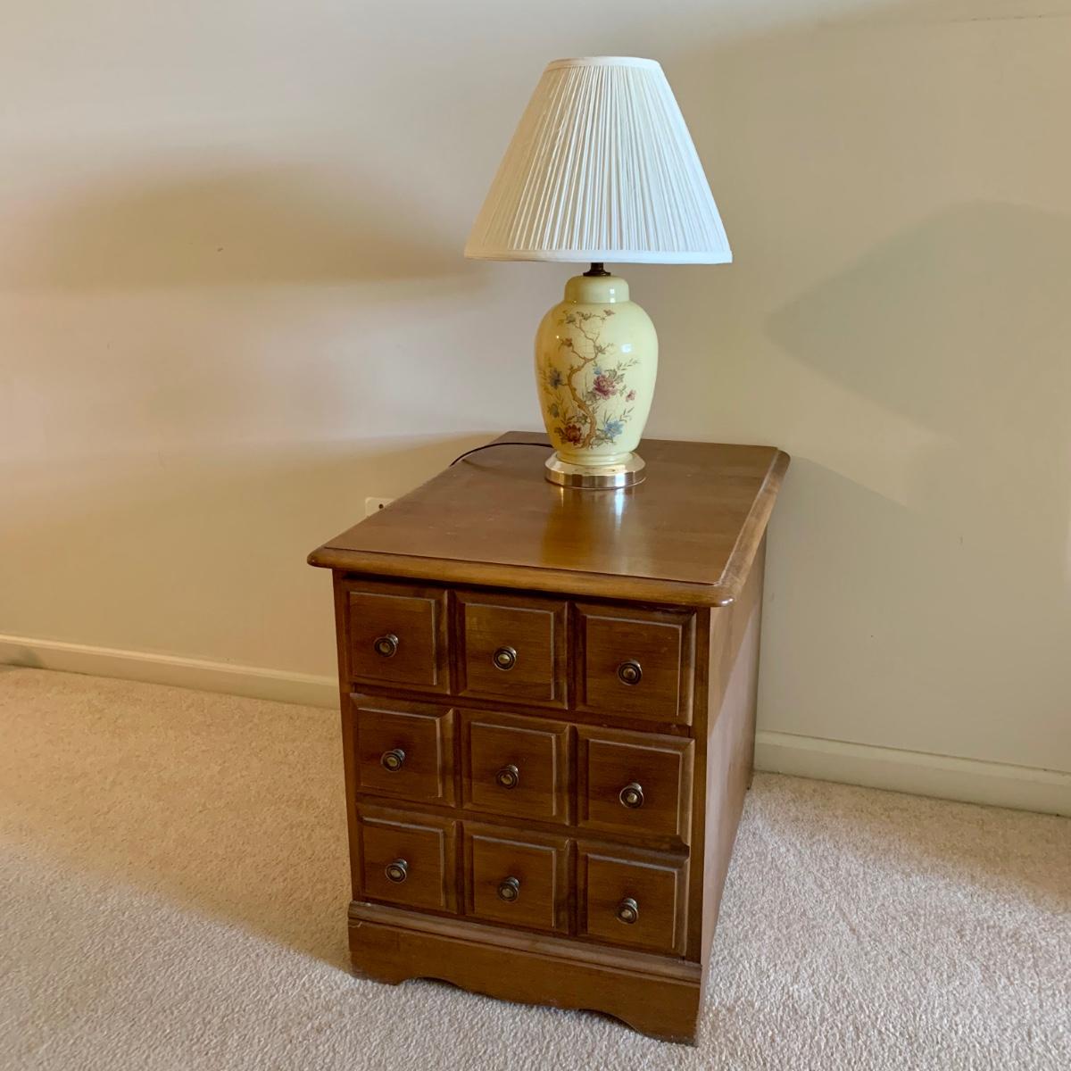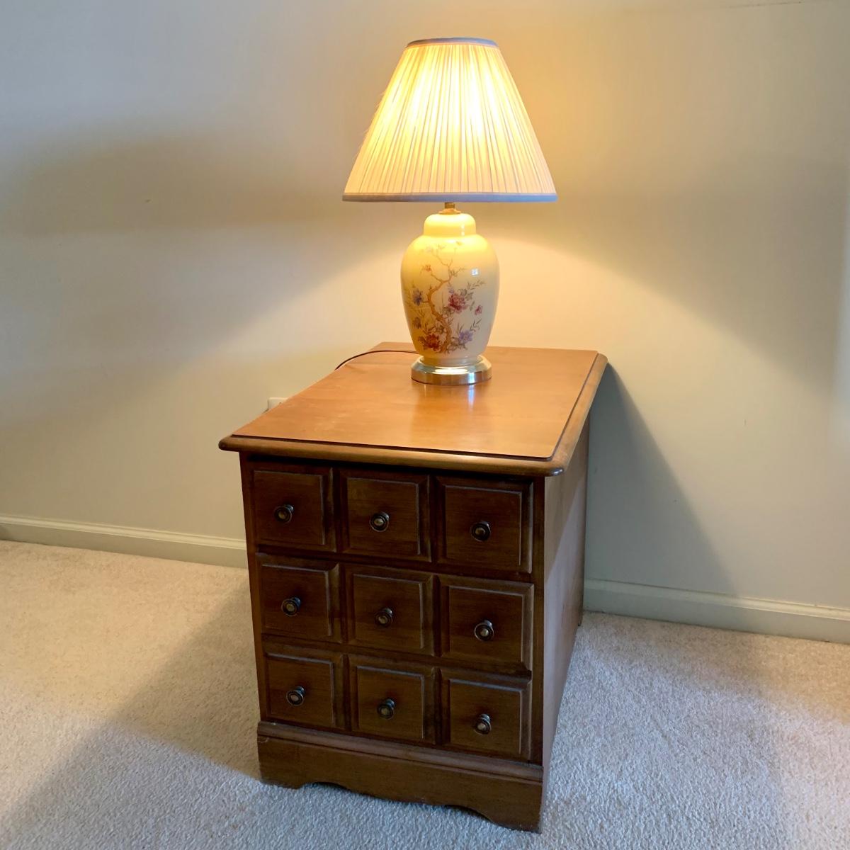LOT 65 U: Vintage Ginger Jar Inspired Glass Lamp & 2 Drawer Faux Card Catalog Style Side Table / Night Stand