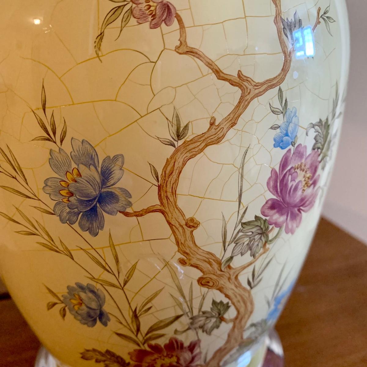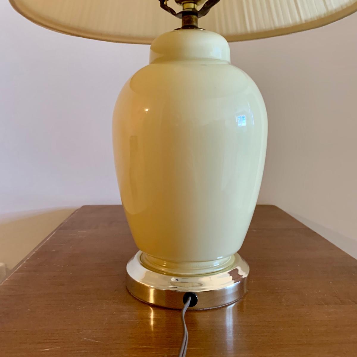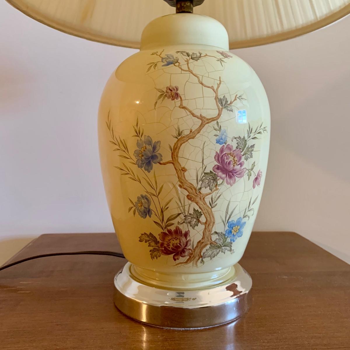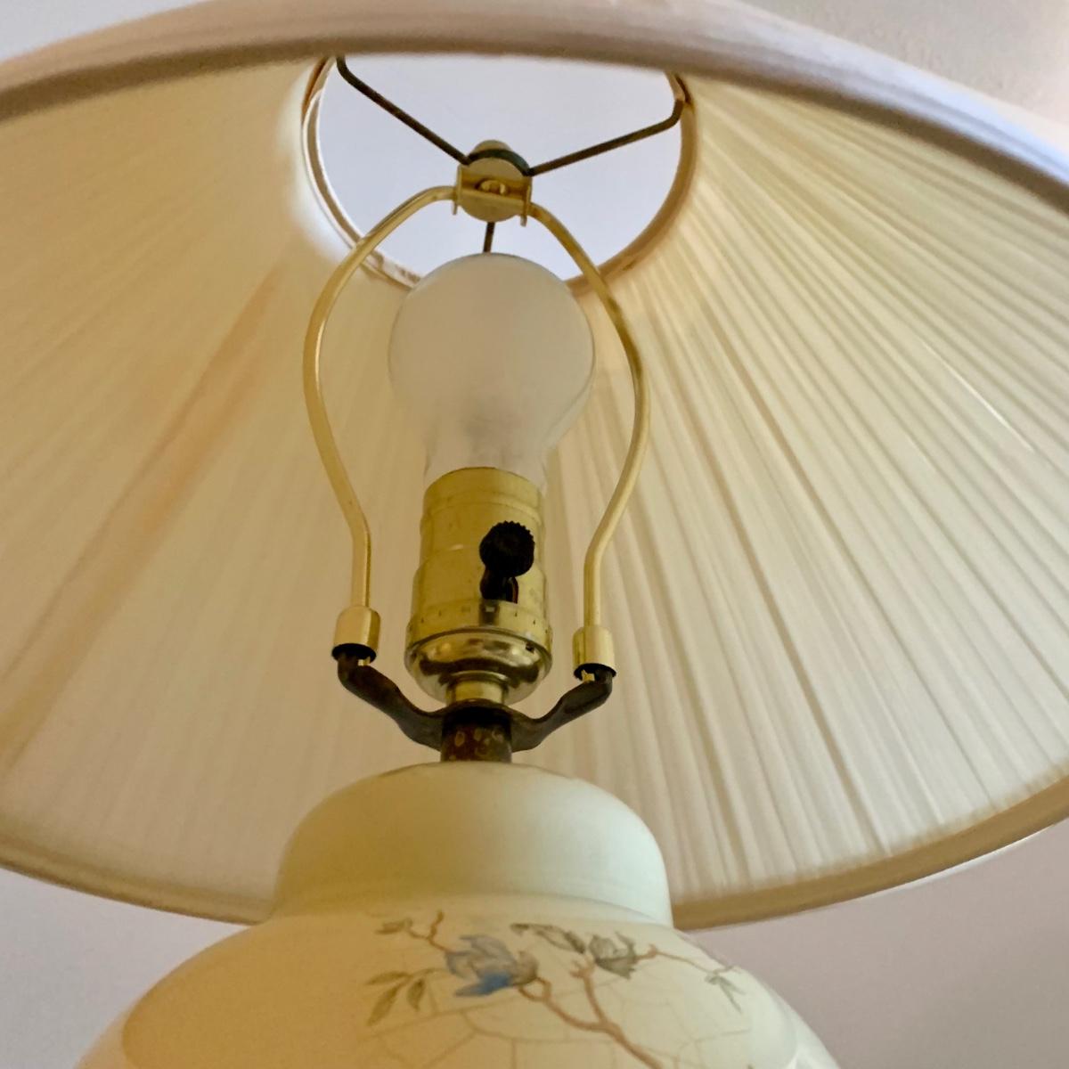 LOT 65 U: Vintage Ginger Jar Inspired Glass Lamp & 2 Drawer Faux Card Catalog Style Side Table / Night Stand