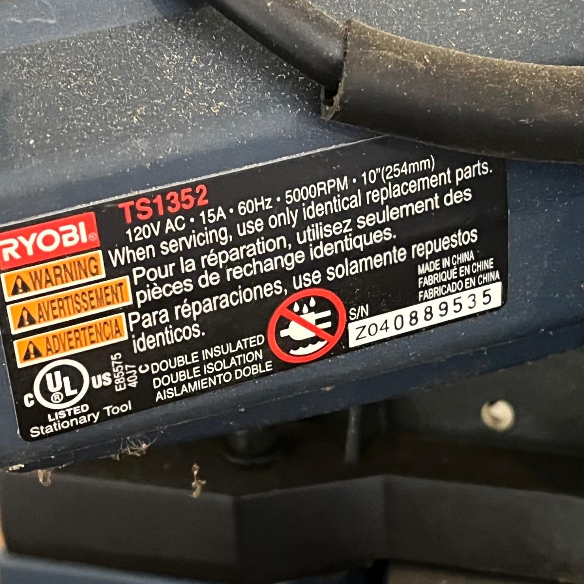 LOT 91G: Ryobi Table Saw - Model TS1352