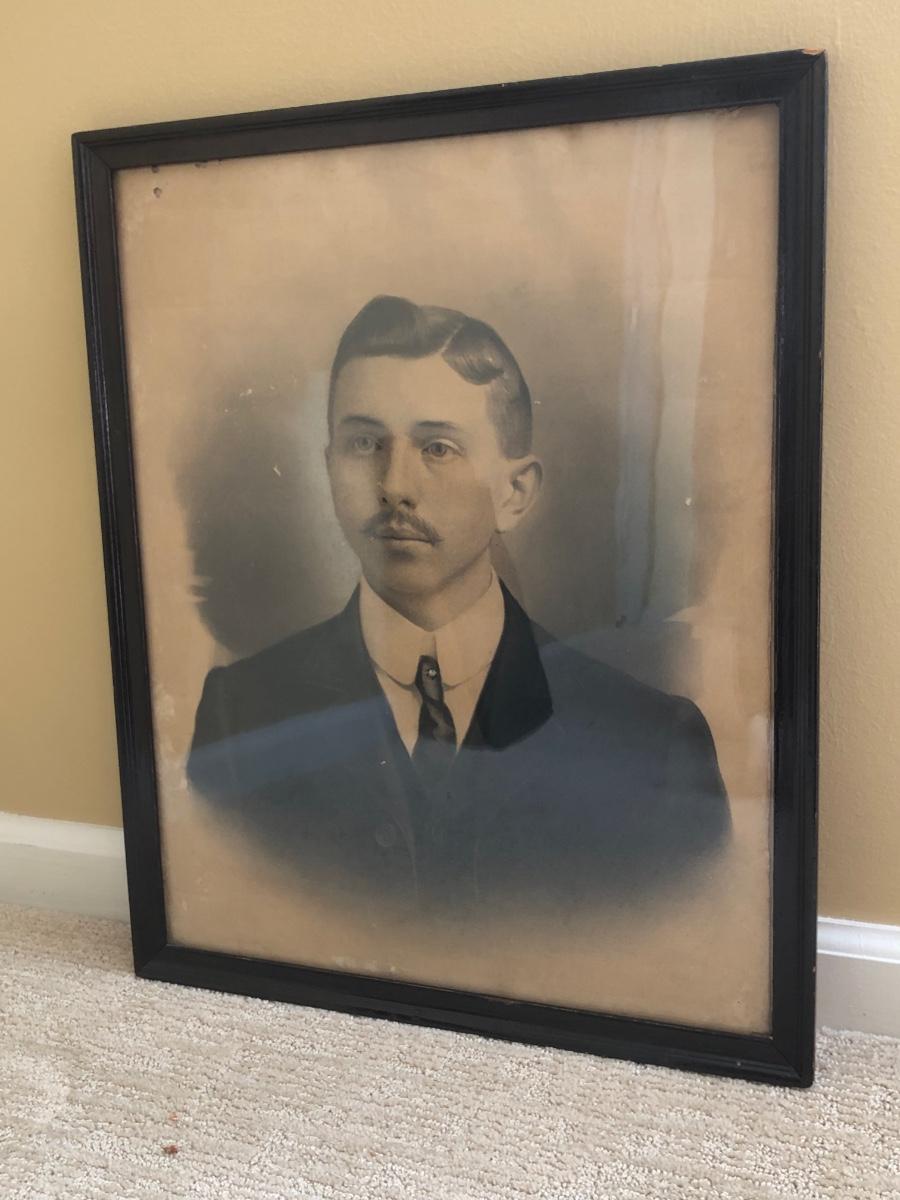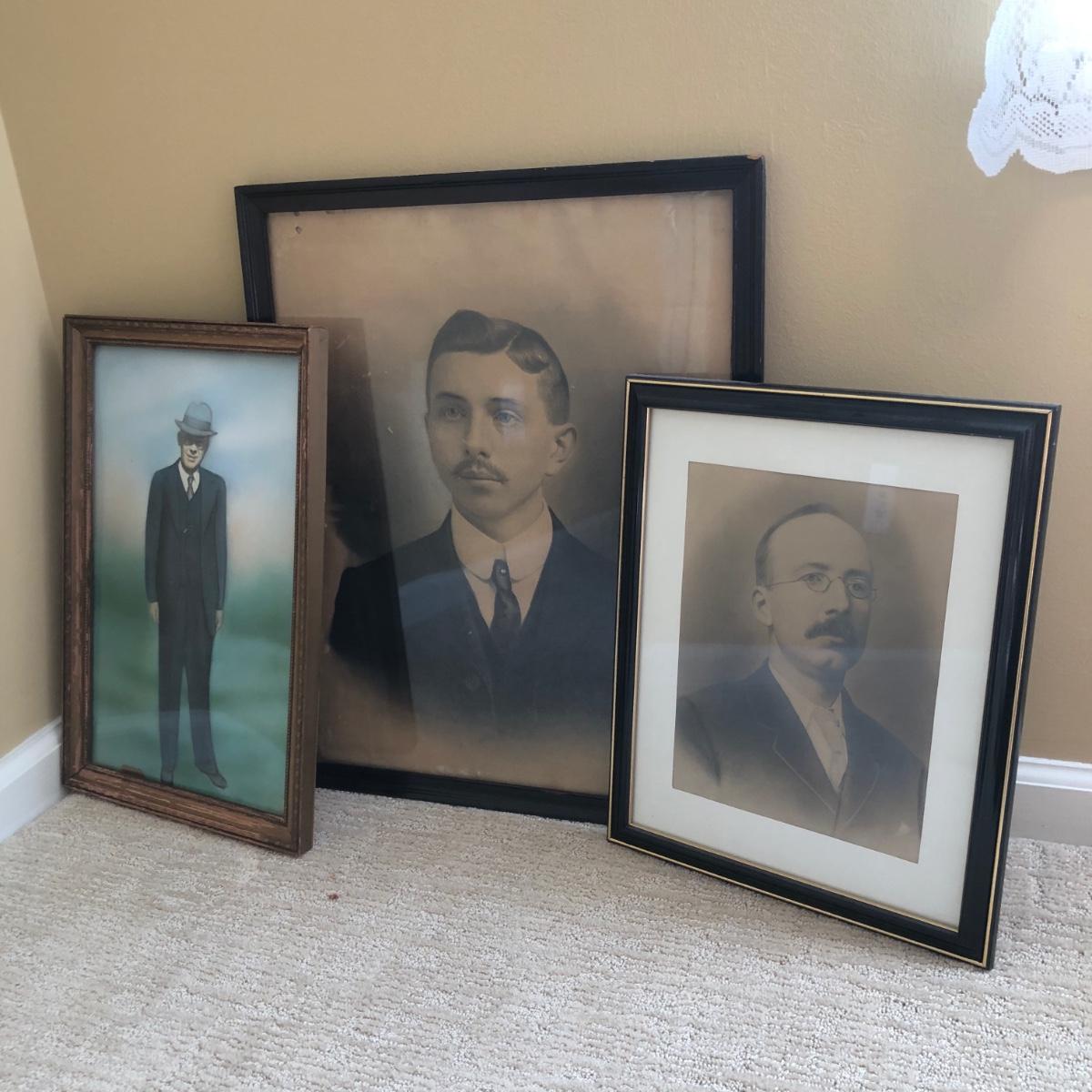 LOT 115L: "A Family Mystery Picture" Framed w/ Curved Glass & Two More Antique Photographs