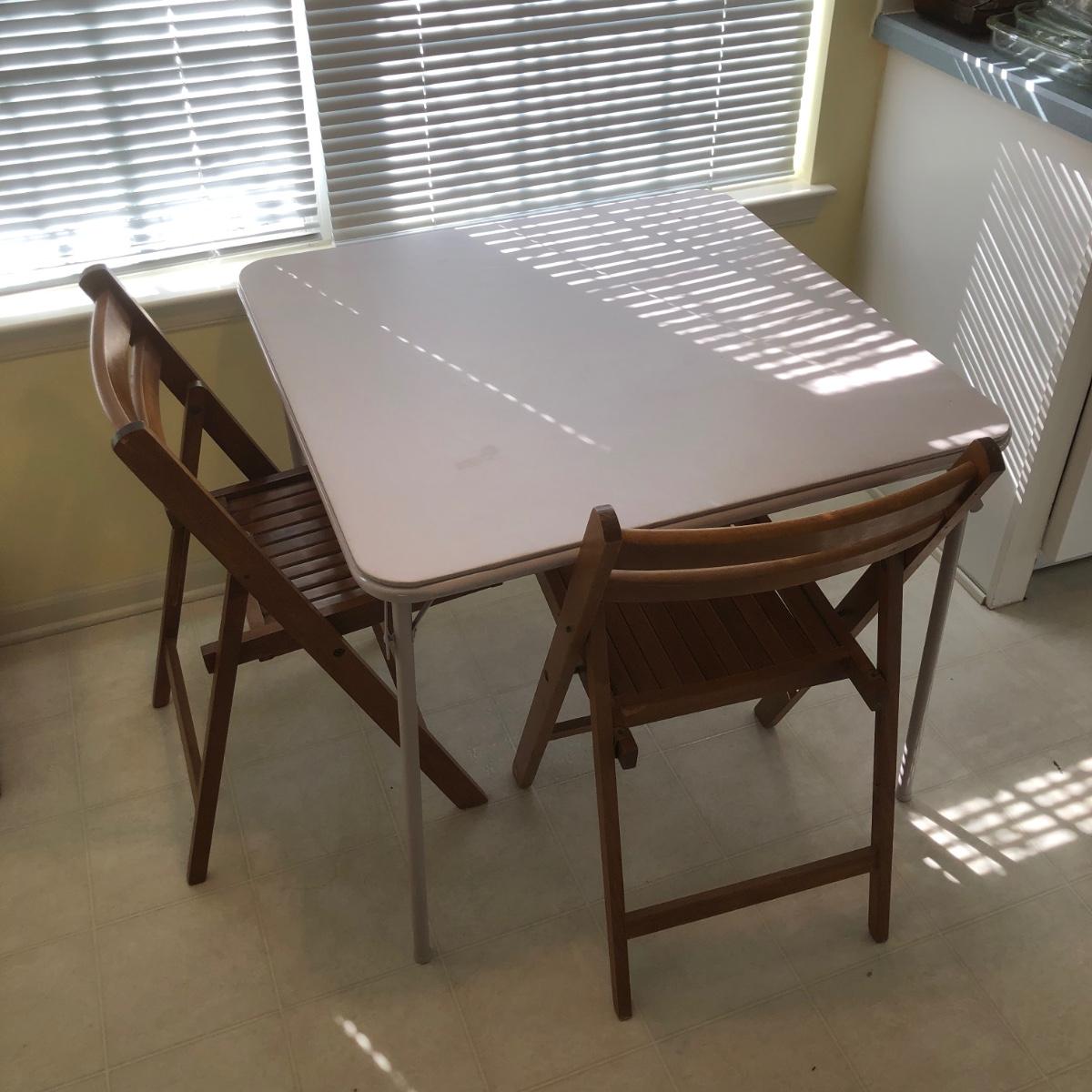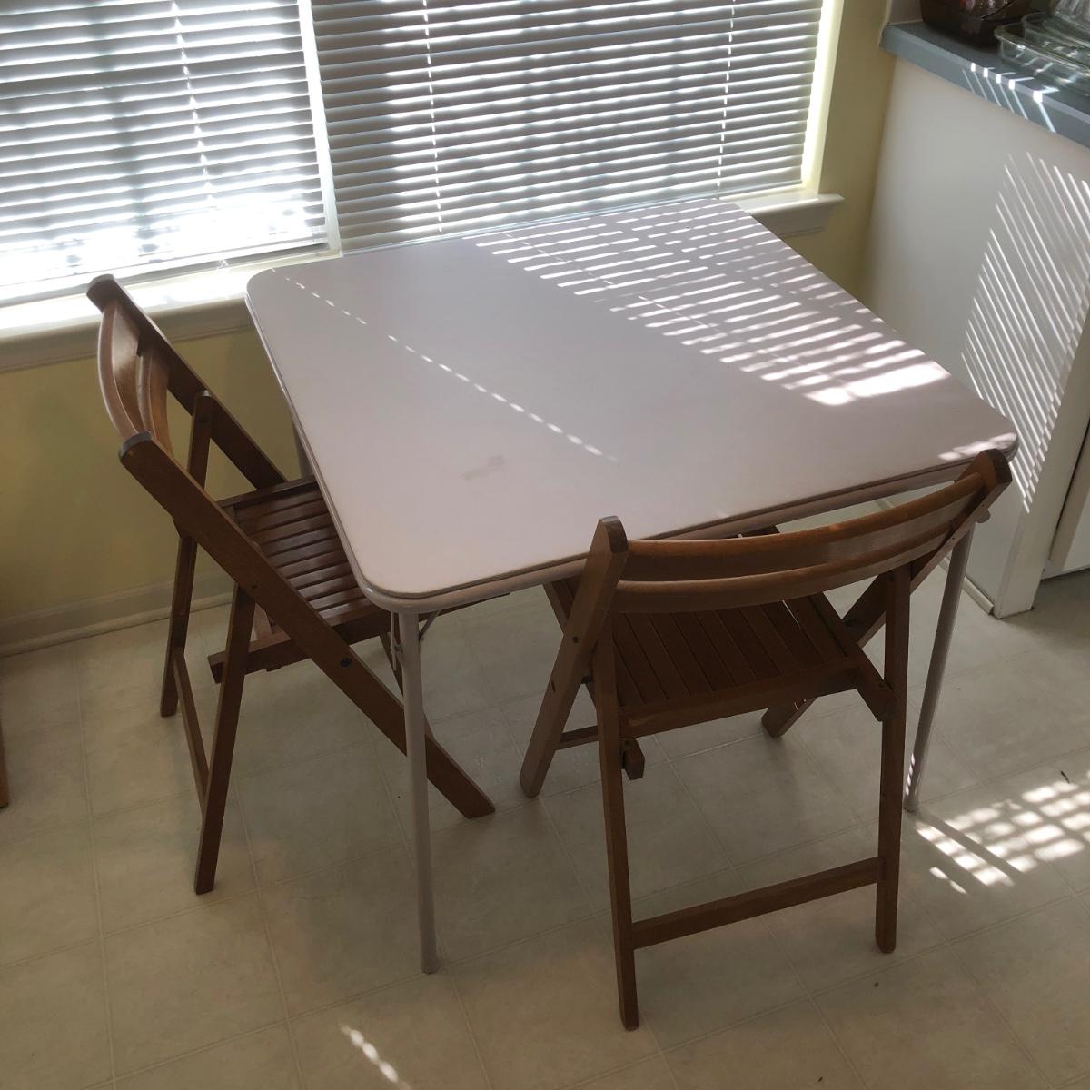 LOT 117K: Folding Card Table w/ 2 Wooden Folding Chairs