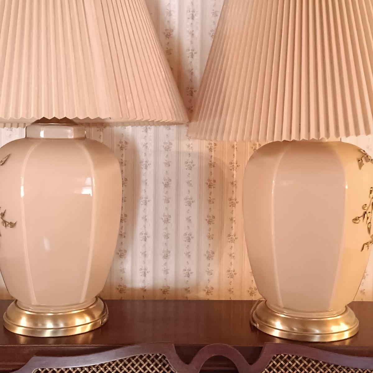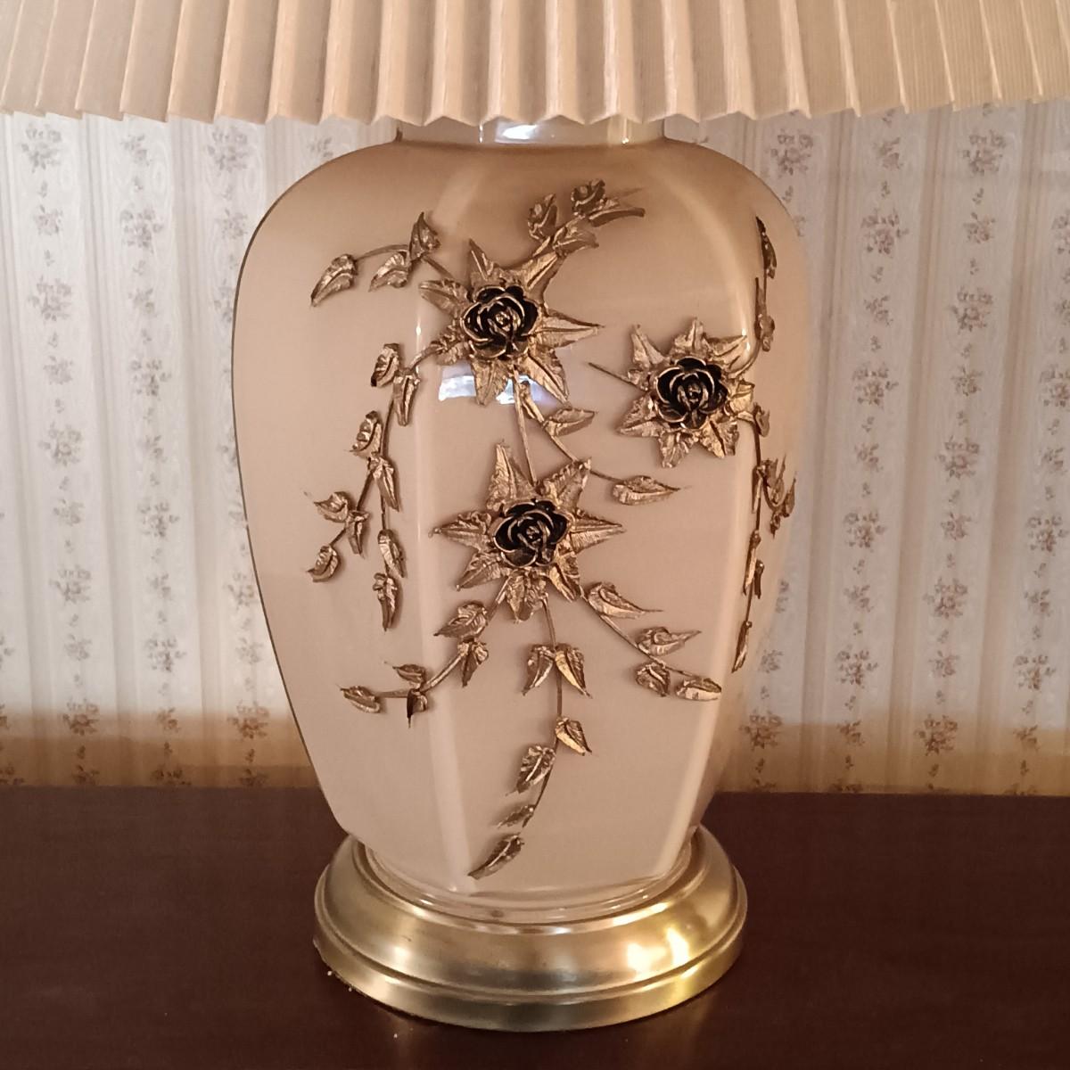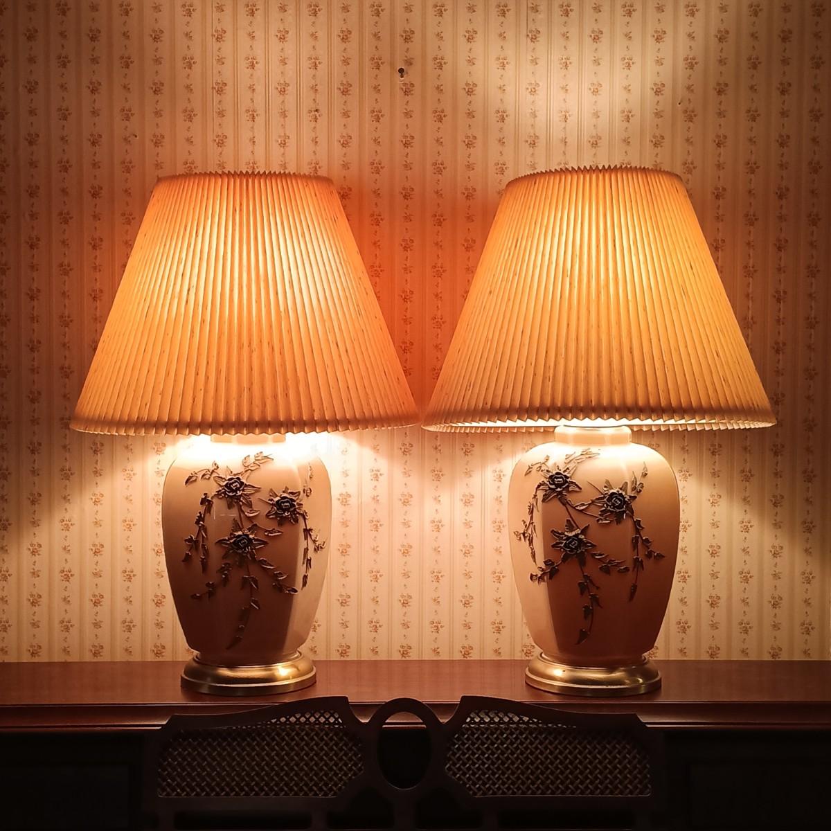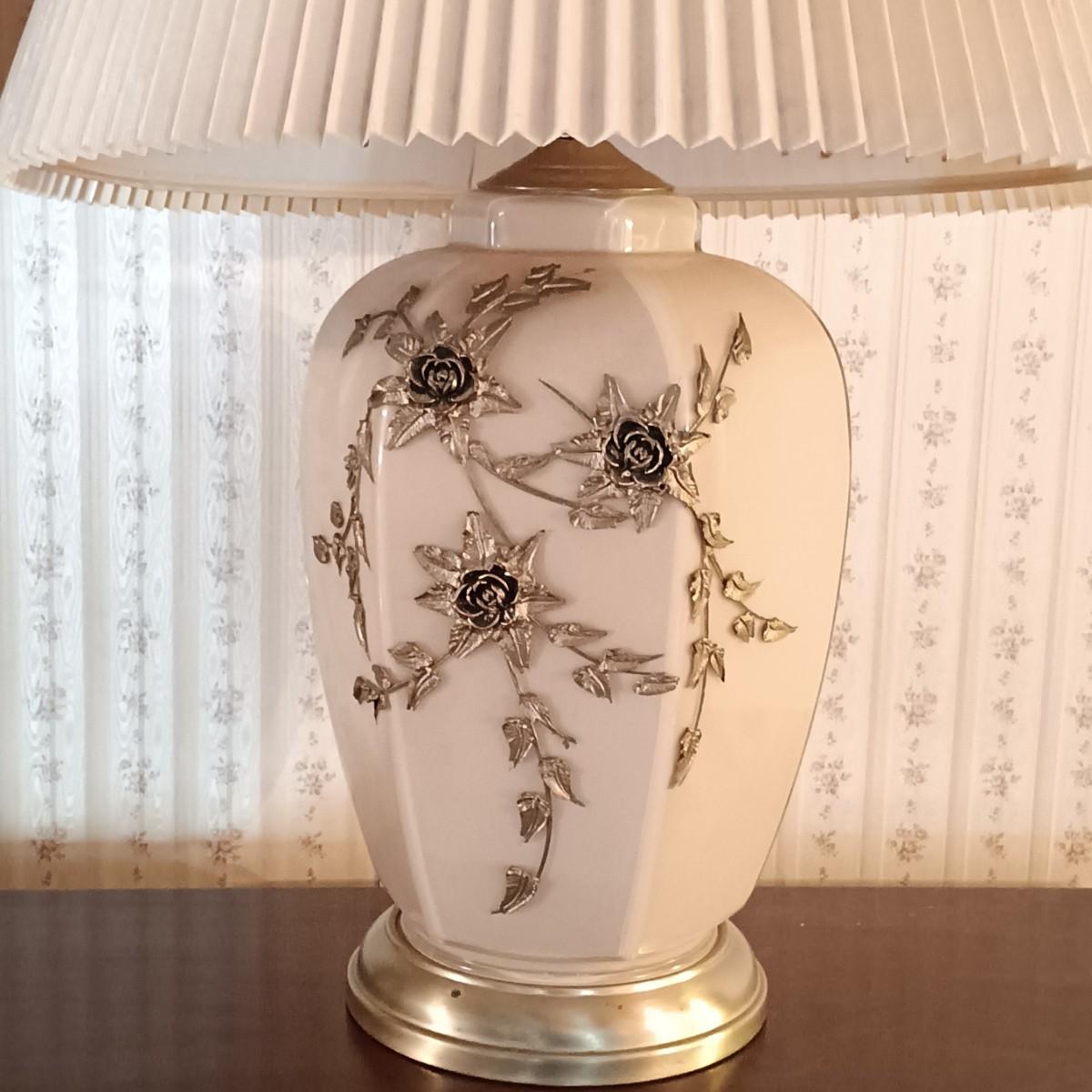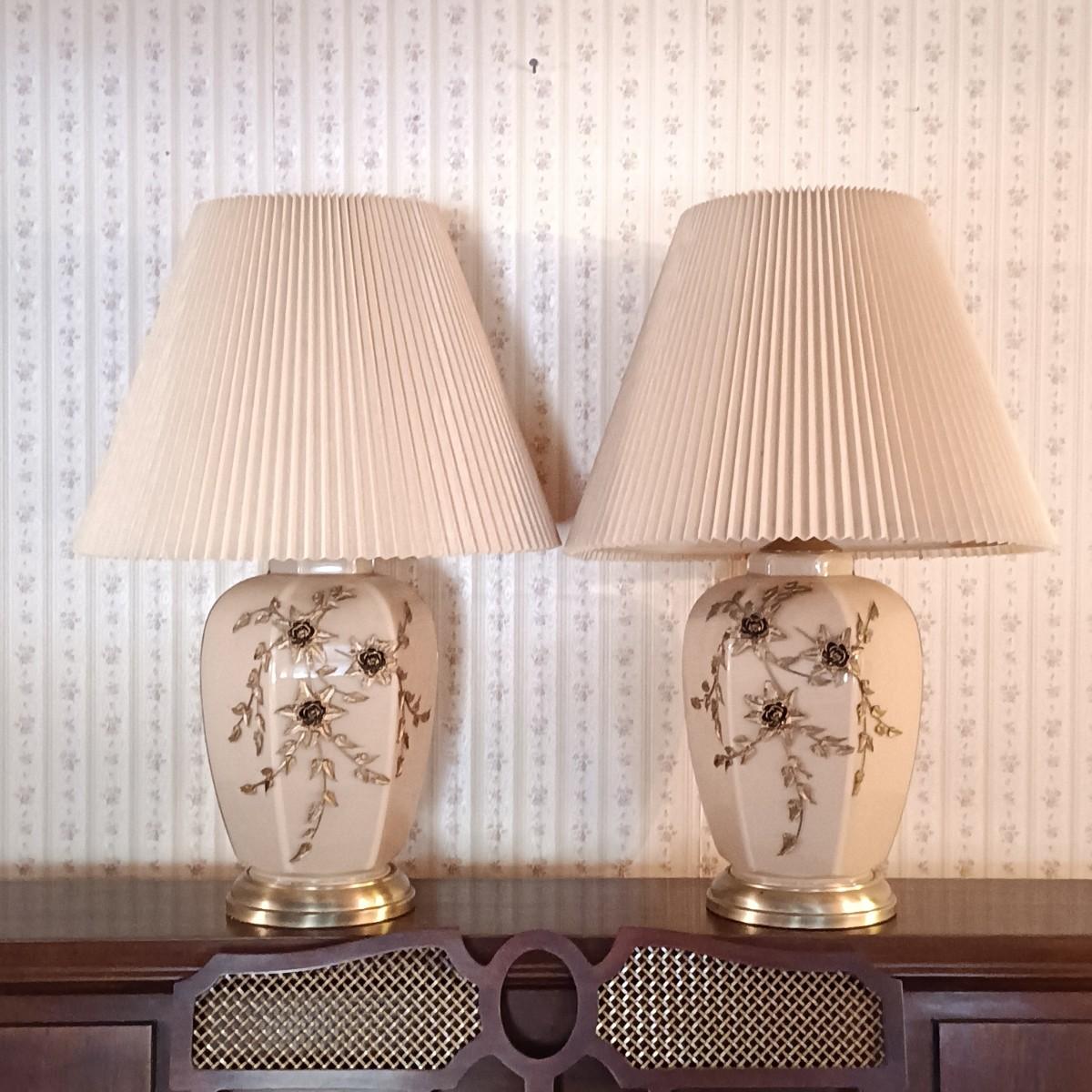 LOT 11: Pair of Glass Lamps with Raised Floral Design