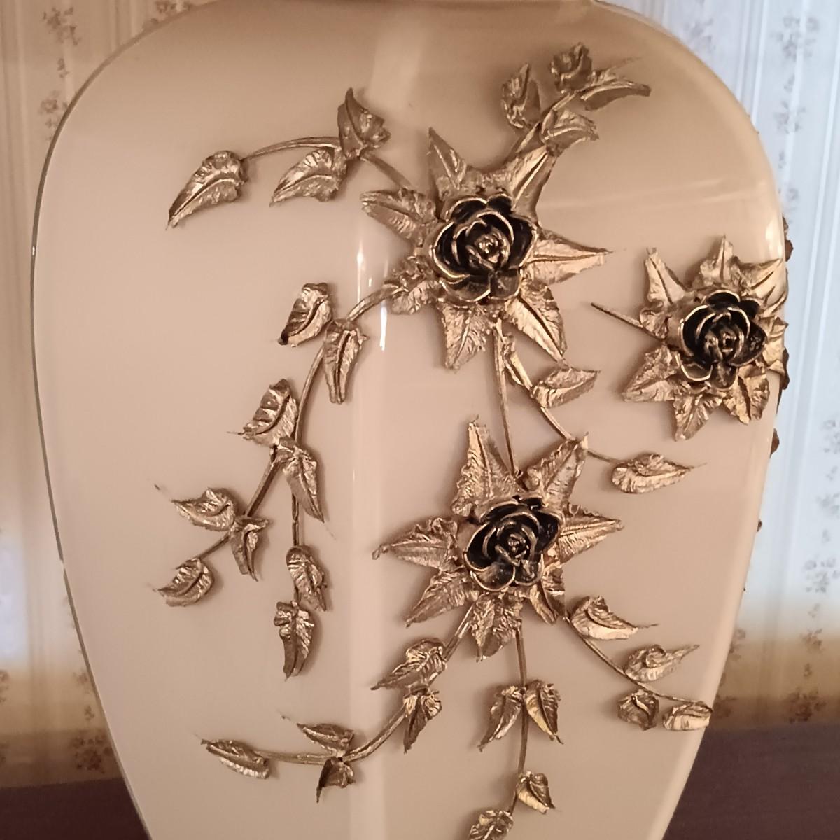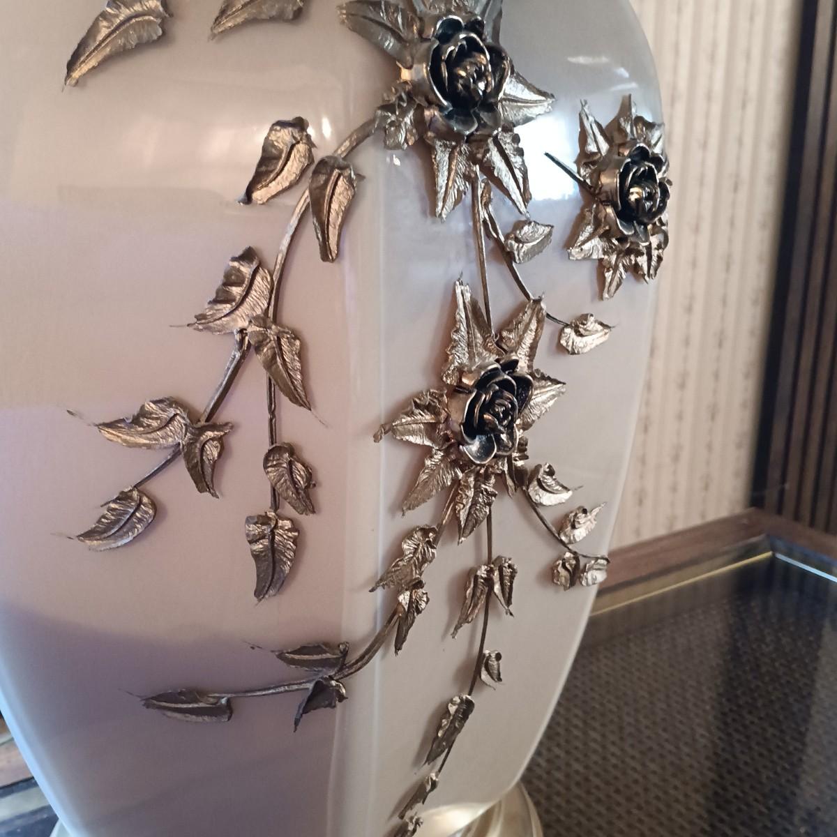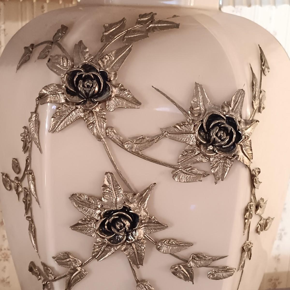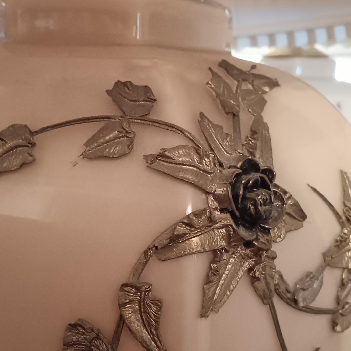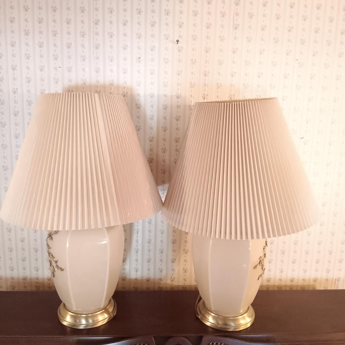 LOT 11: Pair of Glass Lamps with Raised Floral Design