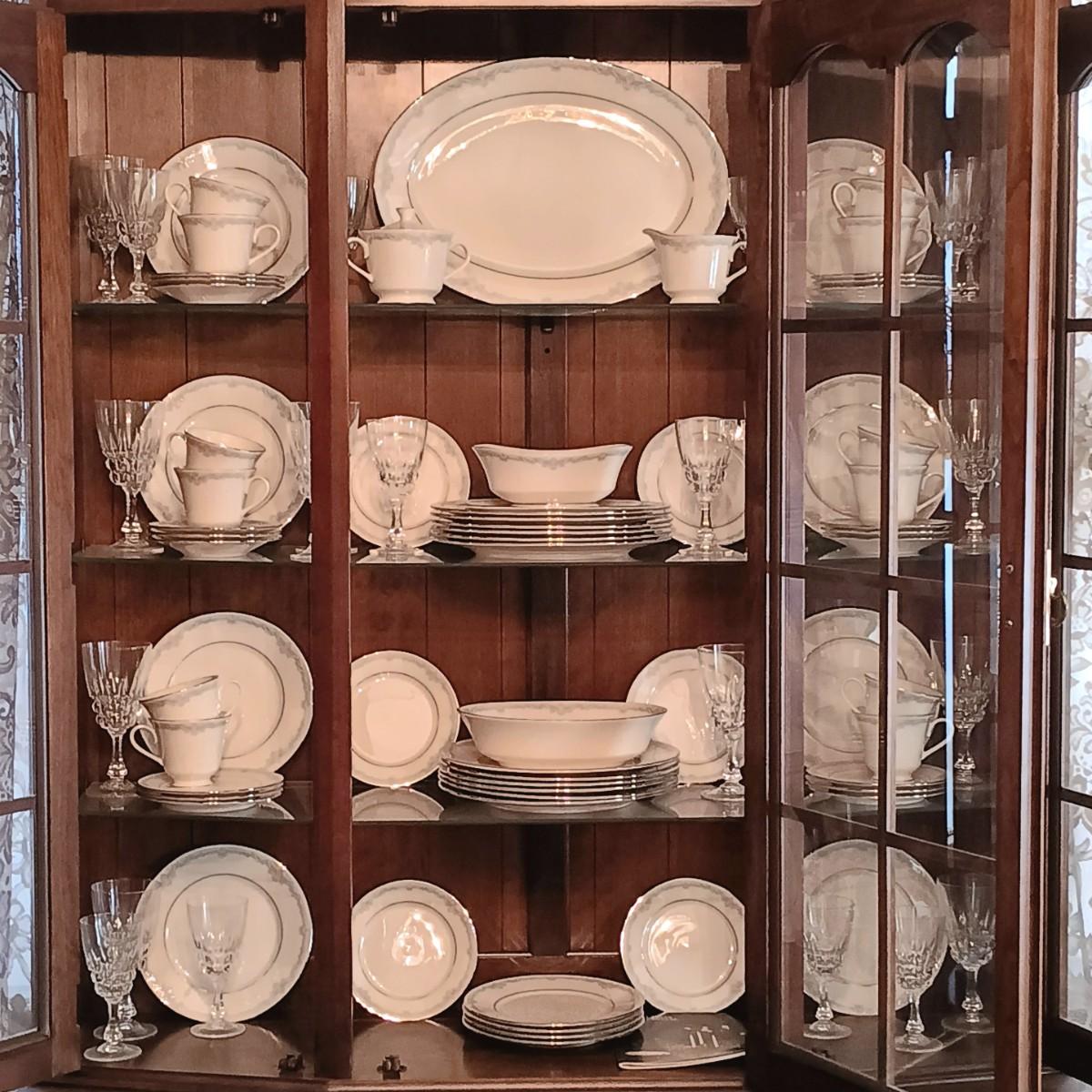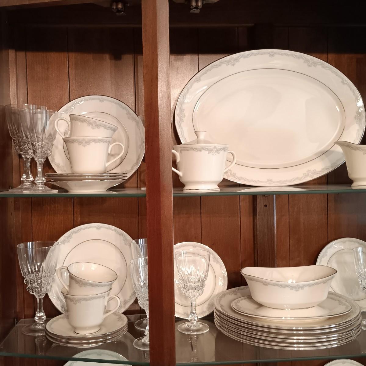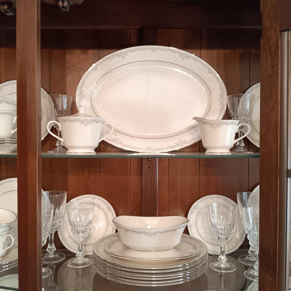 LOT 16: Lenox Kingston China Set with Crystal Wine Glasses