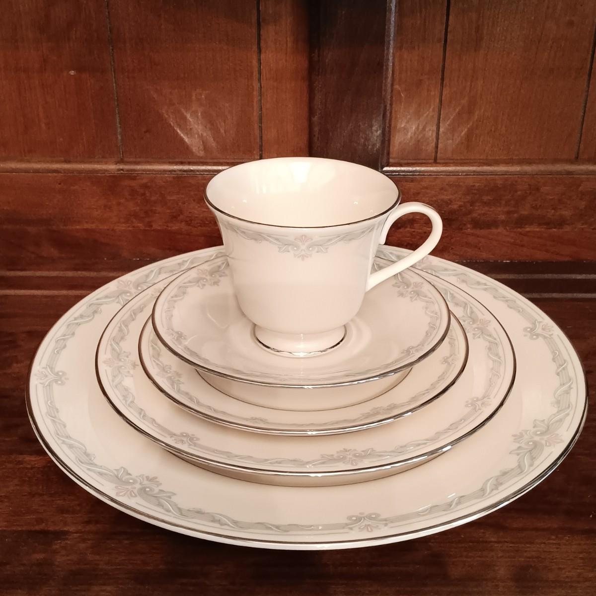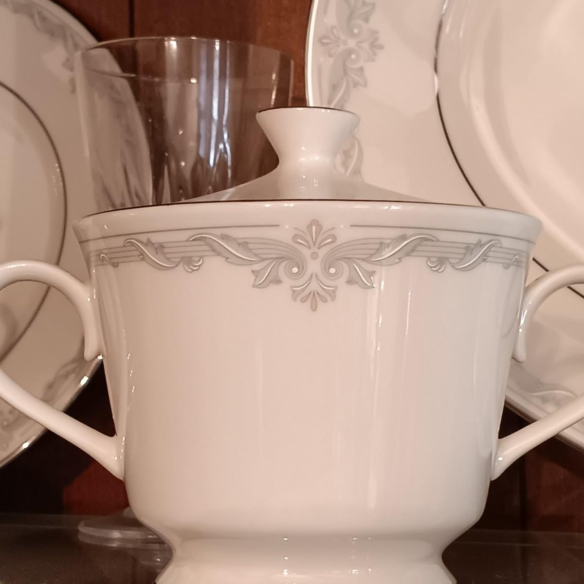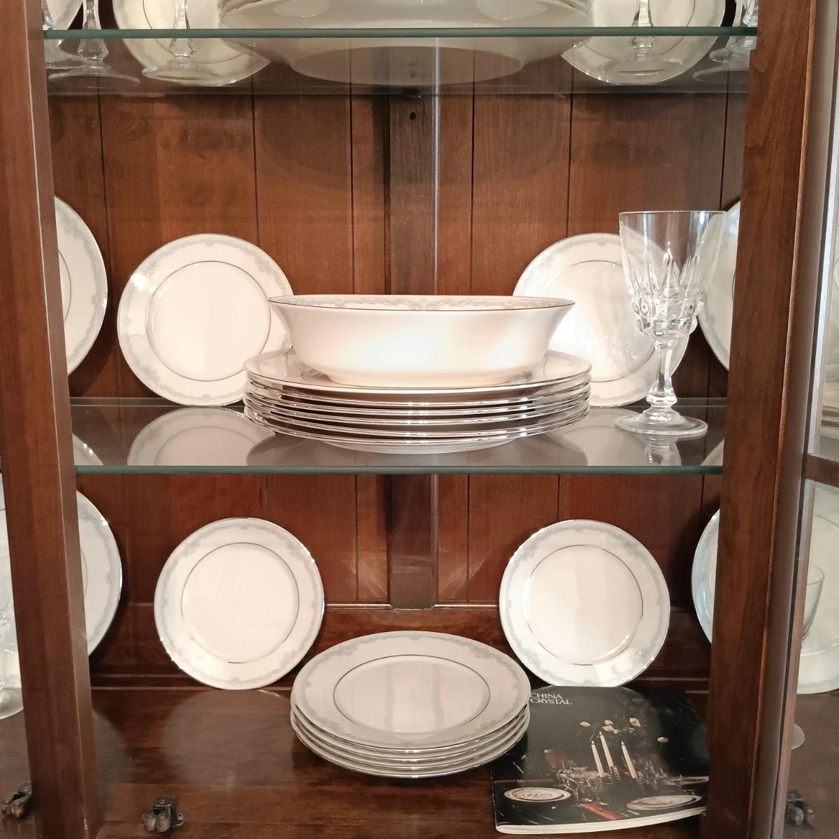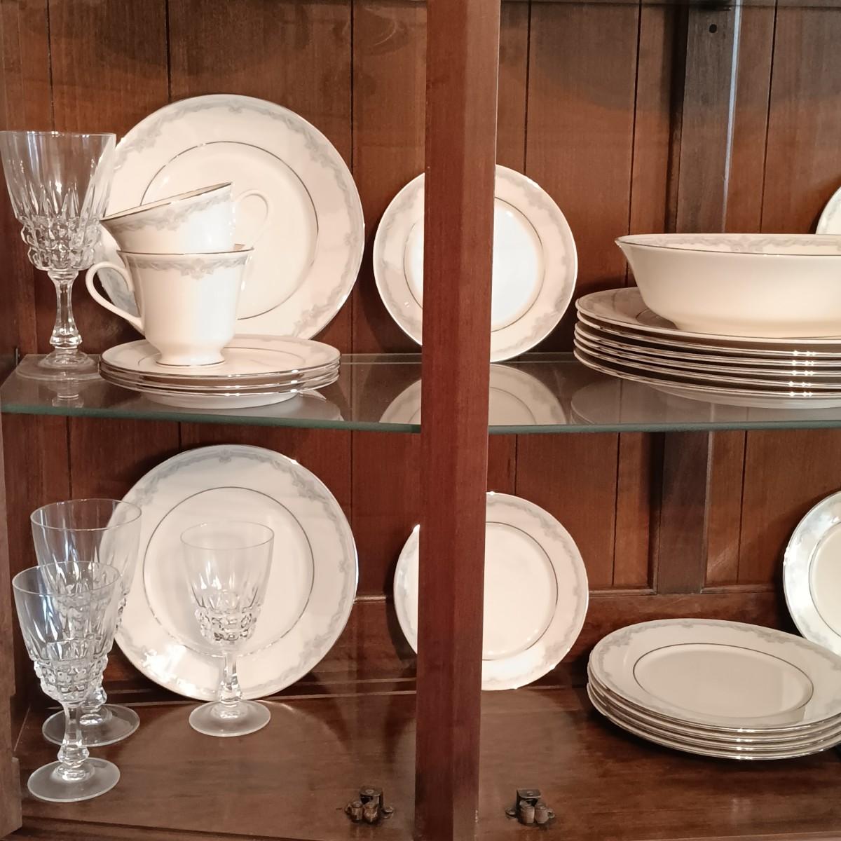 LOT 16: Lenox Kingston China Set with Crystal Wine Glasses