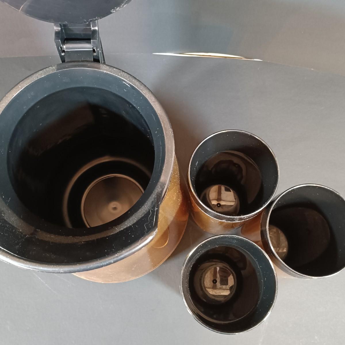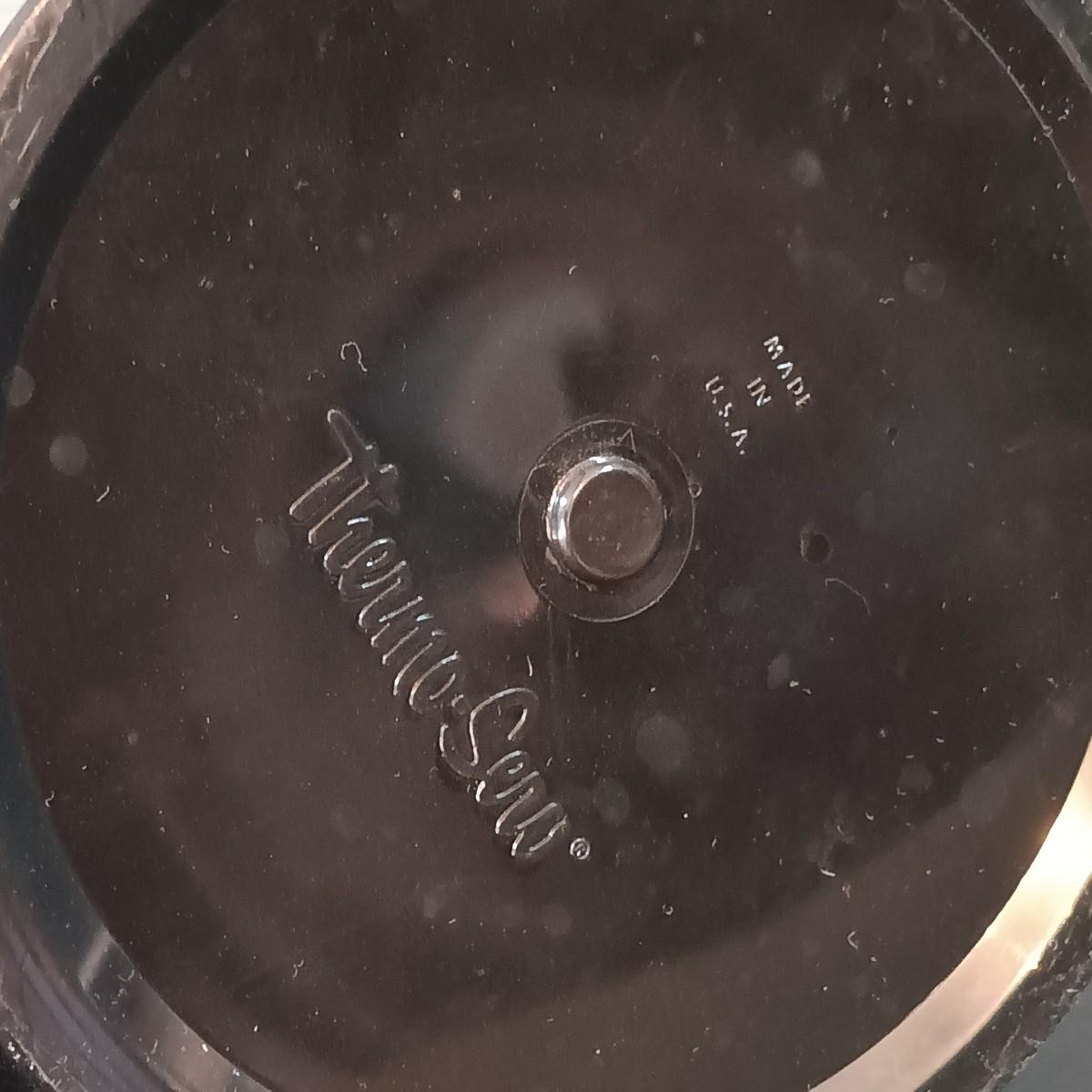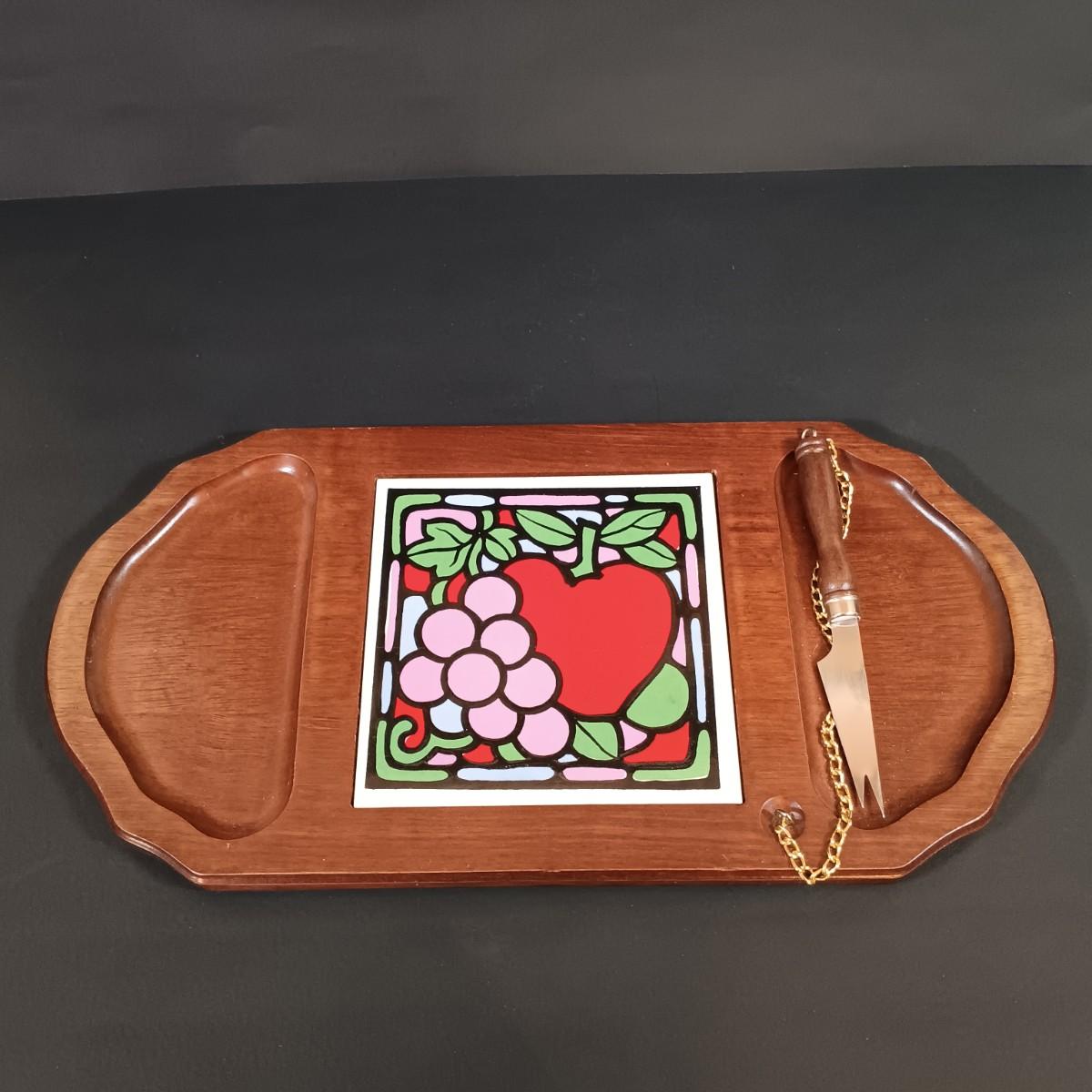 LOT 21: MCM Vintage ThermoServ Insulated Carafe and Cups, Tundra Cheese Board and Knife, Monkey Pod Serving Bowl & More