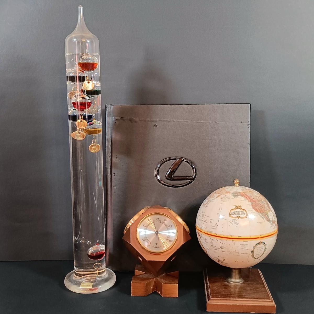 LOT 22: German Made Galileo Thermometer, Weather Meter, 2004 Lexus Story Book & Small Globe