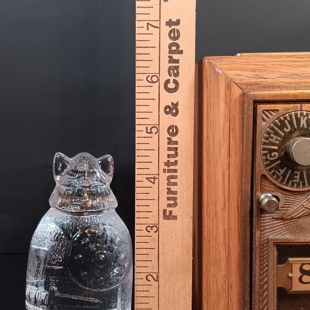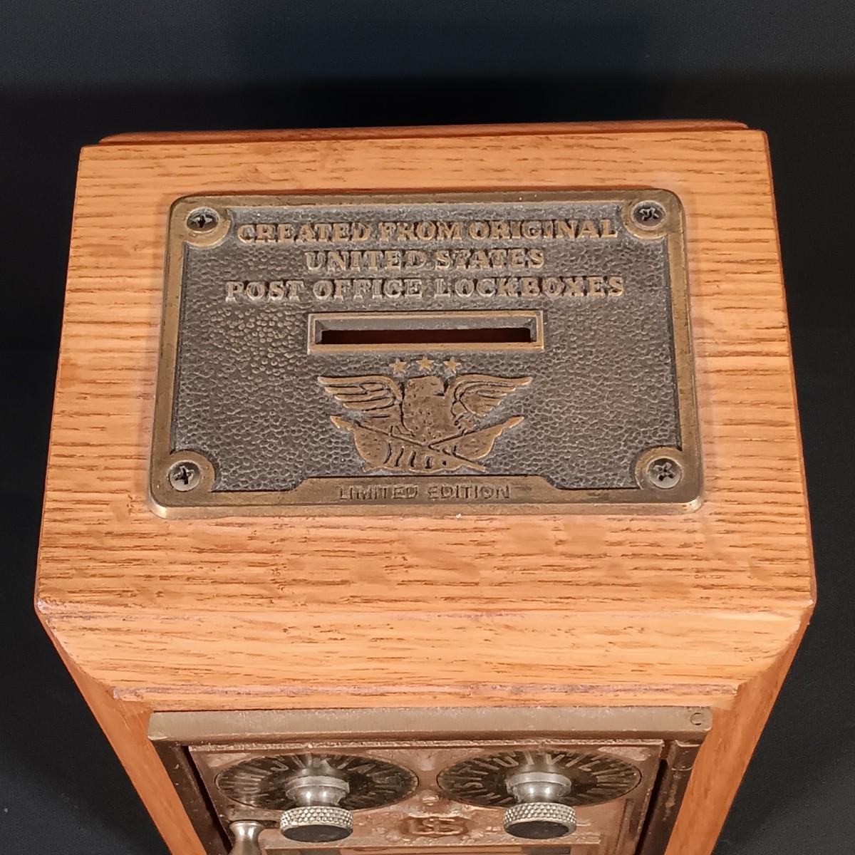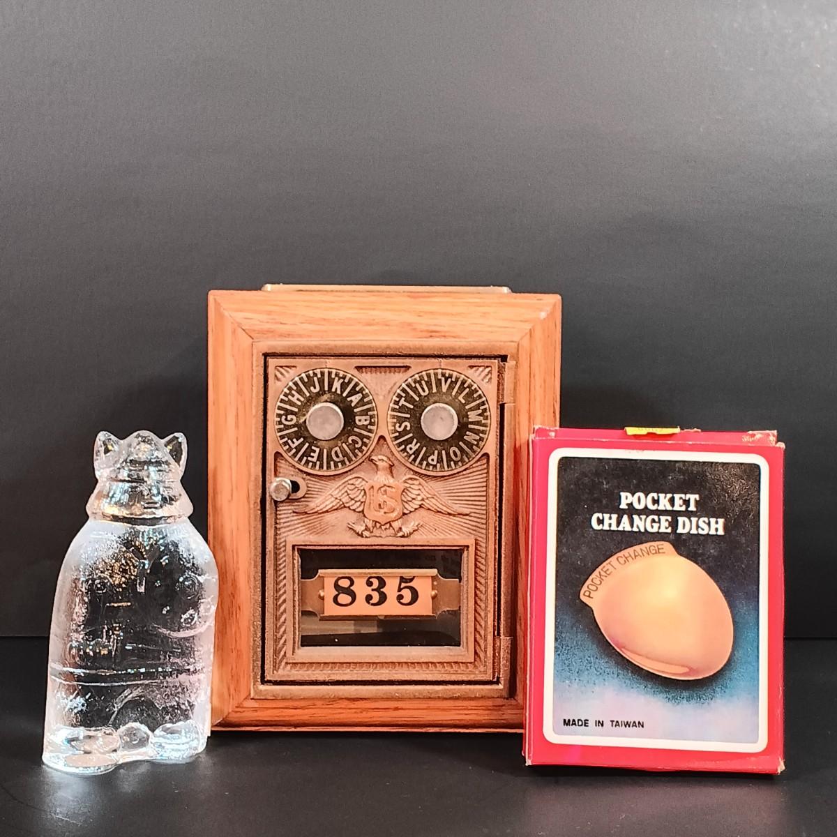 LOT 24: Antique US Post Office Lockbox Coin Bank, Vintage Lindshammar Glass Viking & Pocket Change Dish