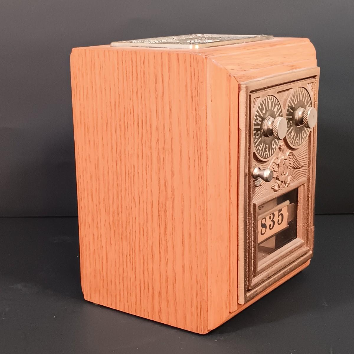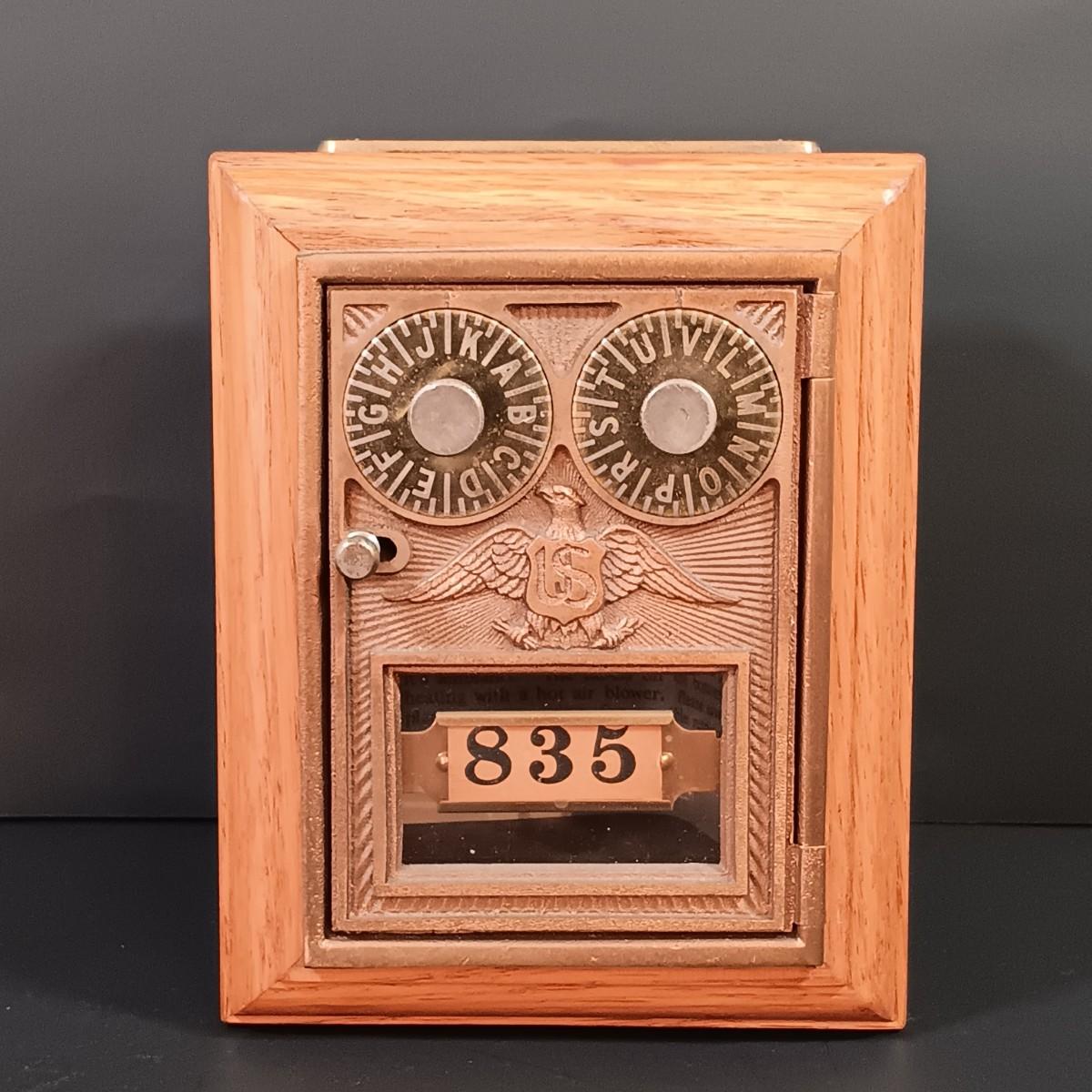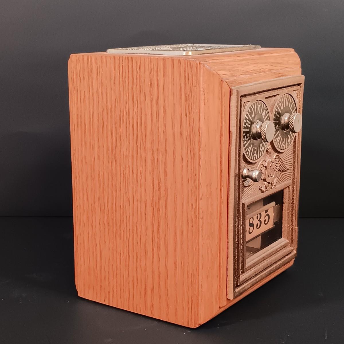 LOT 24: Antique US Post Office Lockbox Coin Bank, Vintage Lindshammar Glass Viking & Pocket Change Dish