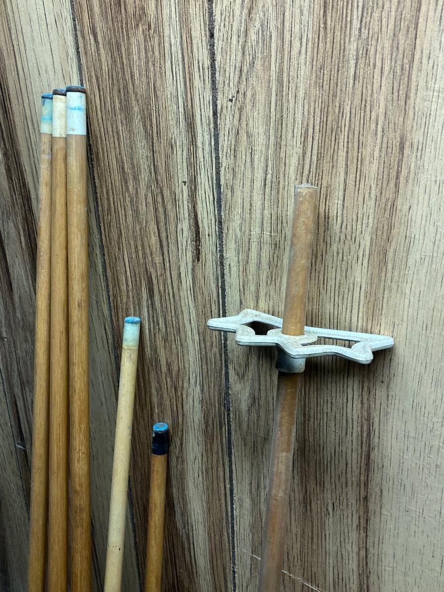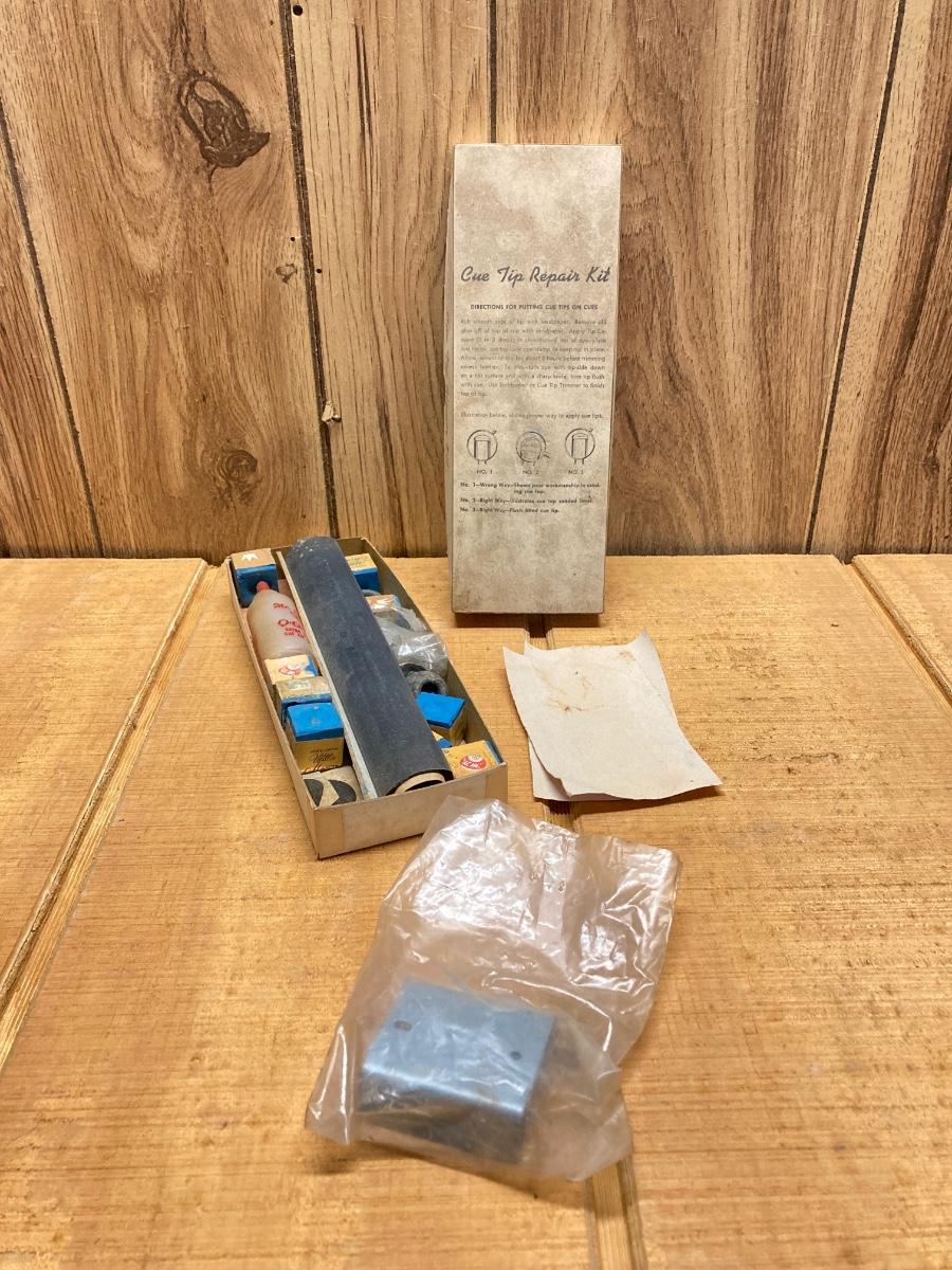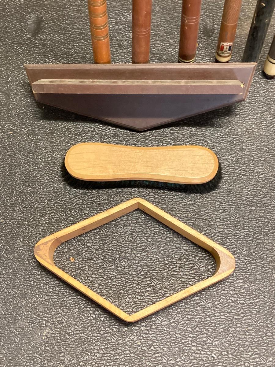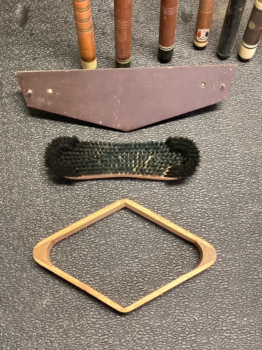 LOT 42: Vintage Billiards Collection - Pool Sticks, Ball Rack, Repair Kit and More