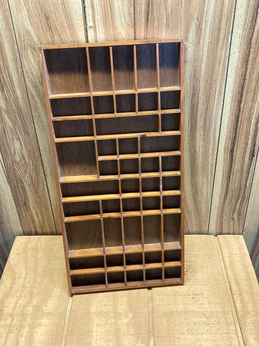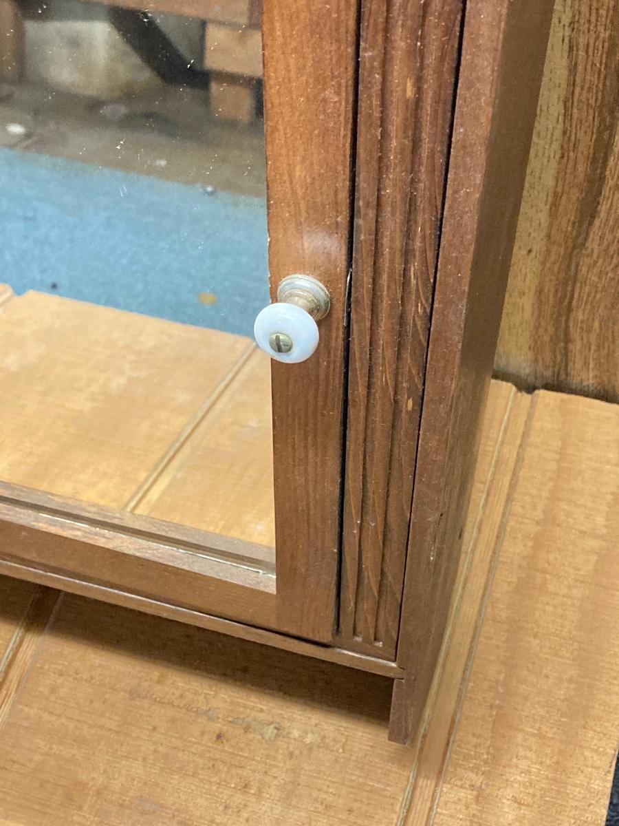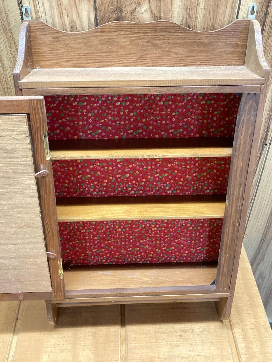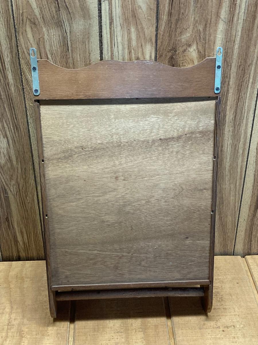 LOT 45: Vintage Wood Wall Mount Mirrored Cabinet and Wood Trinket Display Shelf